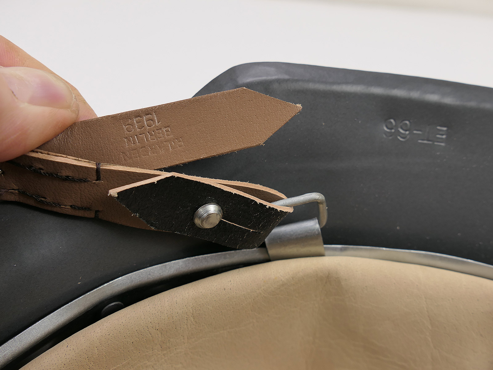 Material: Stahl, Innenfutter und Kinnriemen aus 100% Ziegenleder