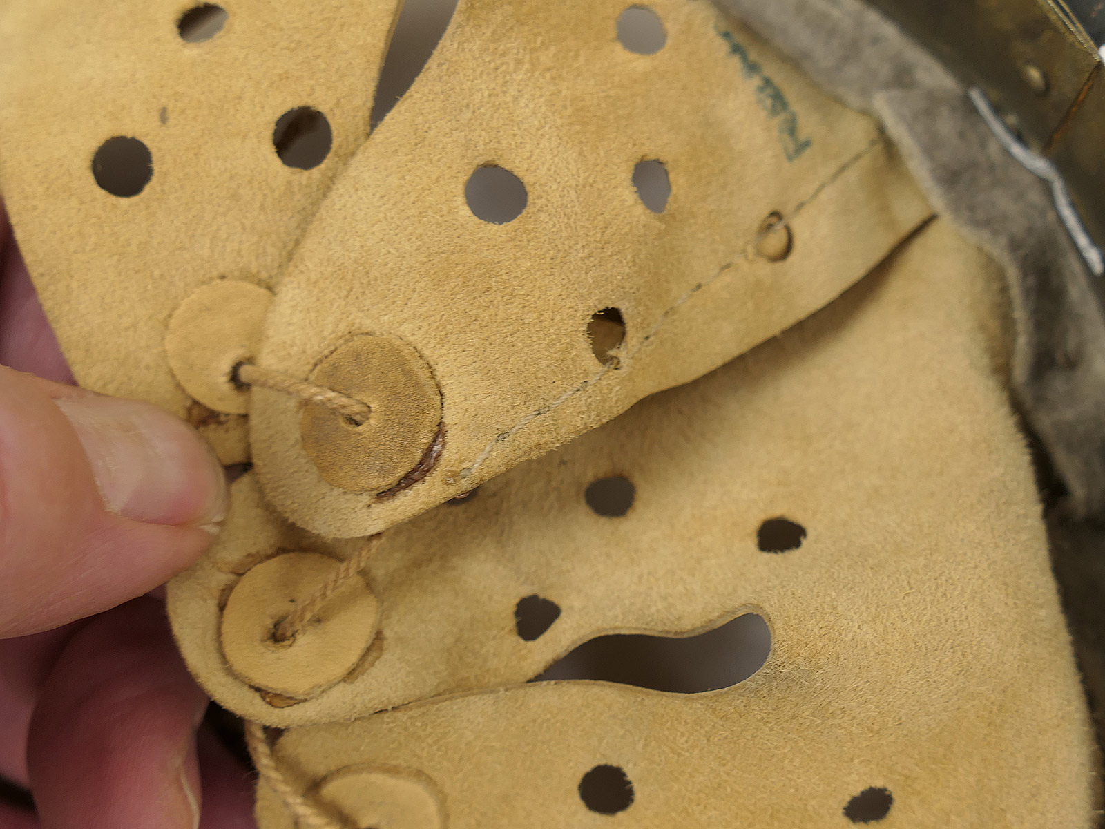 Aus Museumsauflösung - Antikes Helminnenfutter - alte Sammleranfertigung aus z.T. alten, original Materialien.