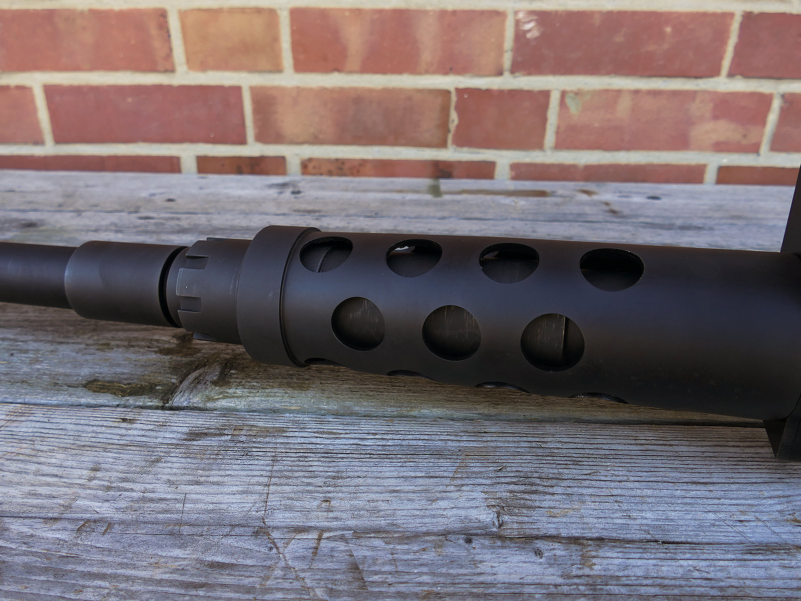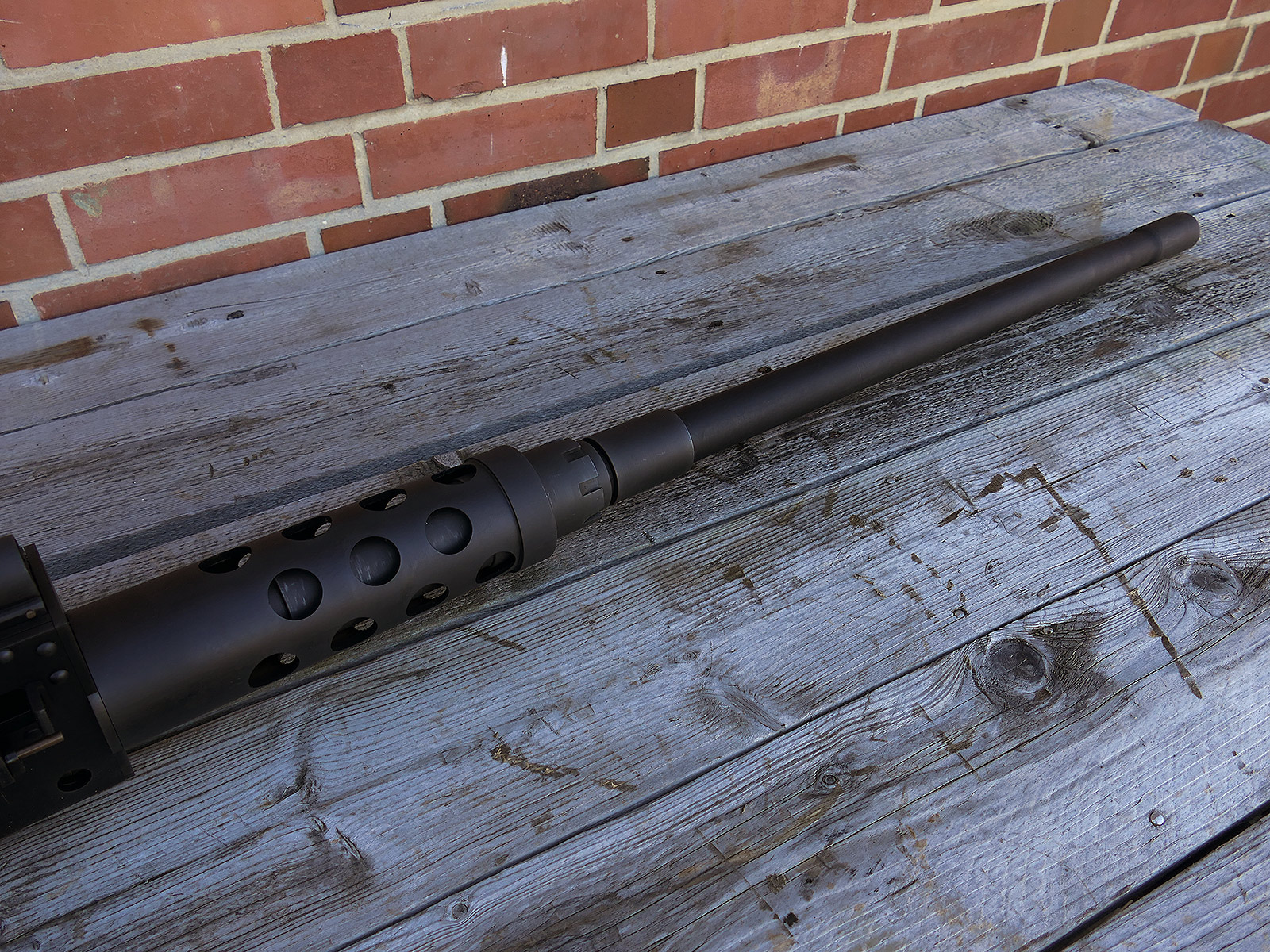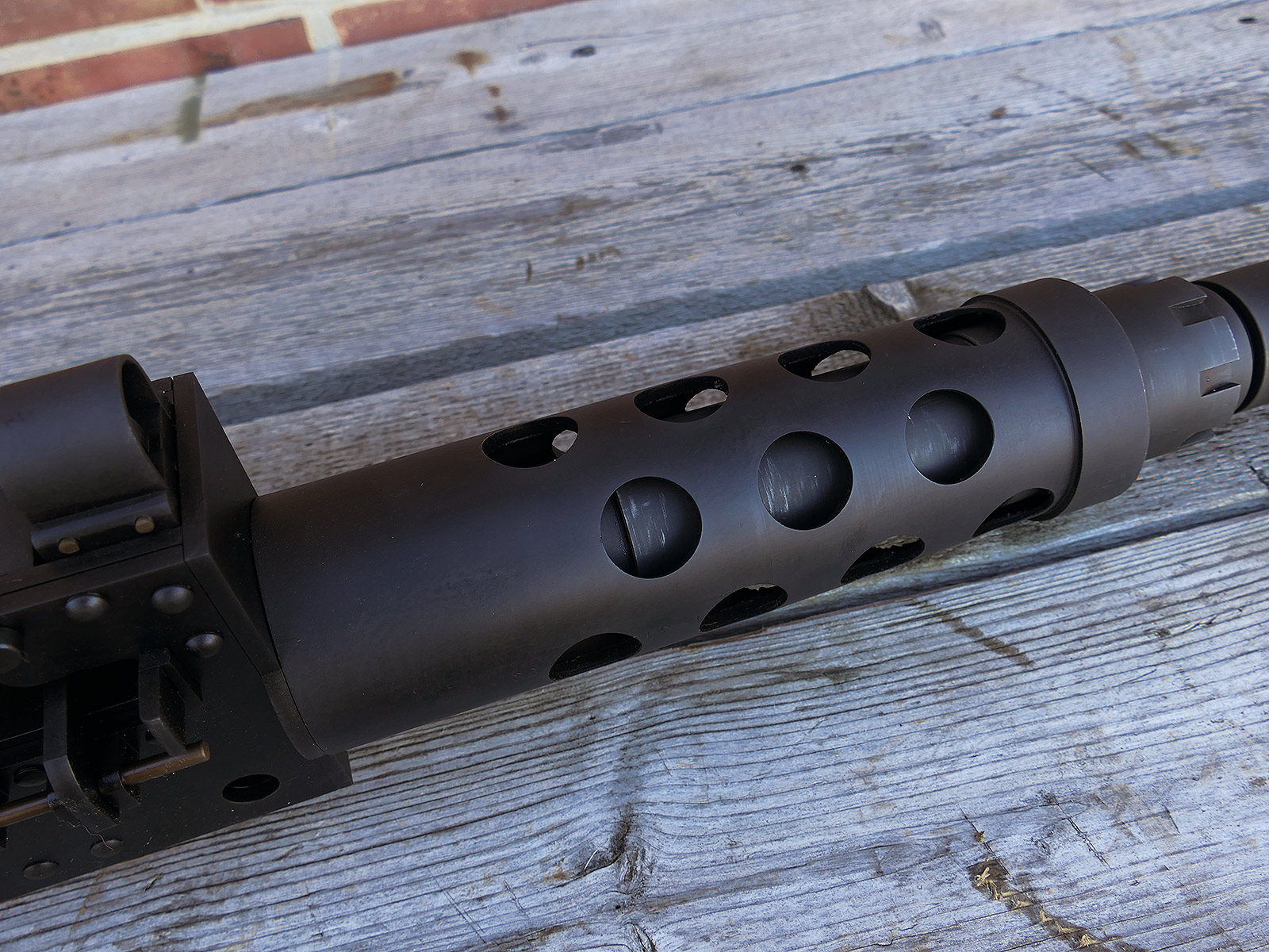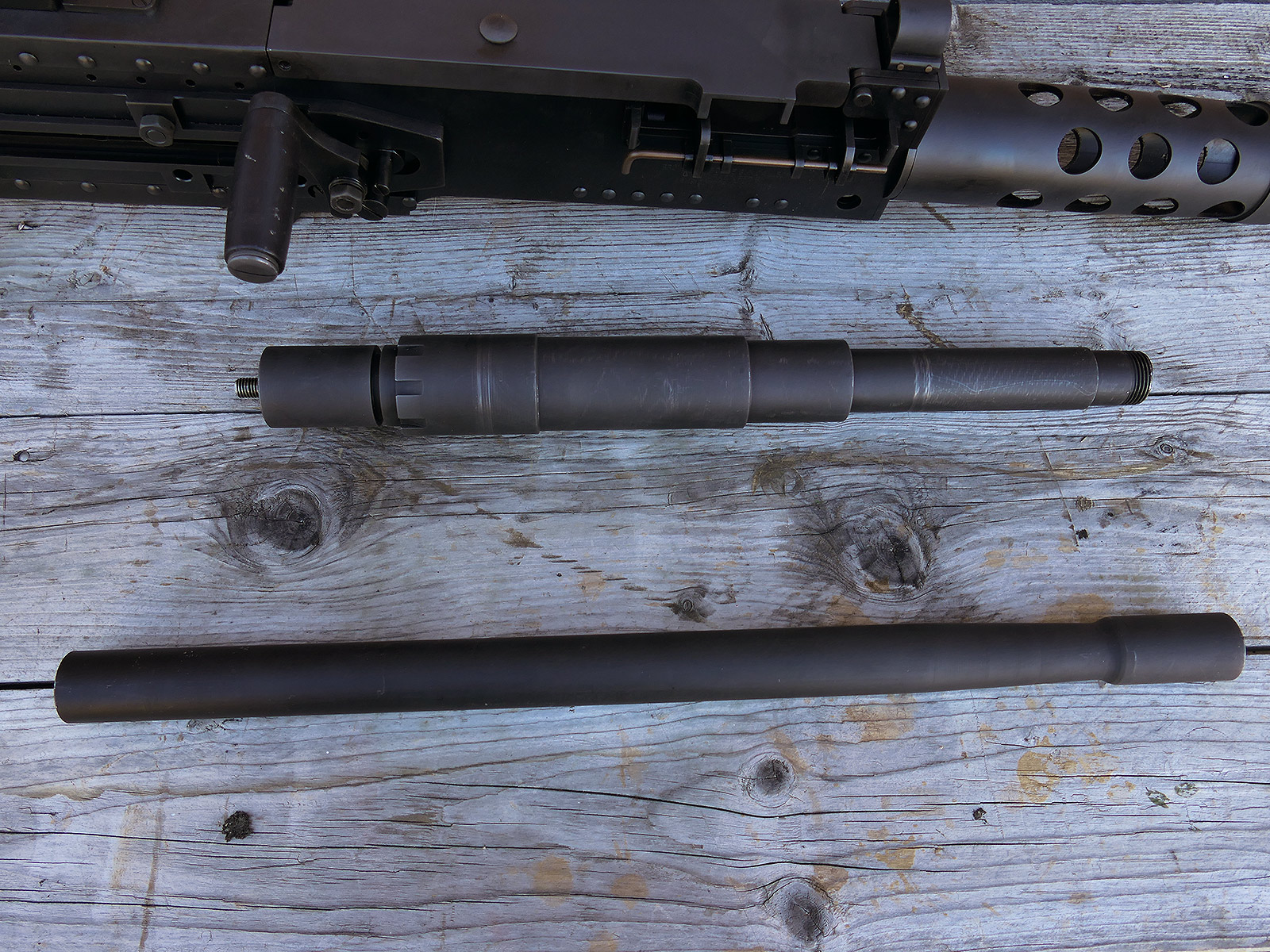 Der Spannhebel ist beweglich und zieht den angedeuteten "Verschluss" zurück. Der Verschluss rastet aber nicht ein in der hinteren Position. Der Handgriff zum Spannen ist für den Transport abschraubbar. Das Modell wiegt mit dem Lauf ca. 31 KG. Der Einzelfeuer und Dauerfeuerabzug ist beweglich . Der Lauf ist massiv und die Mündungsöffnung mit einer Bohrung angedeutet, der Lauf lässt sich wie beim Original entnehmen und ist zerlegbar, somit teilbar für den Transport. Der Lauf wurde von einer Werkzeugfirma hergestellt. Die MG's waren für ein Museum für US Army M113 Panzer bestimmt.