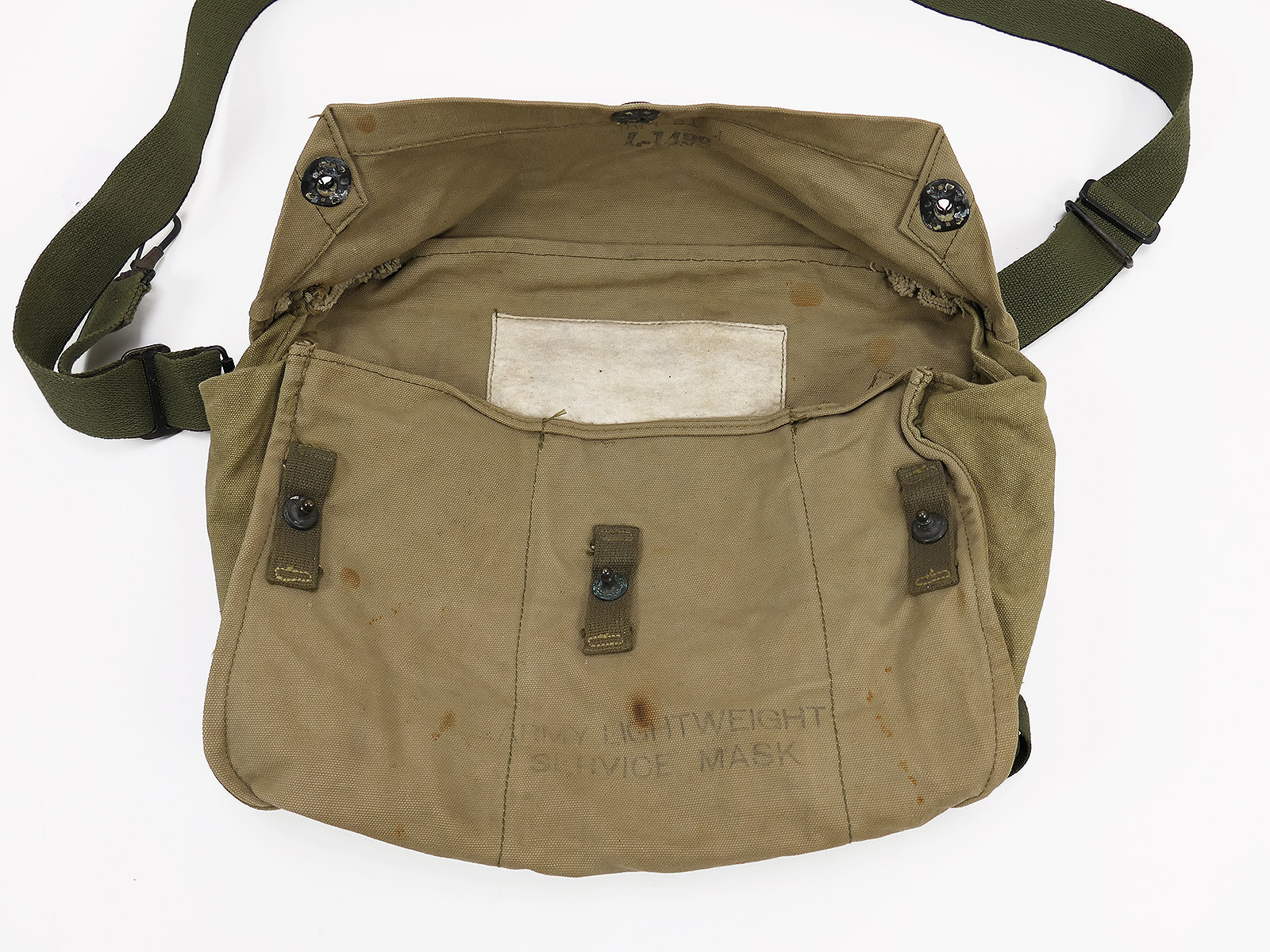#2 Original US Army WW2 Lightweight Gas Mask Bag khaki Gasmaskentasche / Collection BATTLE WORN