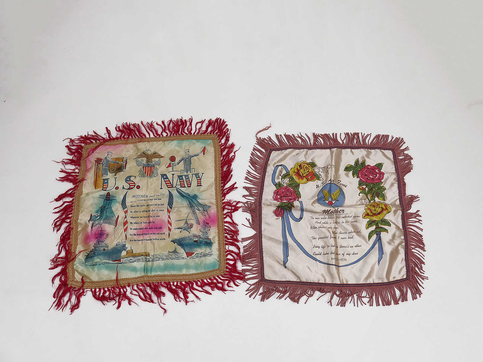 2 Stück Vintage US Air Force / Navy "Satin" Kissenbezug Andenken aus dem Zweiten Weltkrieg WW2