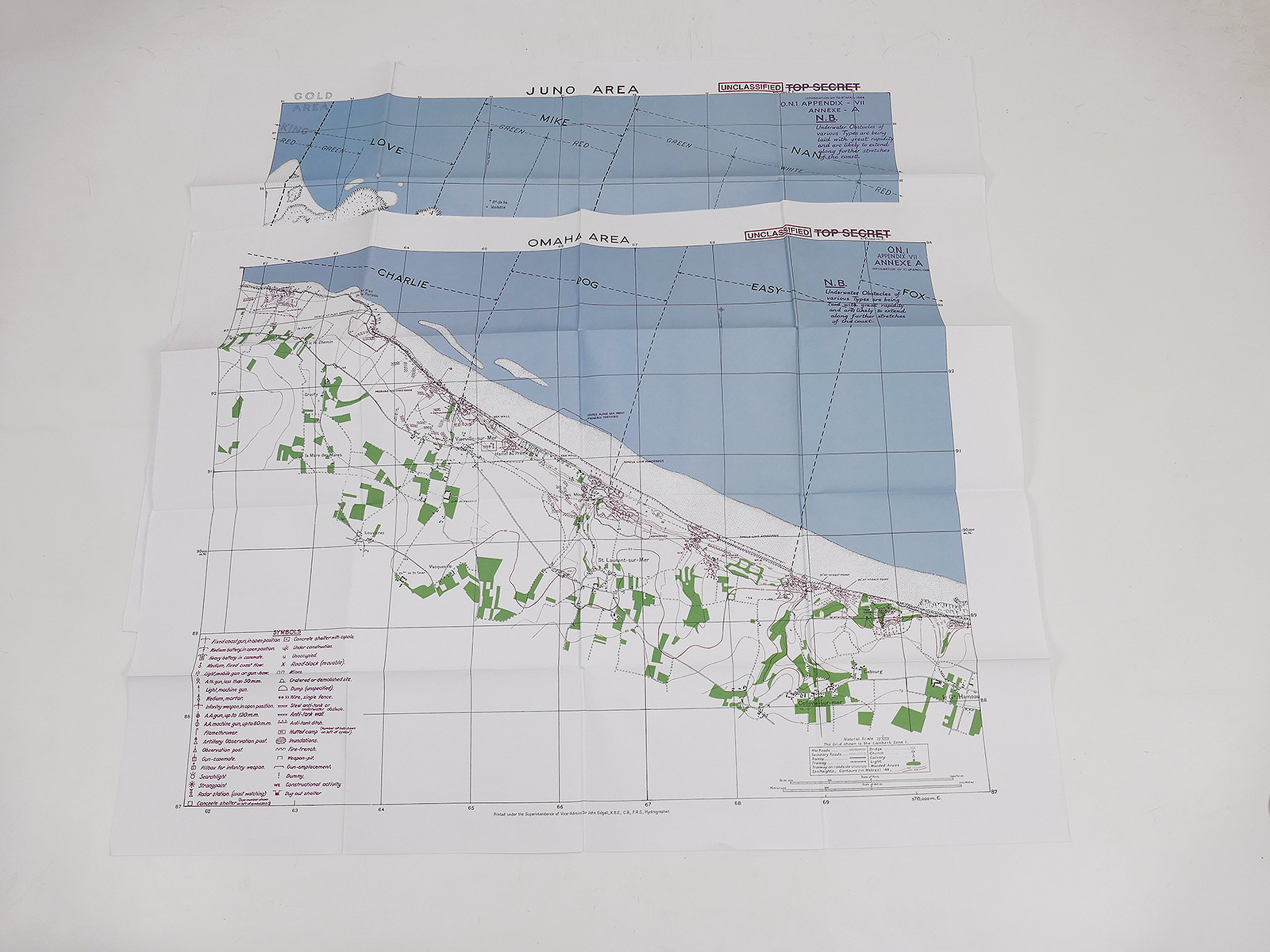 2x US ARMY WW2 Landungskarte OMAHA BEACH + JUNO Karte Landkarte Landung Normandie D-Day