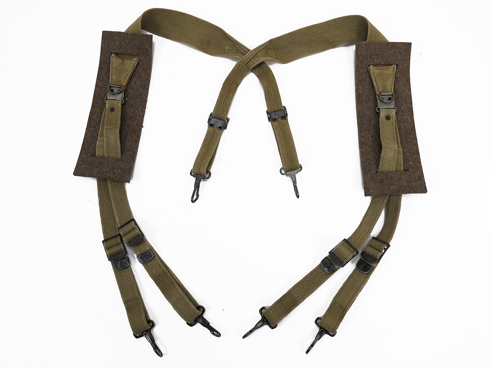 #3/ Original US Army WW2 M1936 Suspenders mit Schulterpolstern Collection BATTLE WORN