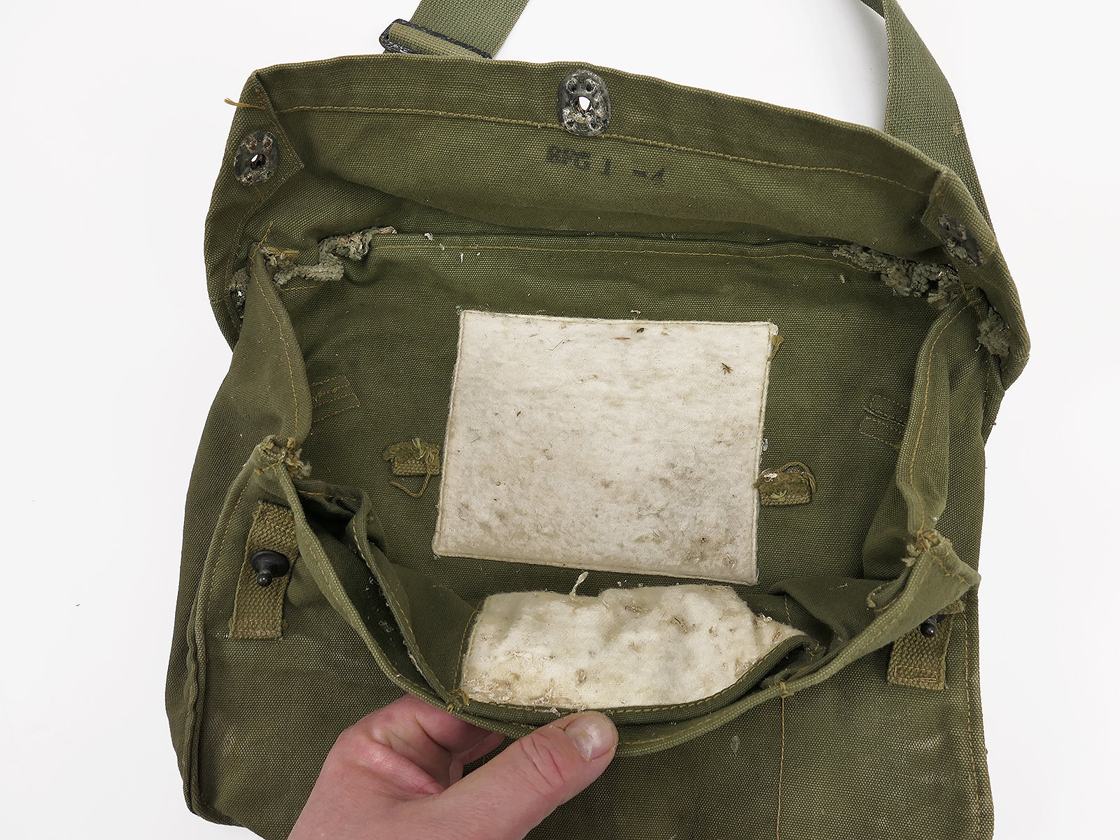 #4 Original US Army WW2 Lightweight Gas Mask Bag Gasmaskentasche / Collection BATTLE WORN