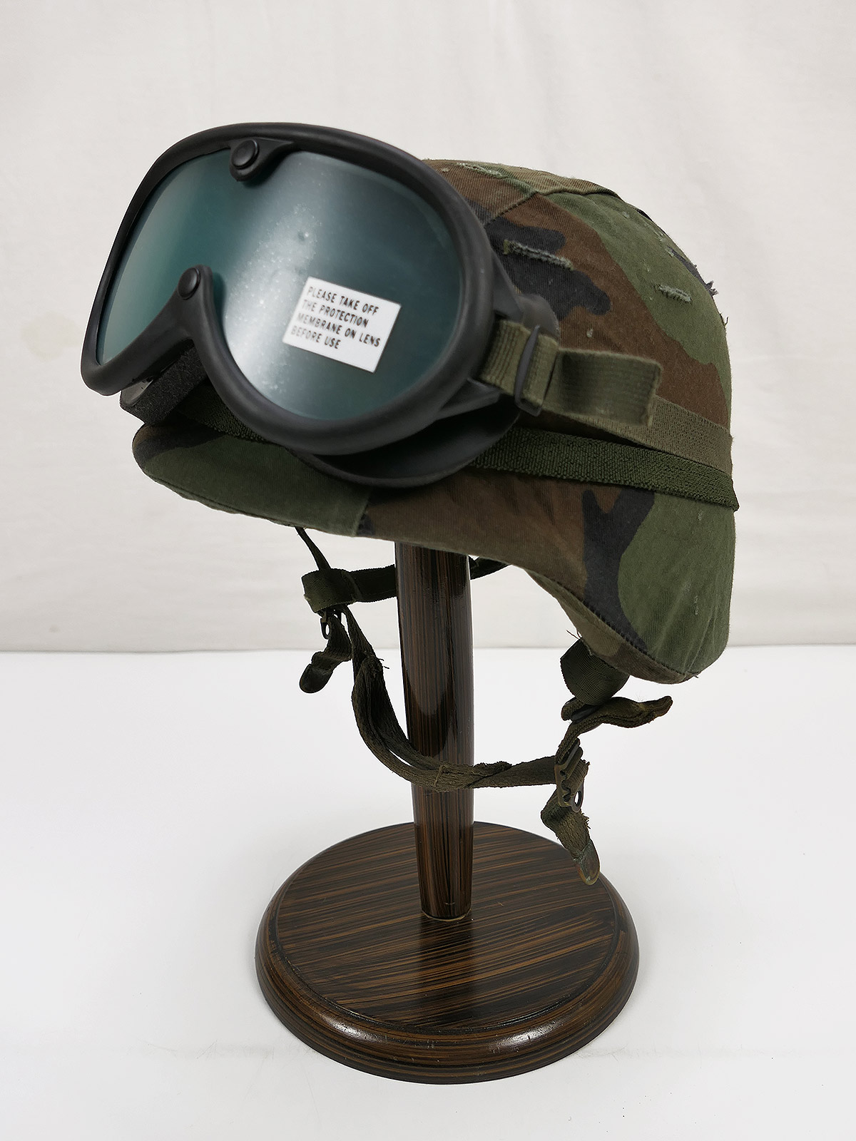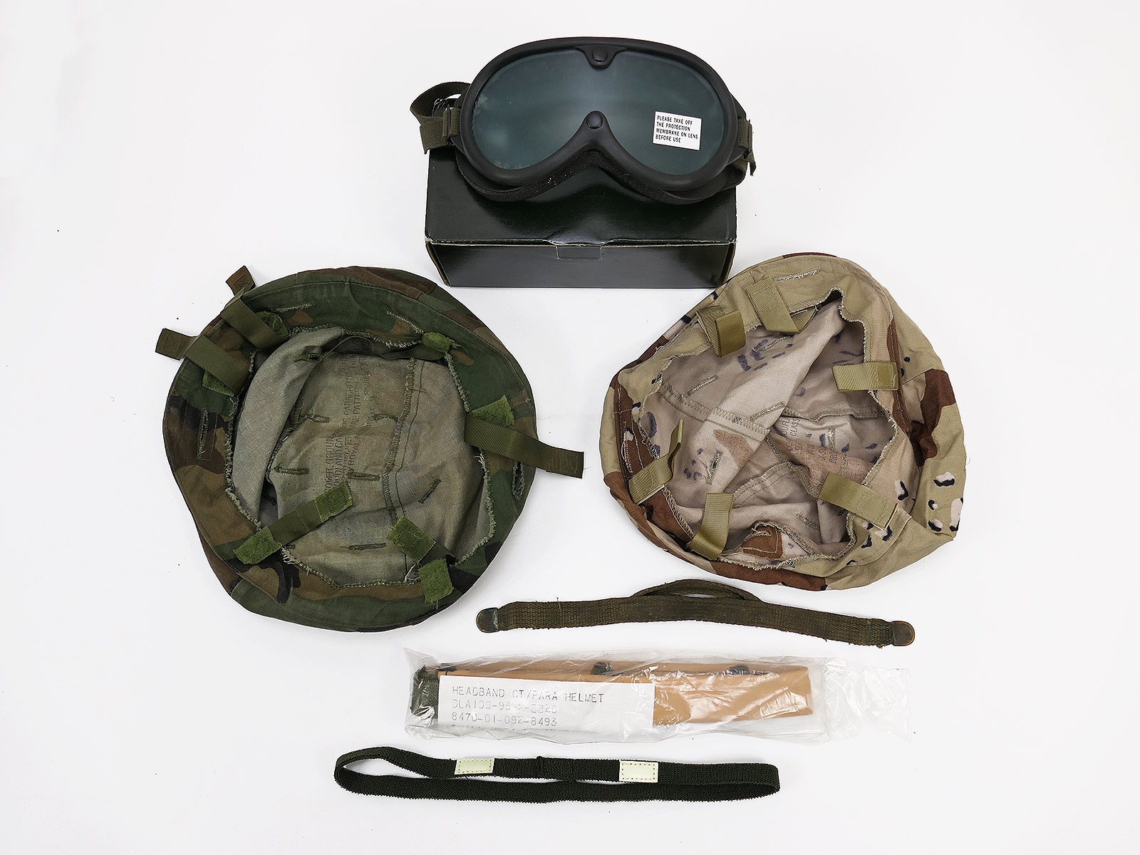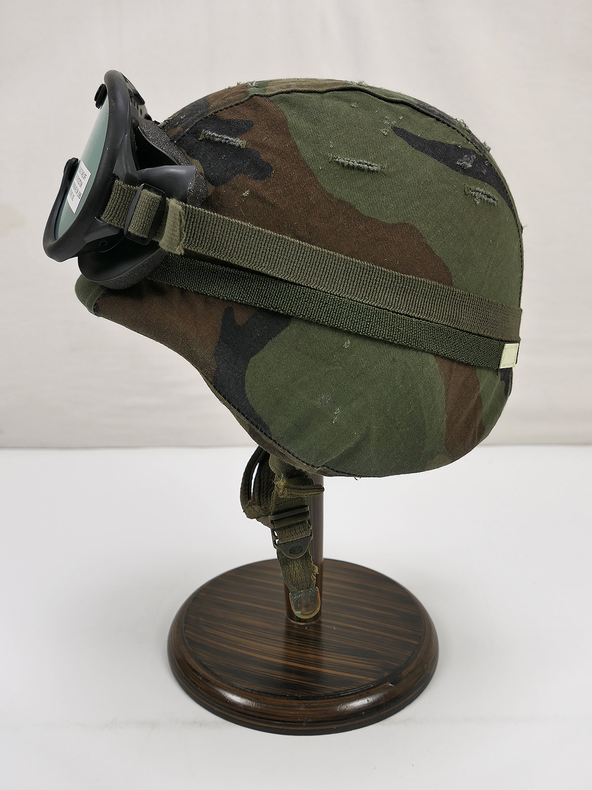 #67 US PASGT Gefechtshelm Combat Helmet SMALL + Desert + Woodland Helmbezug + Goggles
