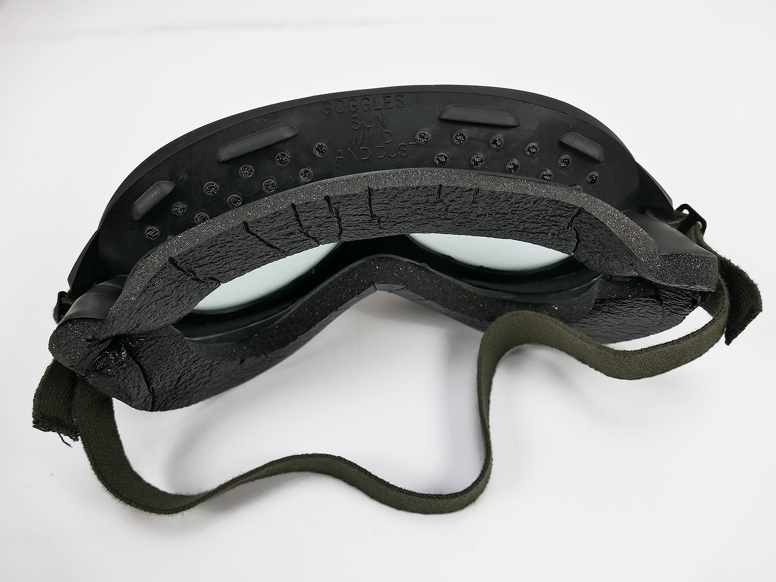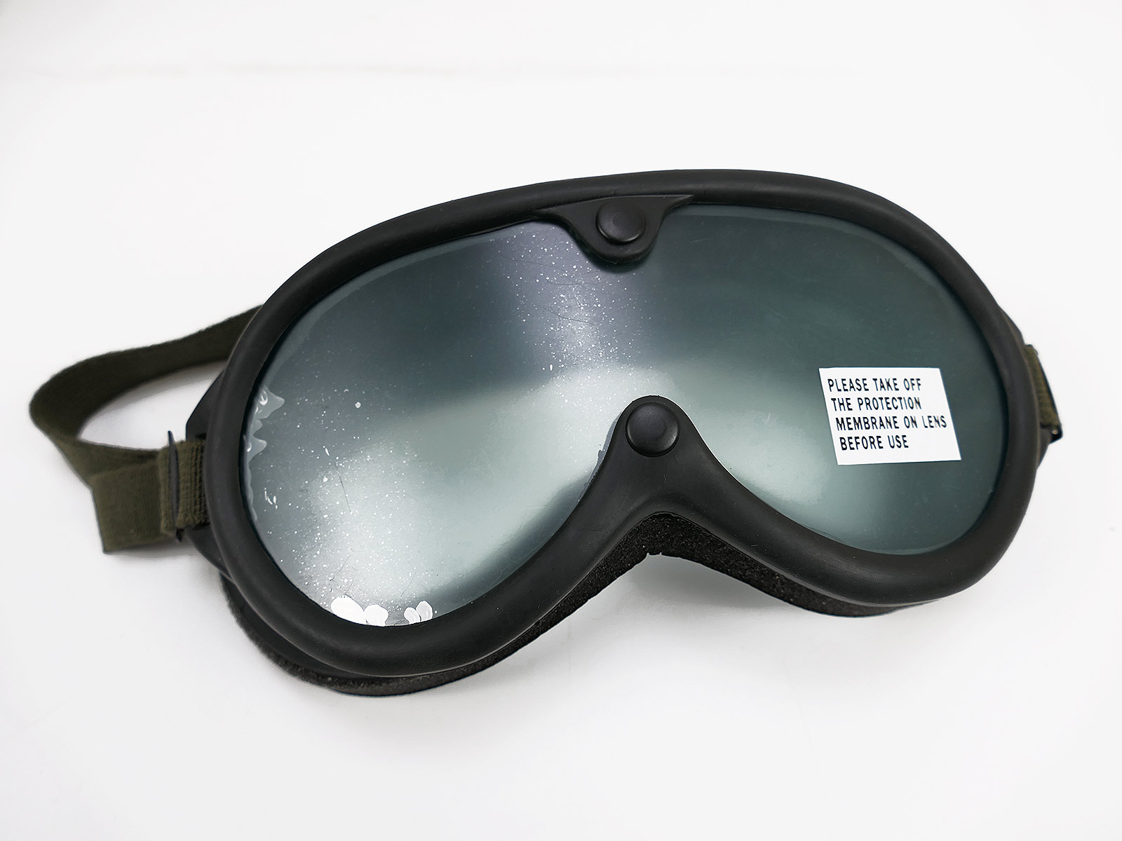 Wie abgebildet, mit Kinnriemen, Cateye Band, Desert & Woodland Tarnbezug, sowie neuwertiger Repro Goggles