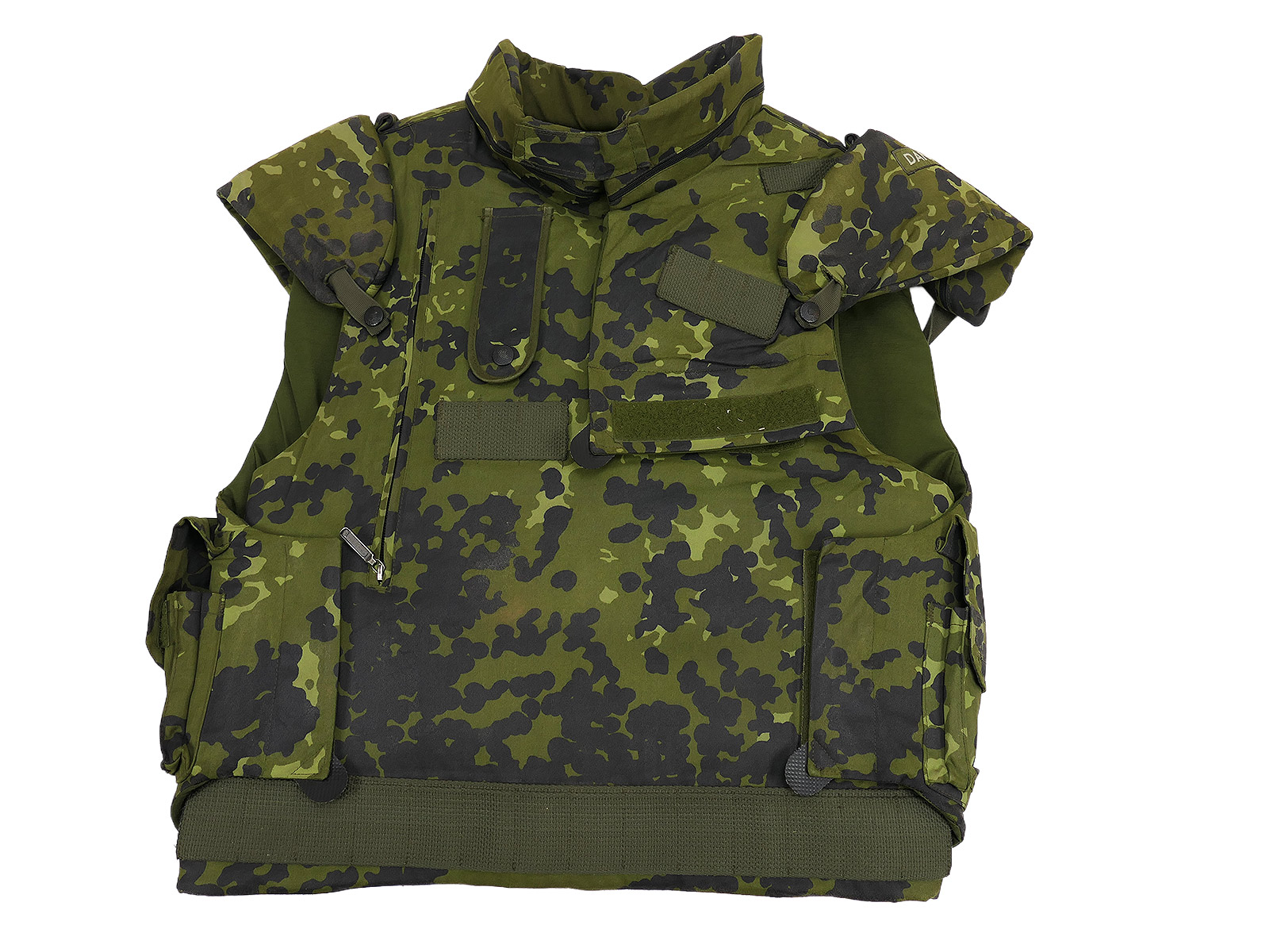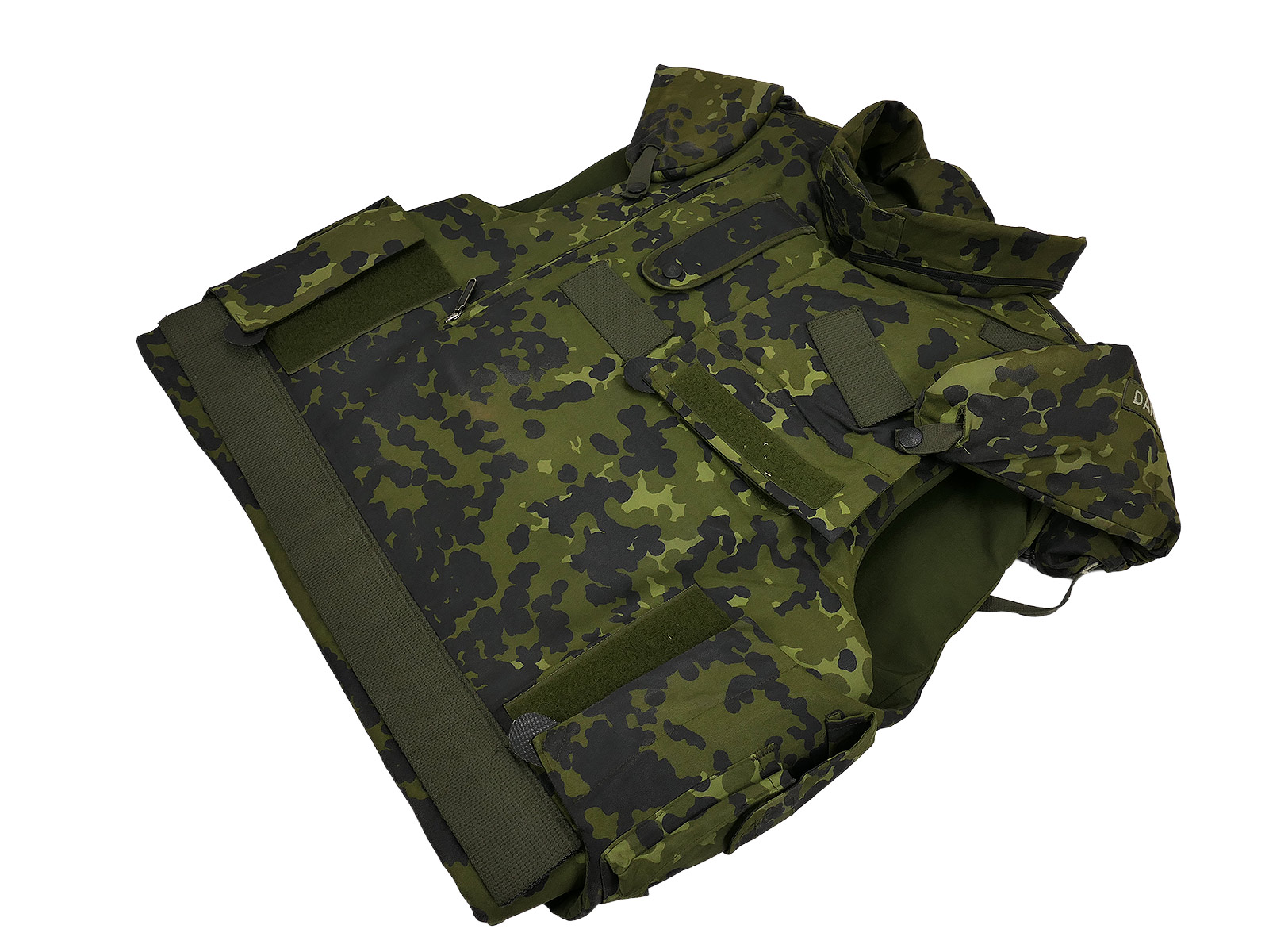 Flecktarn Splitterschutzweste der dänischen Streitkräfte. Inklusive aller Softshell Einlagen.