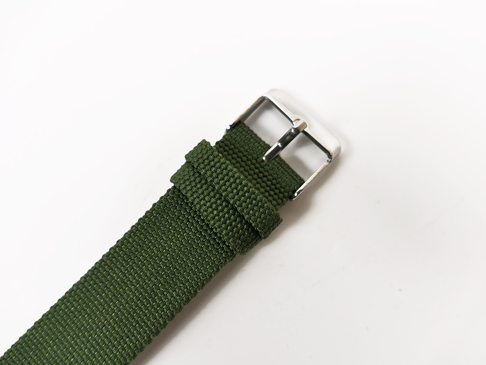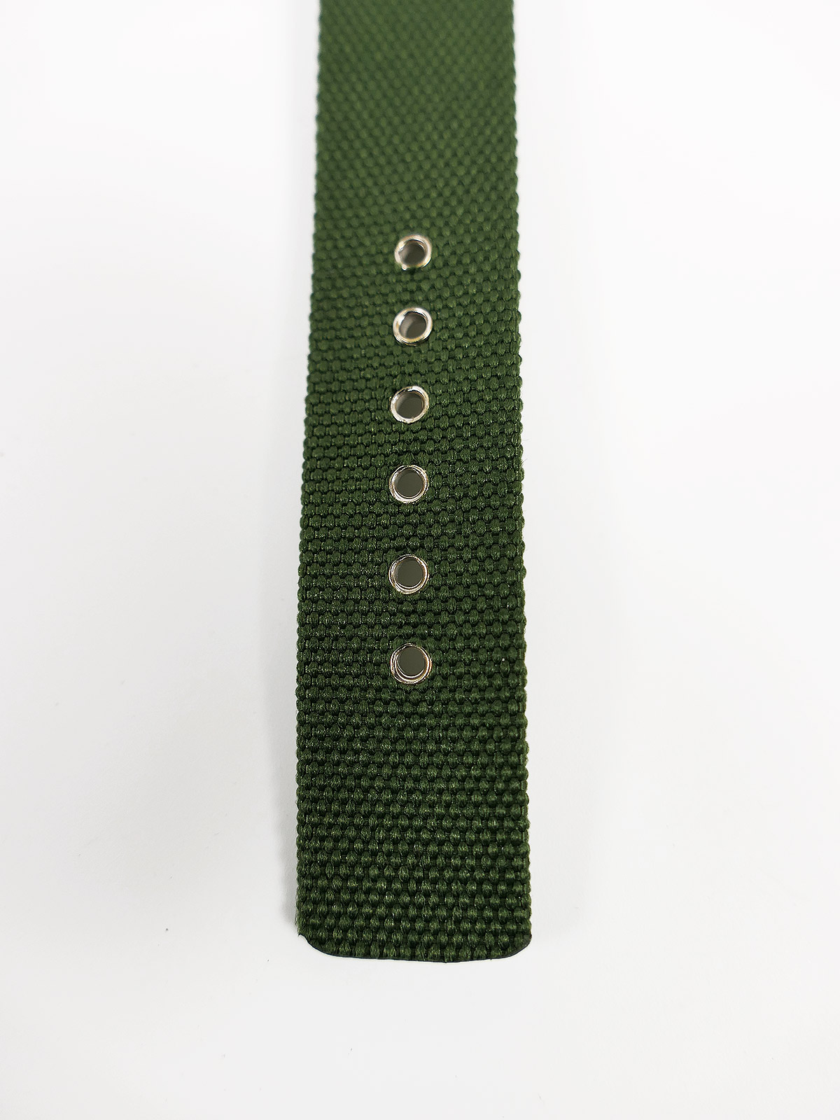 * Ein 23cm olivgrünes Canvas-Armband, das von Federstäben gehalten wird.