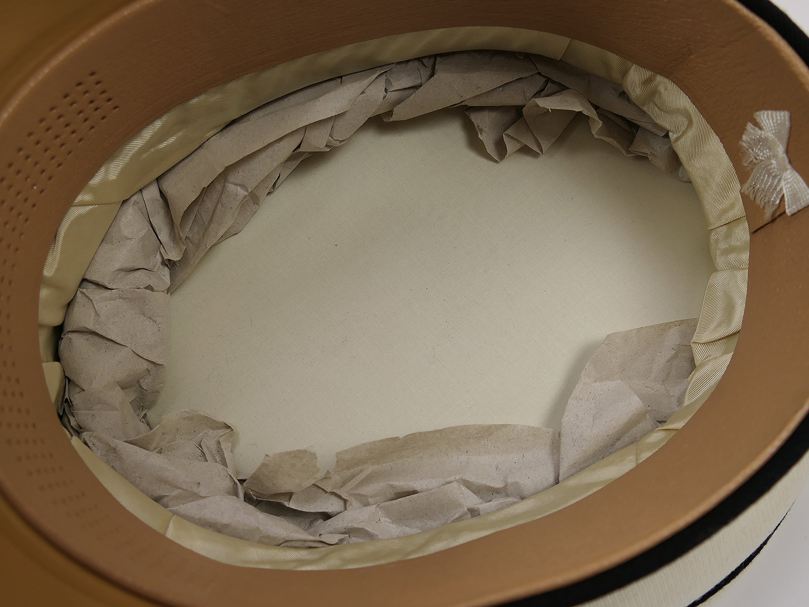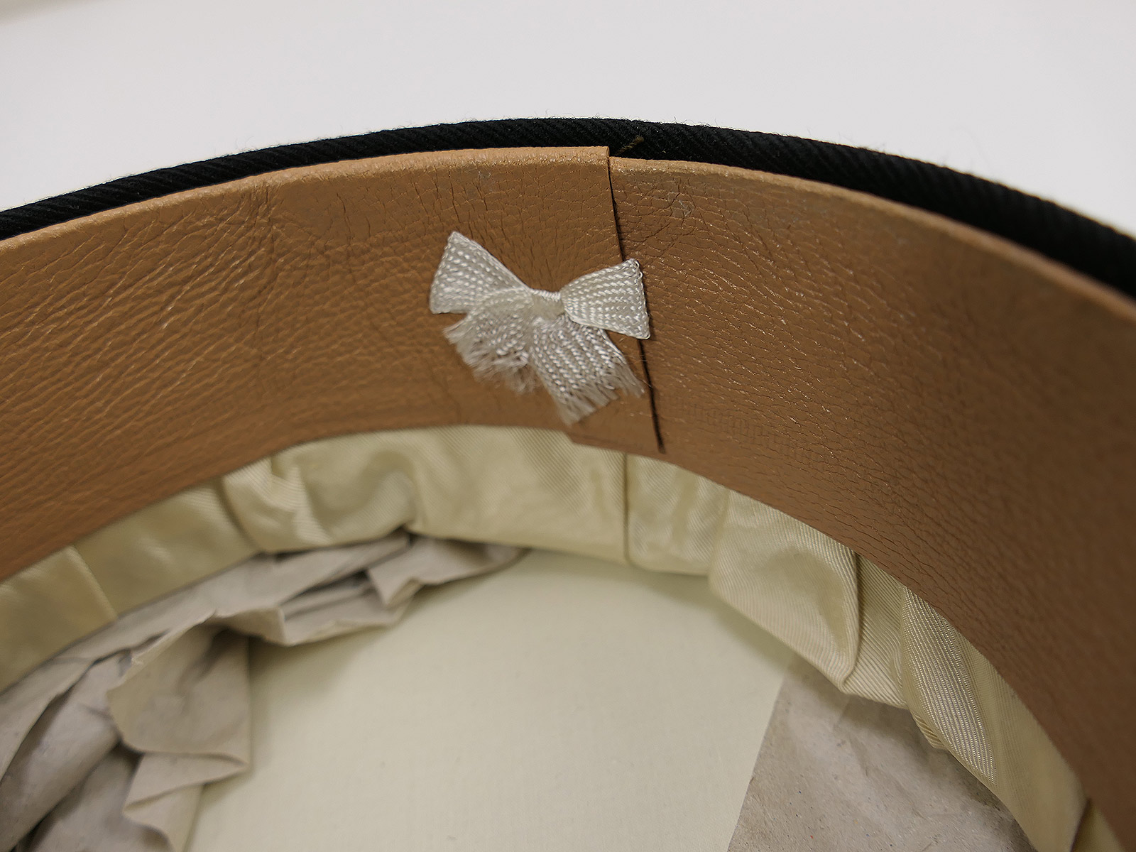 Desweiteren wurde ein originaler, zeitgenössischer ECHTER VULKANFIBER MÜTZENSCHIRM mit Riffelrückseite aus der Zeit verwendet.