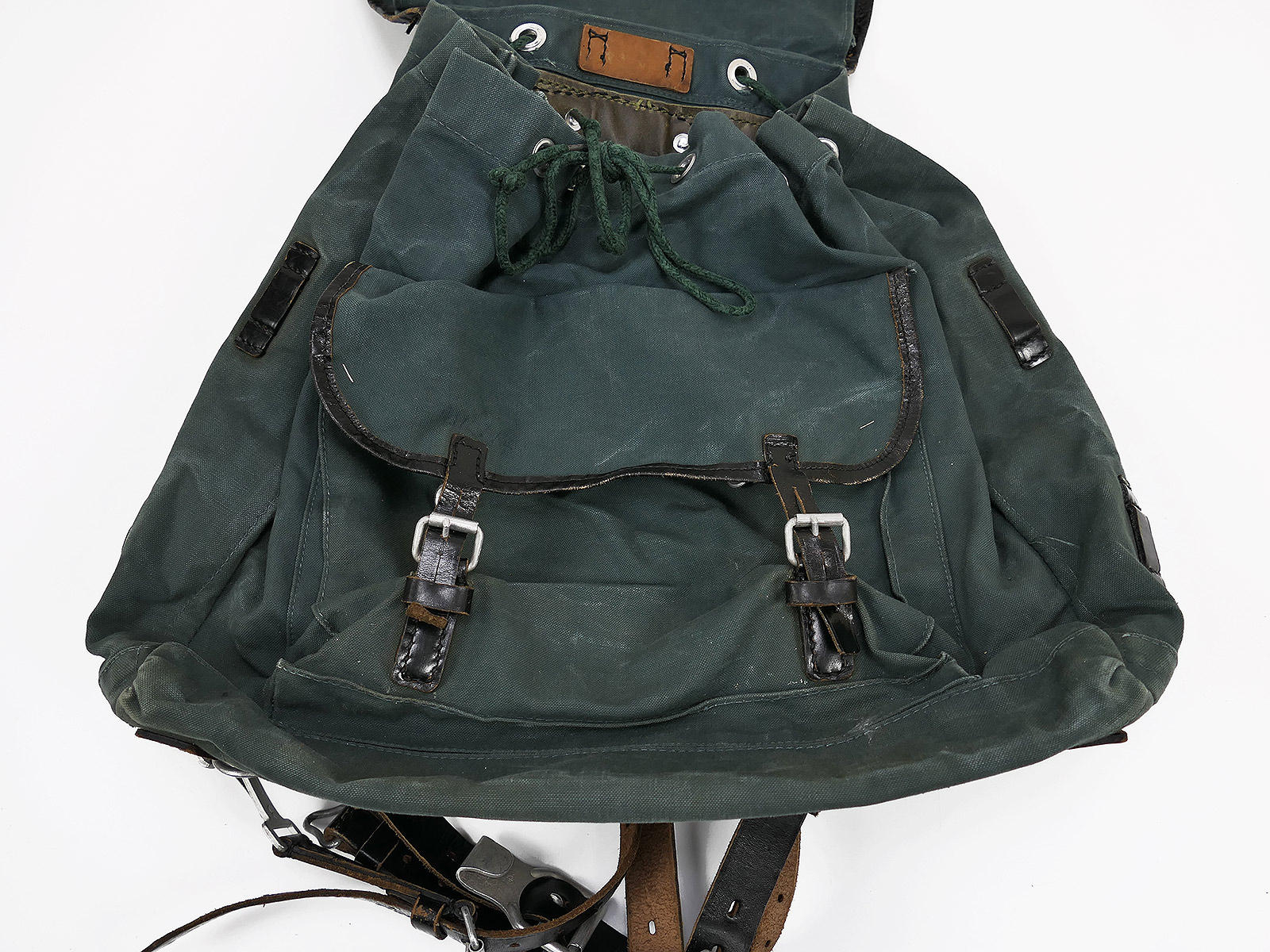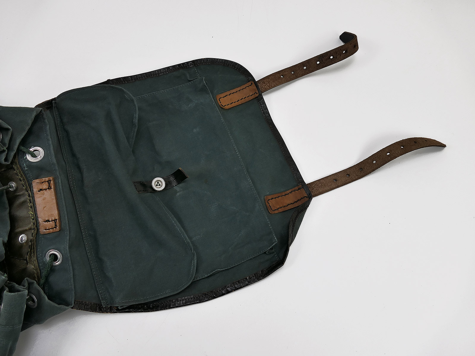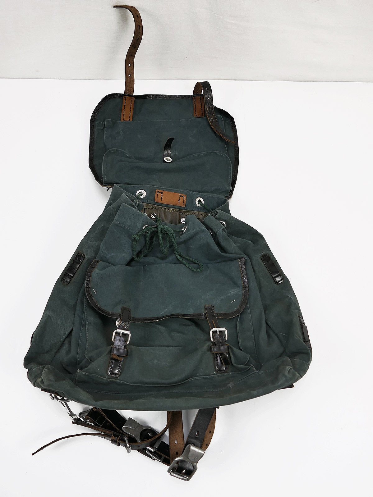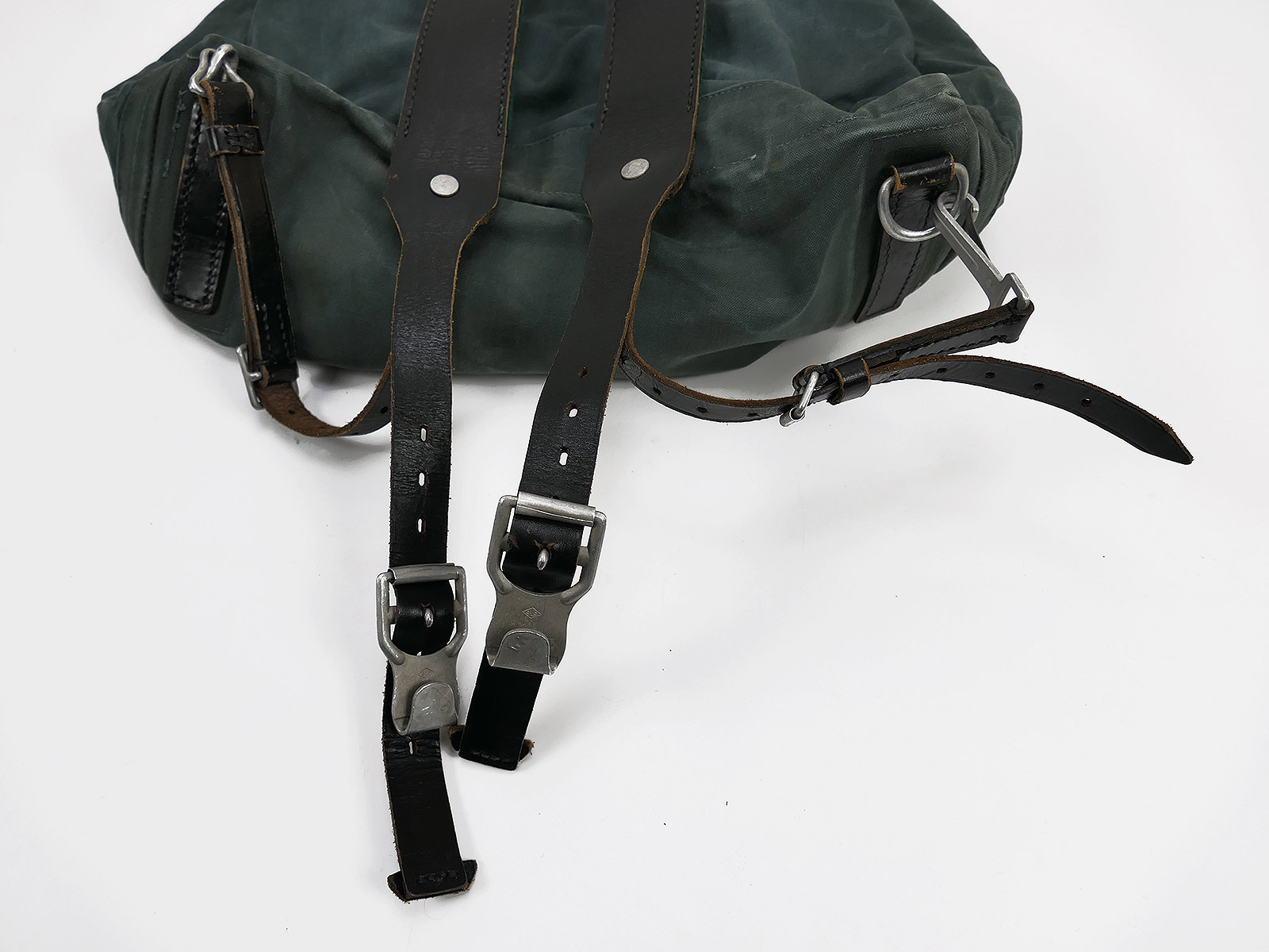 Vintage Militärrucksack grünlich, aus robustem Material, Top Verarbeitung.