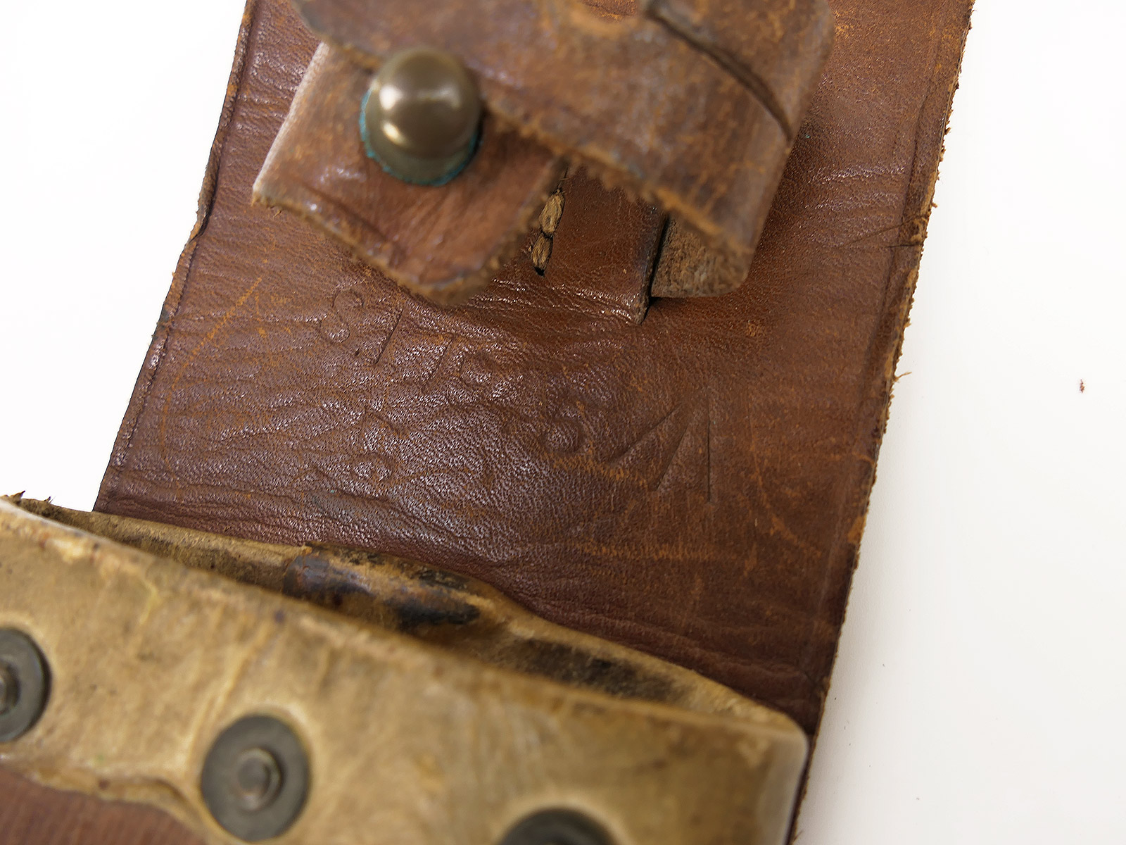 Scheide in gutem Zustand, Leder weich, die Klinge kann sicher noch verbessert werden,