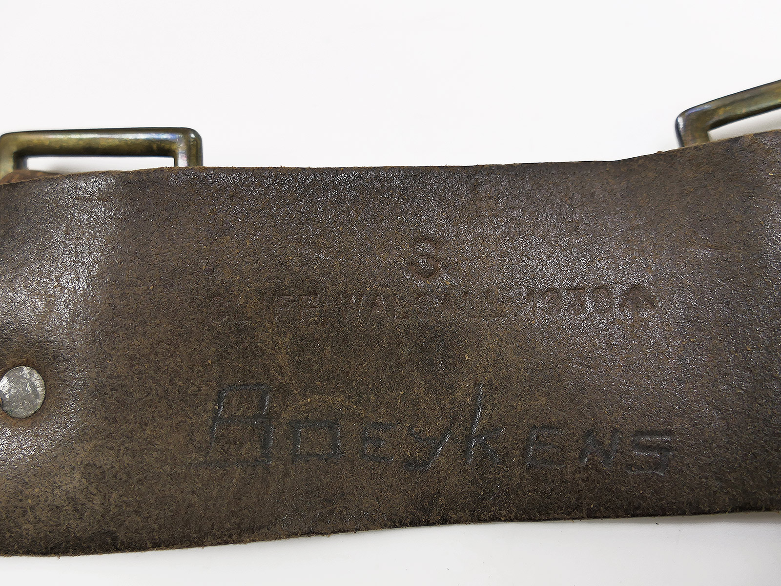 British Army WW2 Original 1939 Pattern Leather Belt Leder Koppel Gr. S mit Trägernamen