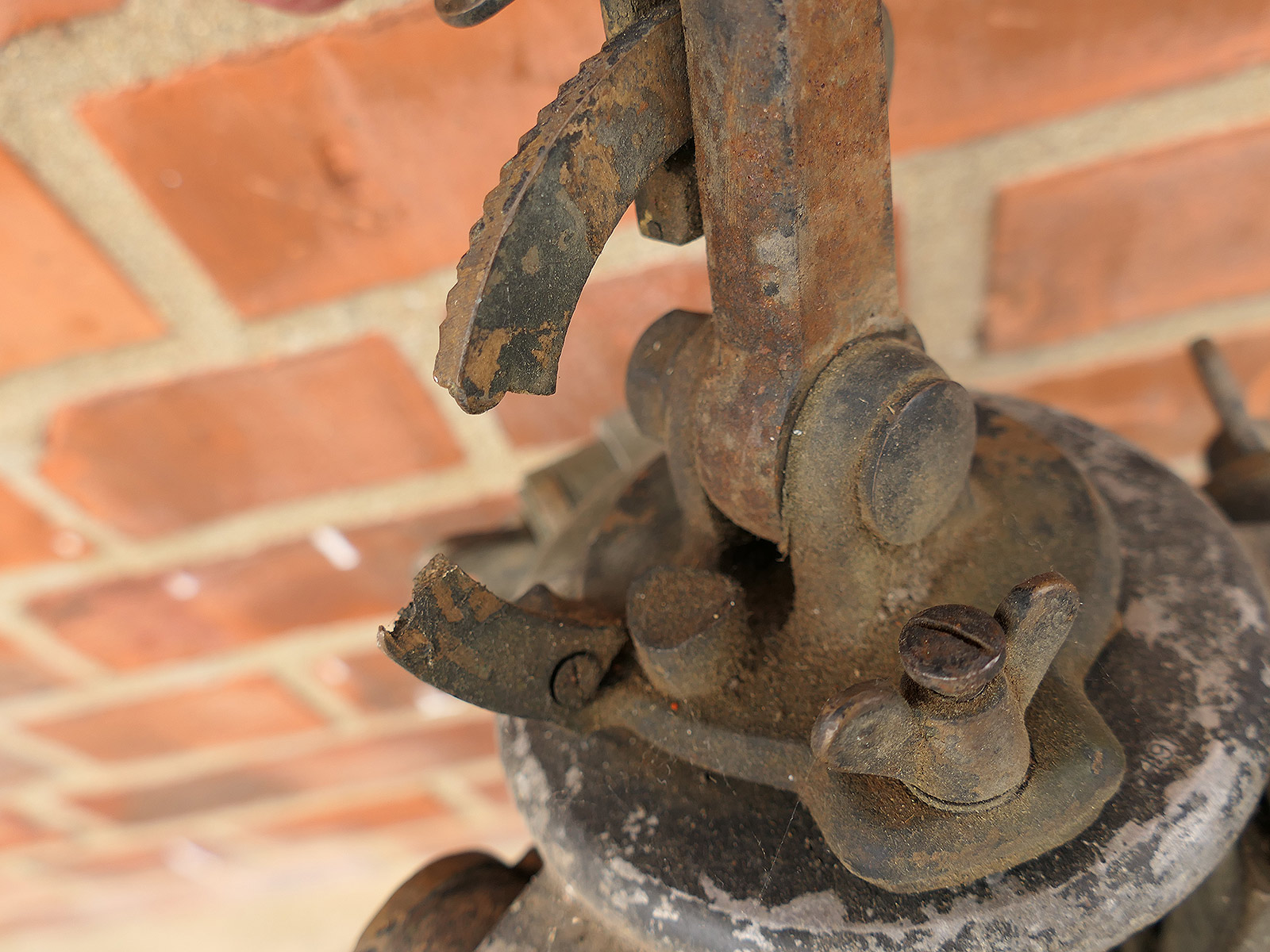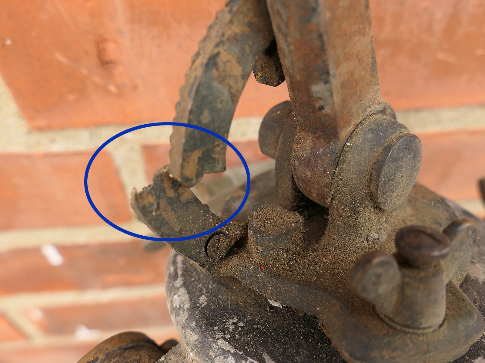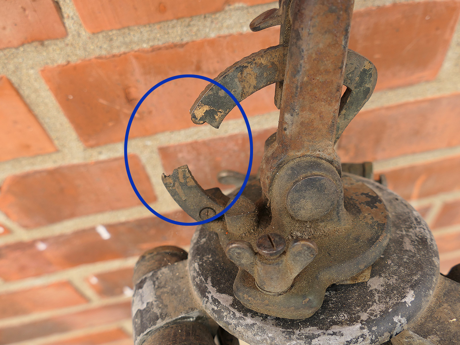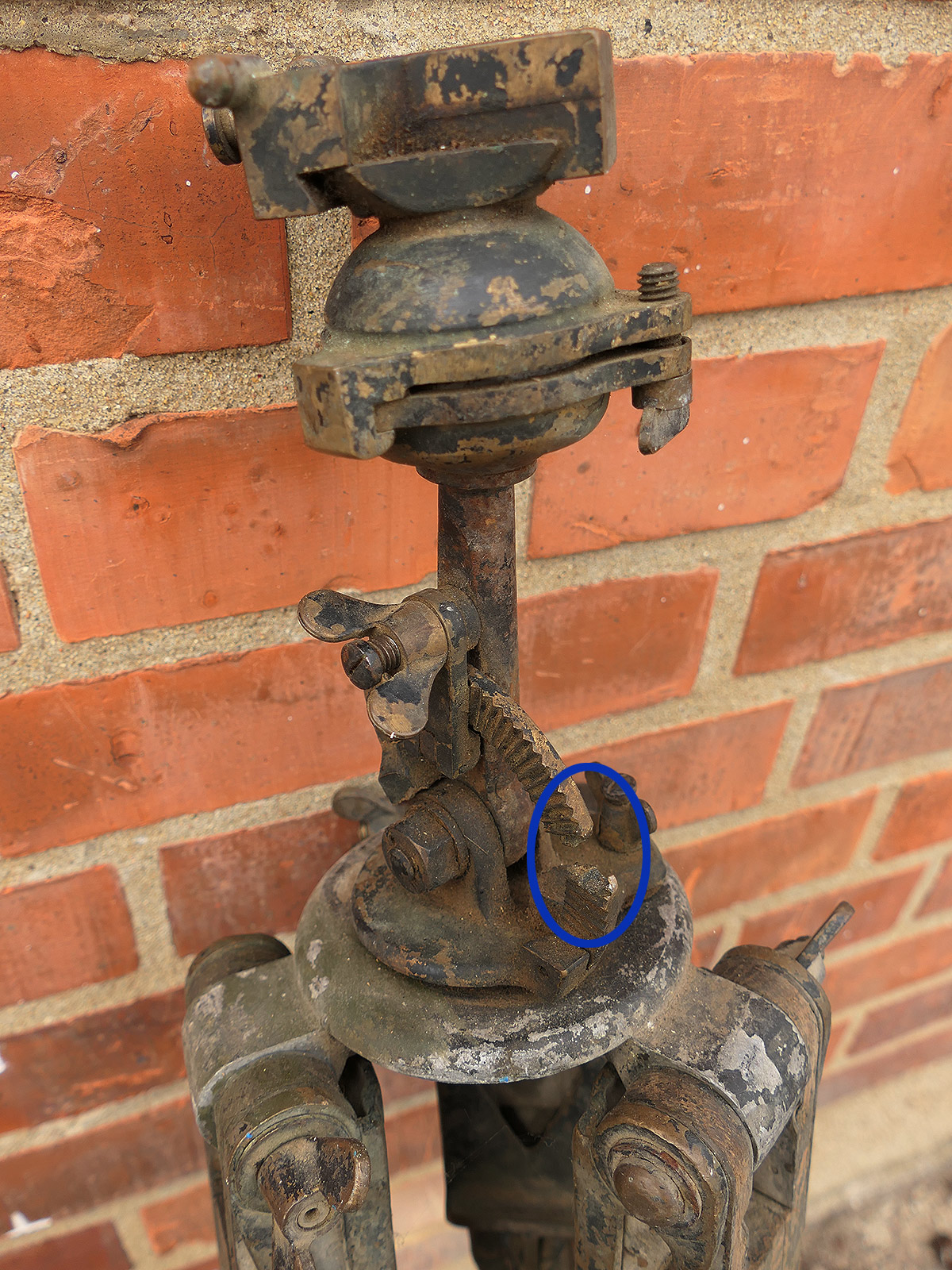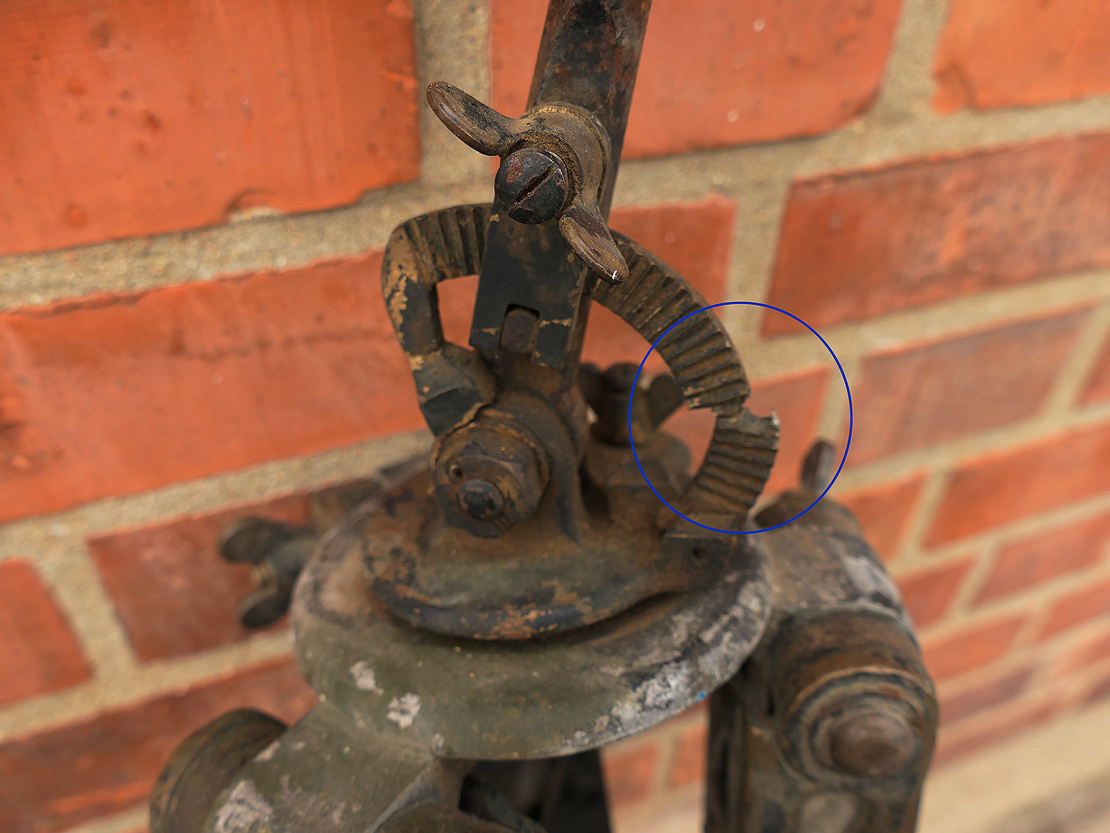 Beim Stativ ist ein Zahnrad zum Verstellen durchgebrochen, müsste ggf. geschweißt werden (siehe Bilder).