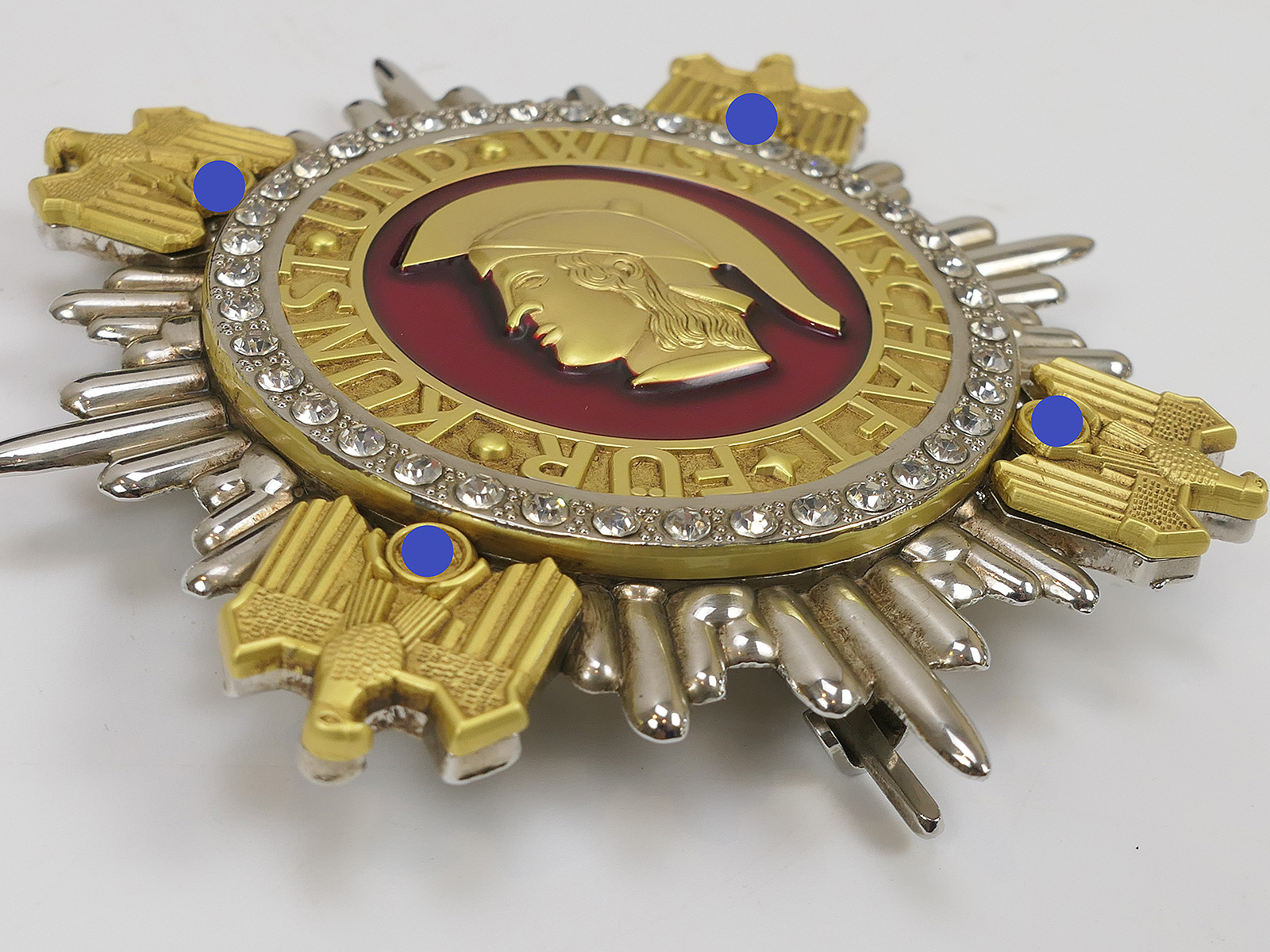 Die Auszeichnung bestand neben dem Geldbetrag aus der Ordens-Schärpe, einem aus Platin gefertigten und mit Brillanten besetzten Bruststern sowie einer aufwendigen Verleihungsurkunde in einer von Frieda Thiersch gefertigten Ledermappe. Die Dekorationen wurden in einer prächtigen Kassette überreicht.