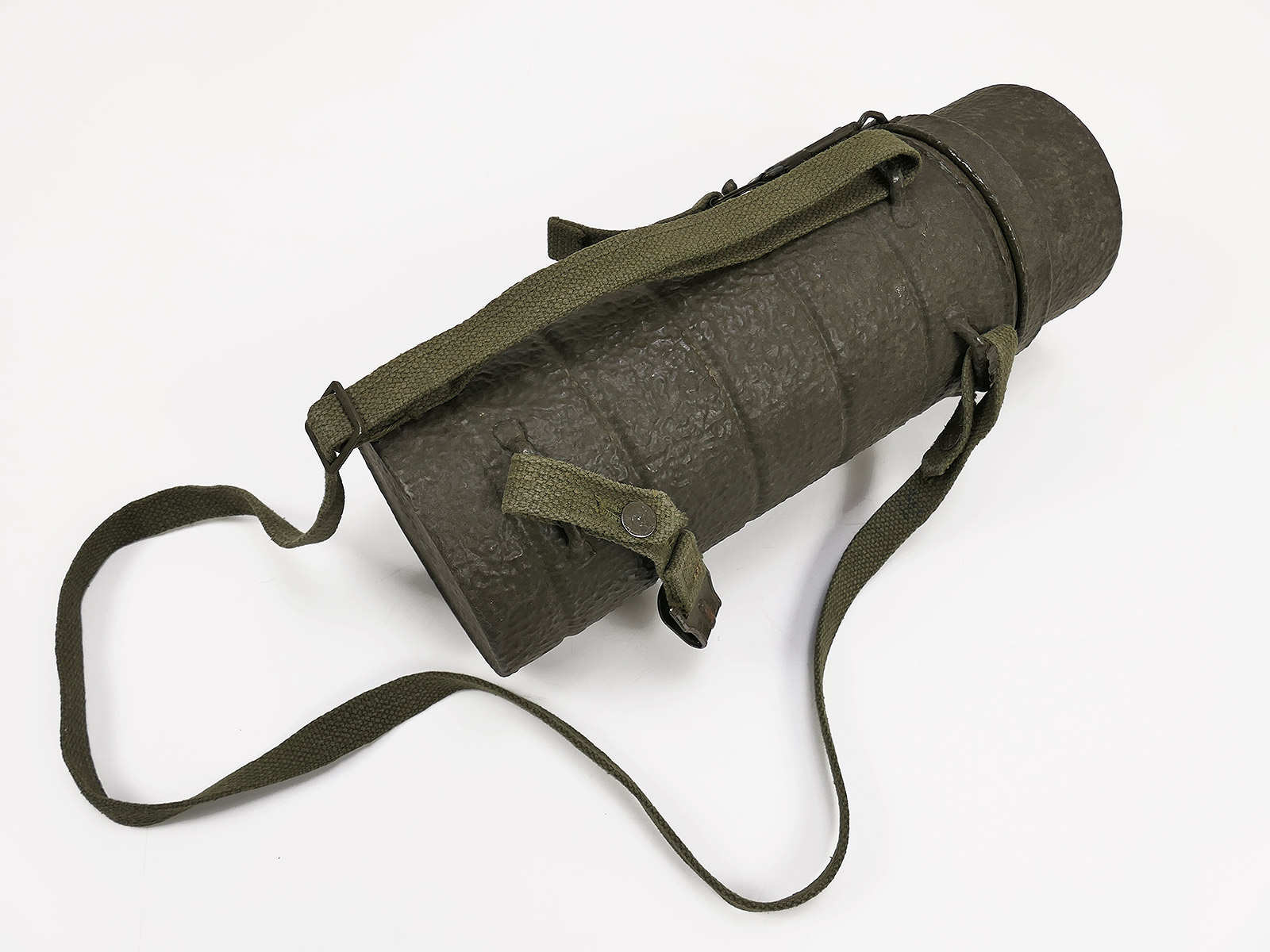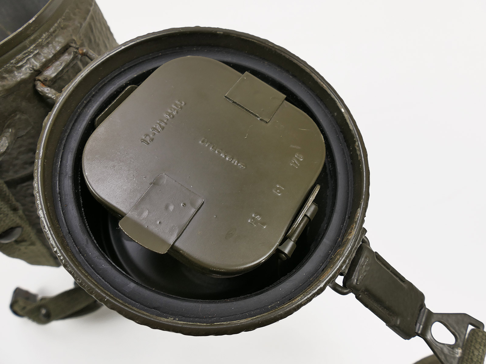 Bundeswehr frühe Gasmaskendose mit kompletter Beriemung SAMMLUNG