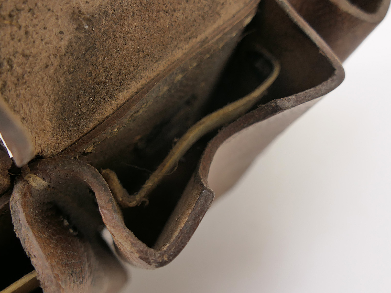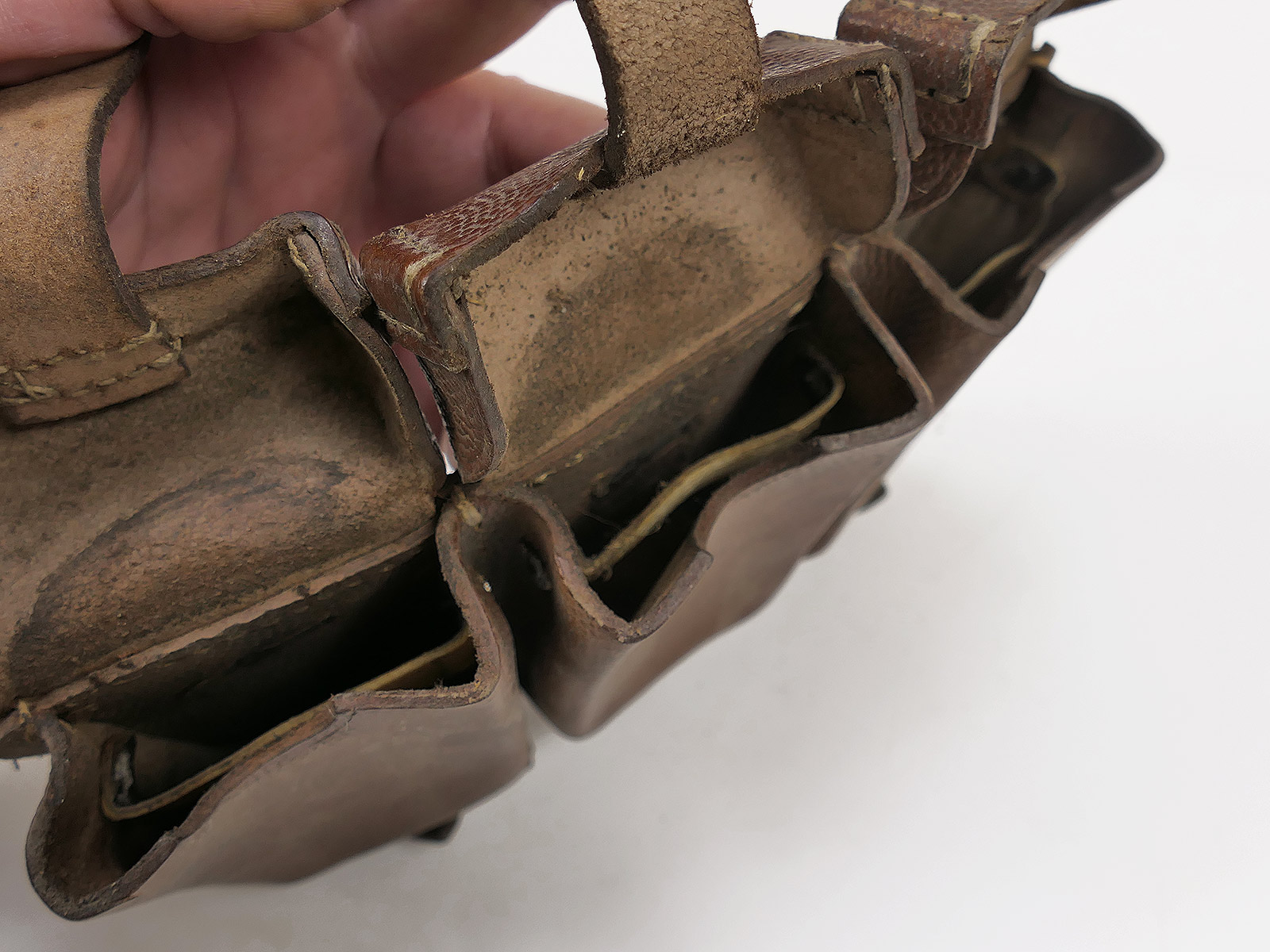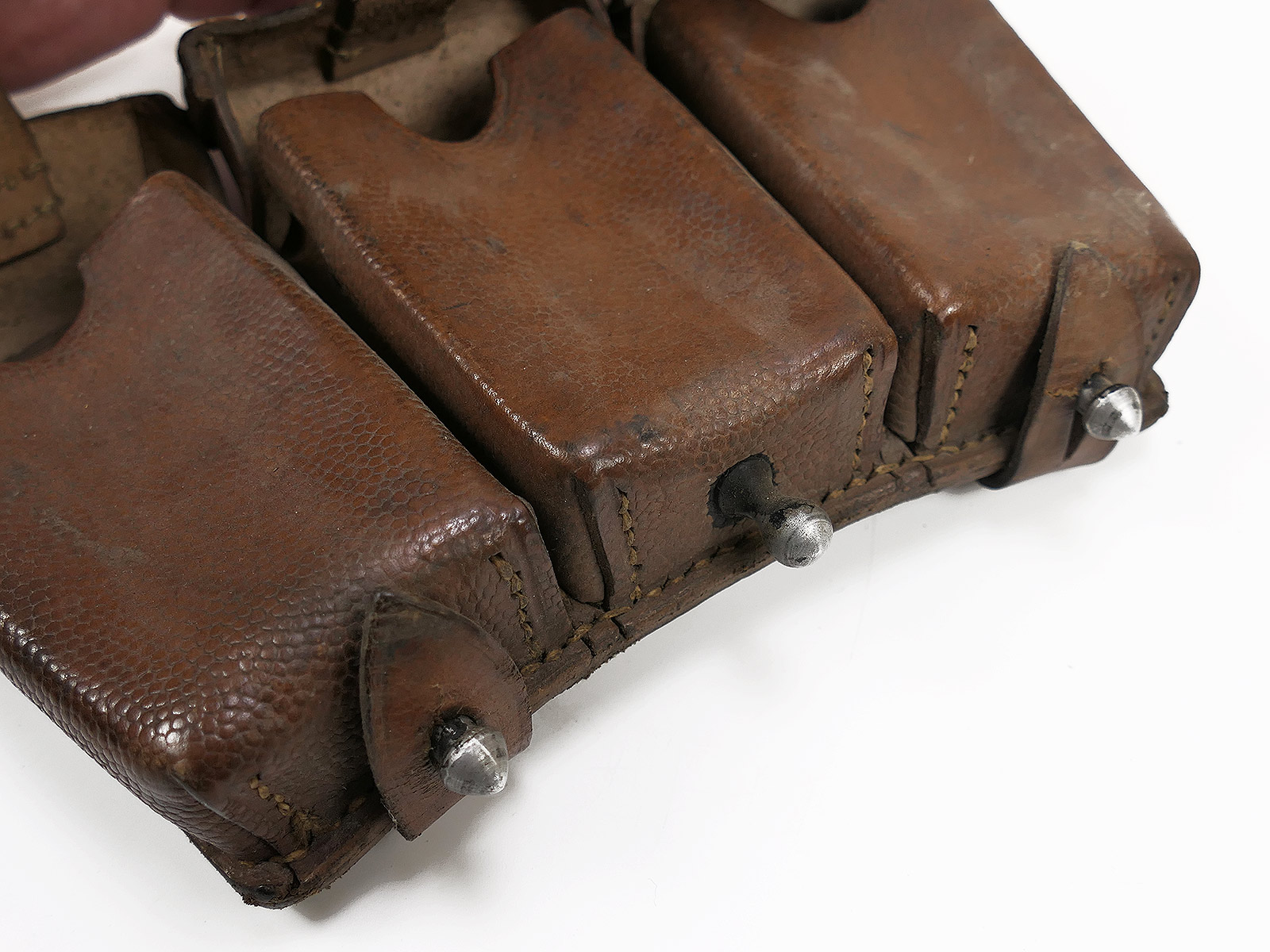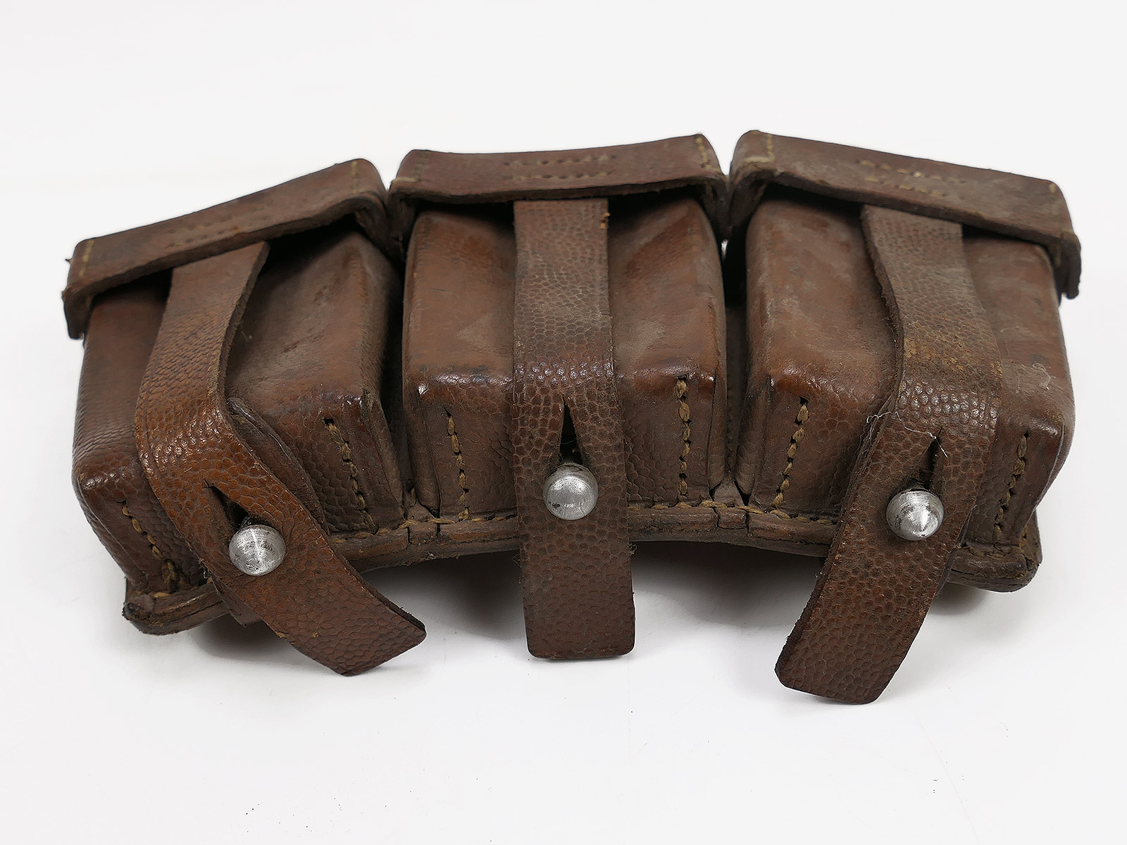 Original 3er K98 Patronentasche Wehrmacht, Braun, MIT den Innenunterteilungen, mit Hersteller gestempelt.