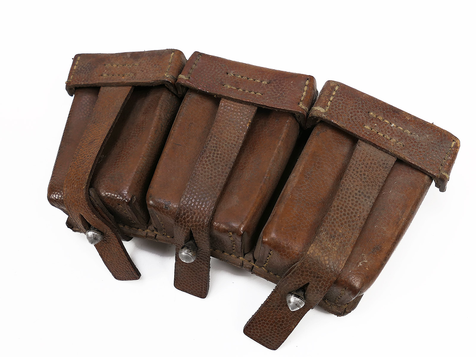 #C Karabiner K98 3er Patronentasche BRAUN ORIGINAL mit Hersteller Luftwaffe / Tropen / Afrikakorps