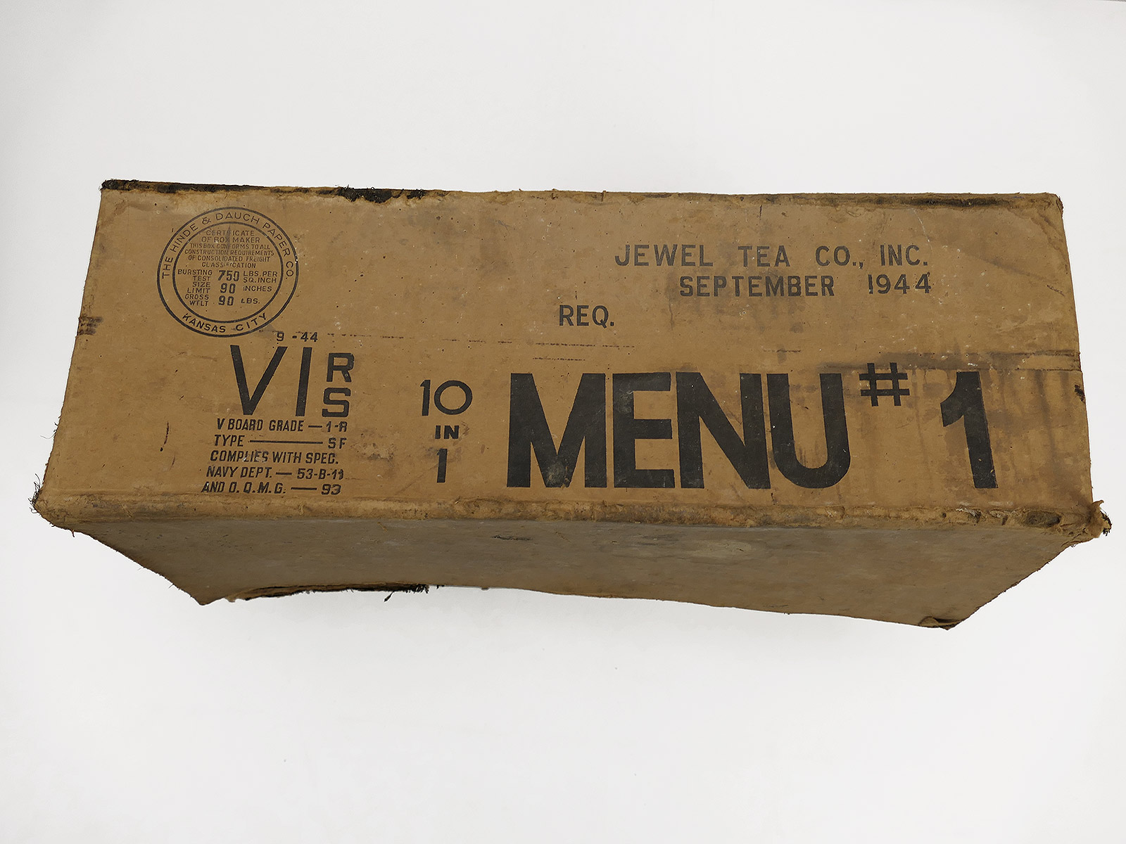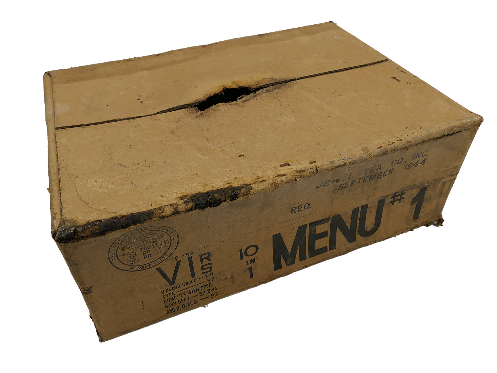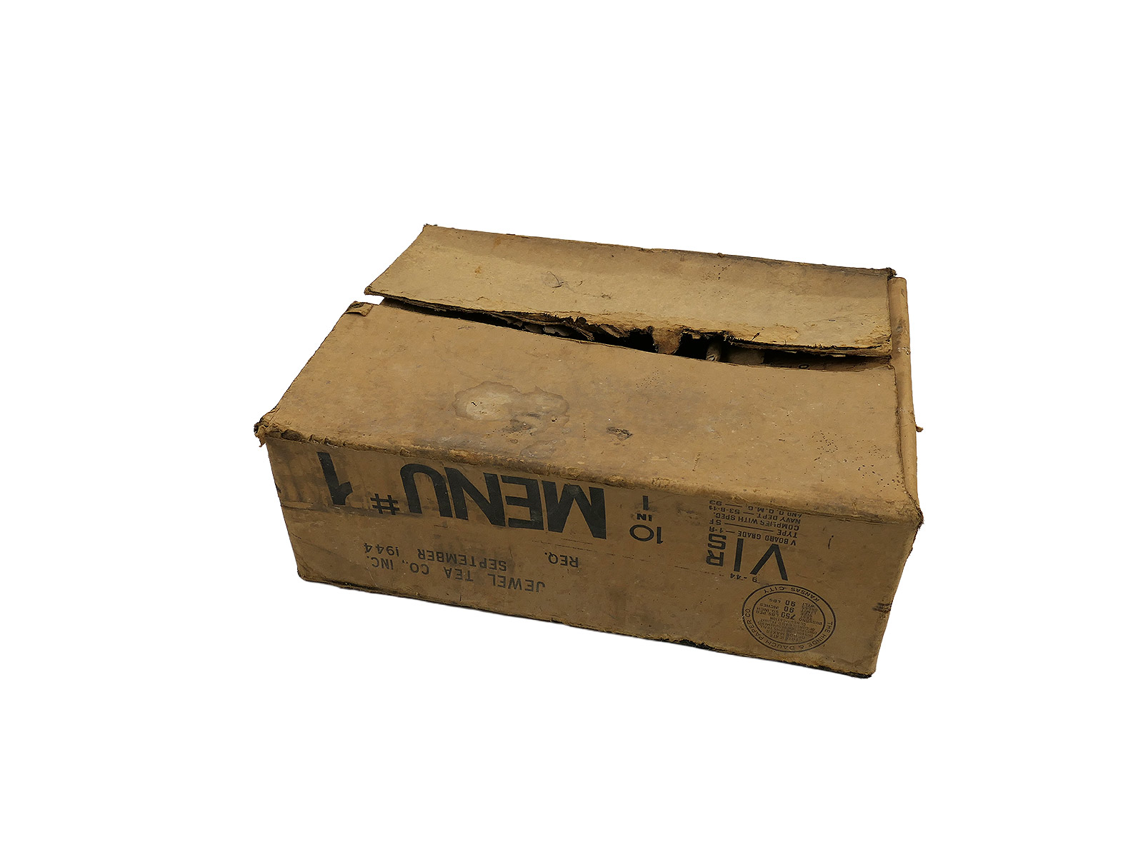 Originale große Umverpackung/ Karton für 10 US Menu #, Sept. 1944 datiert, ohne Inhalt.