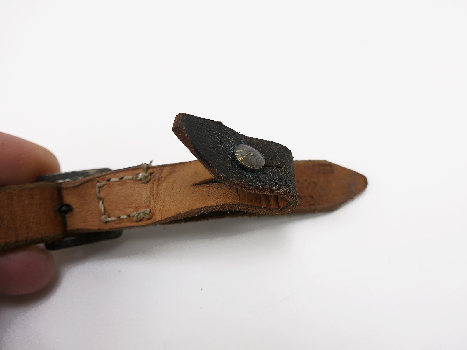 Antiker Stahlhelm Kinnriemen für Wehrmachts Helm, ältere Sammleranfertigung mit sehr schöner Alterspatina,