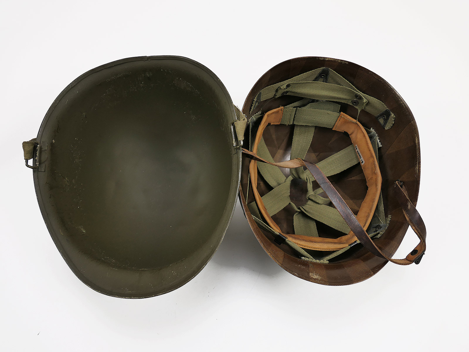 US M1 Stahlhelm "Special Engineer Unit", Nachkriegs Glocke, mit sehr schönem 50er Jahre Liner und 2 Kinnriemen
