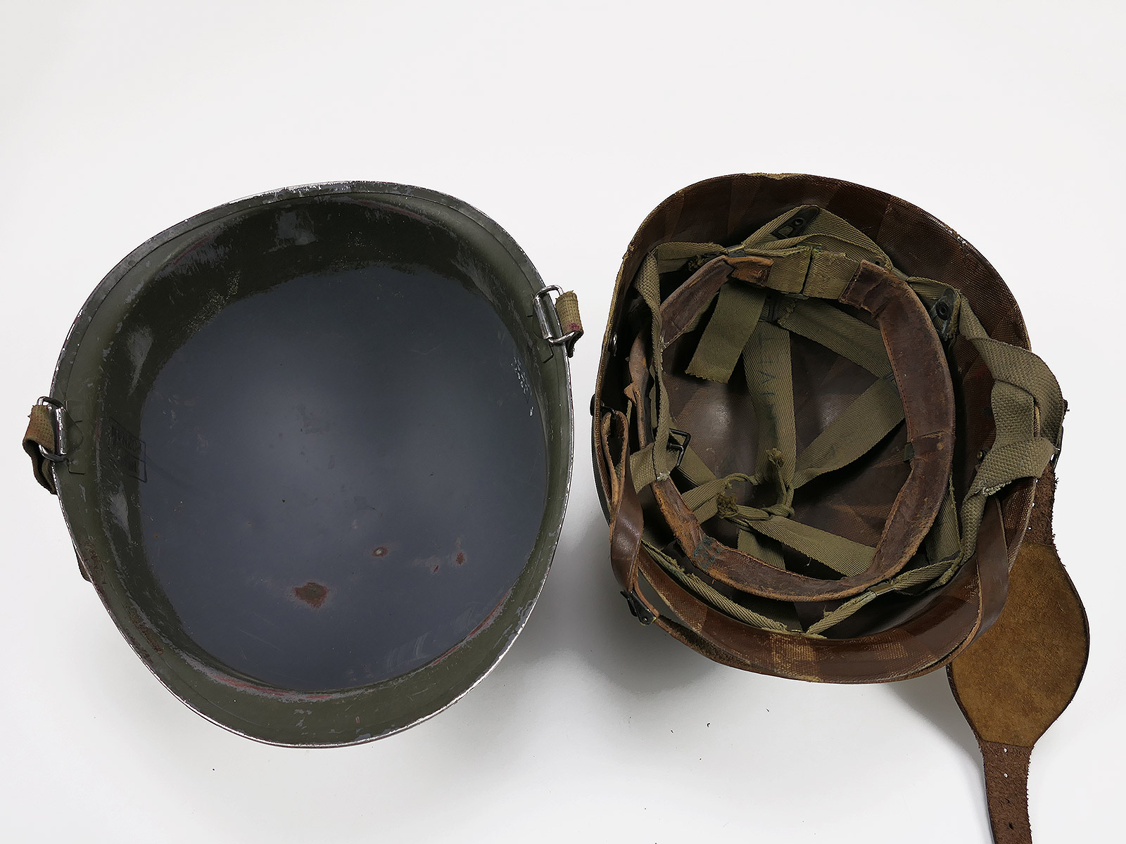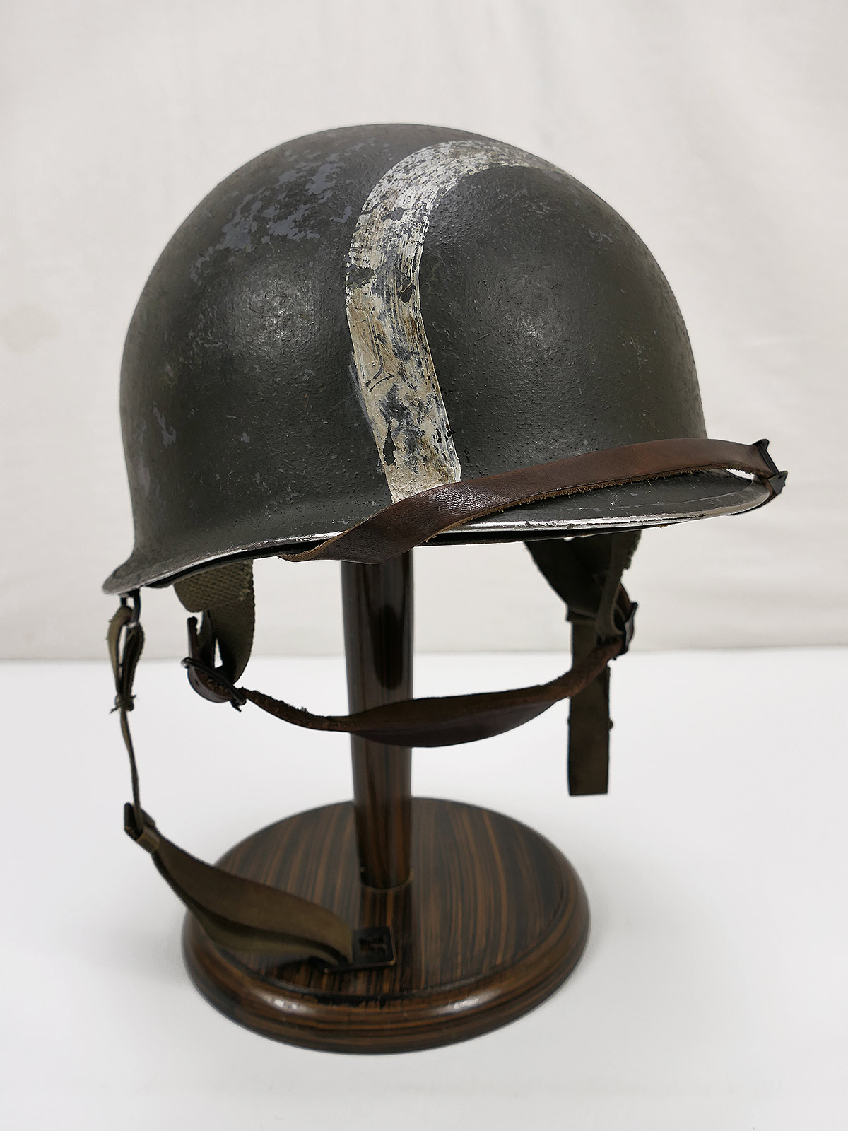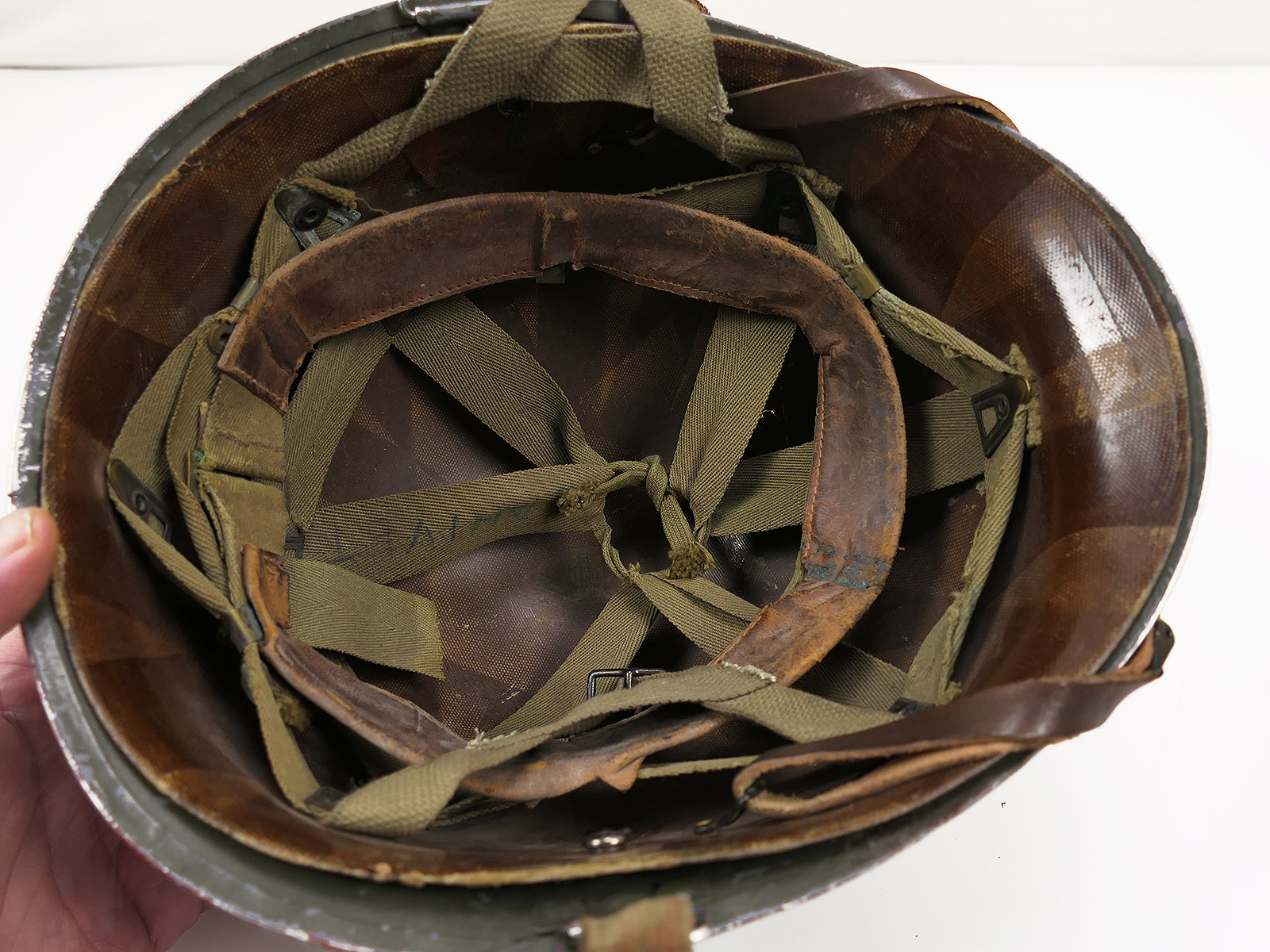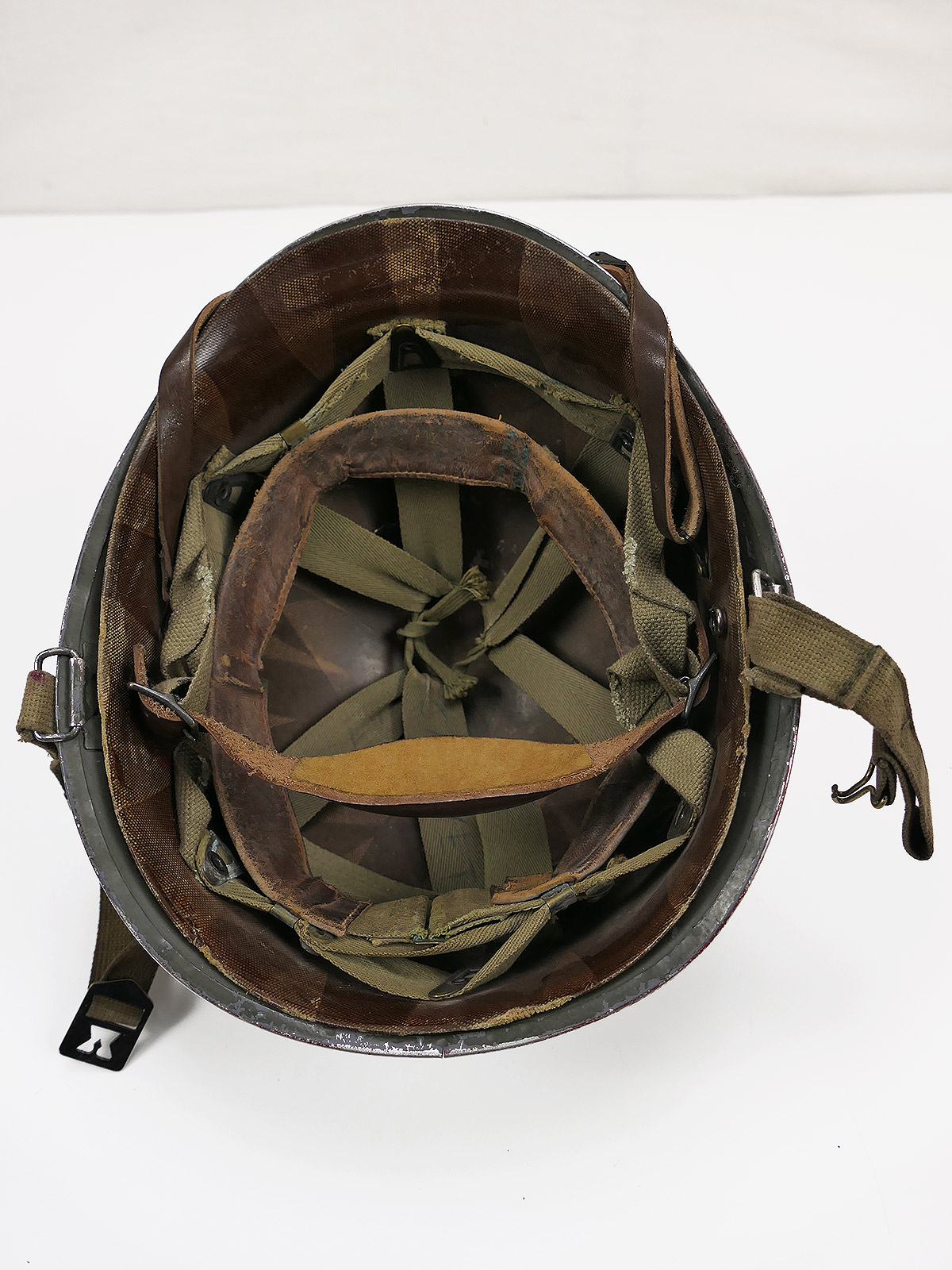 US Paratrooper Stahlhelm "Special Engineer Unit", Nachkriegs Glocke, mit sehr schönem 50er Jahre Liner und den abgebildeten Kinnriemen.