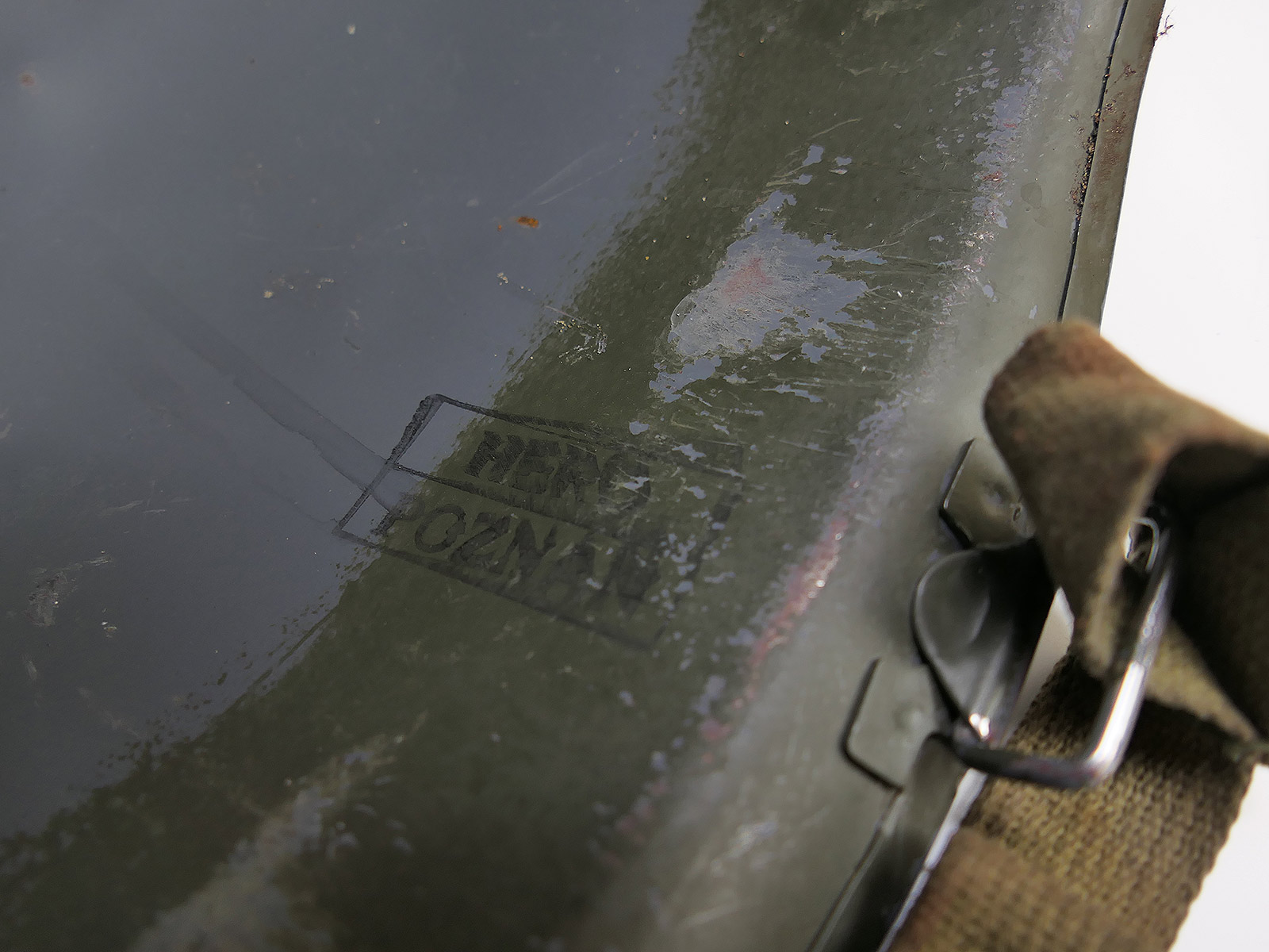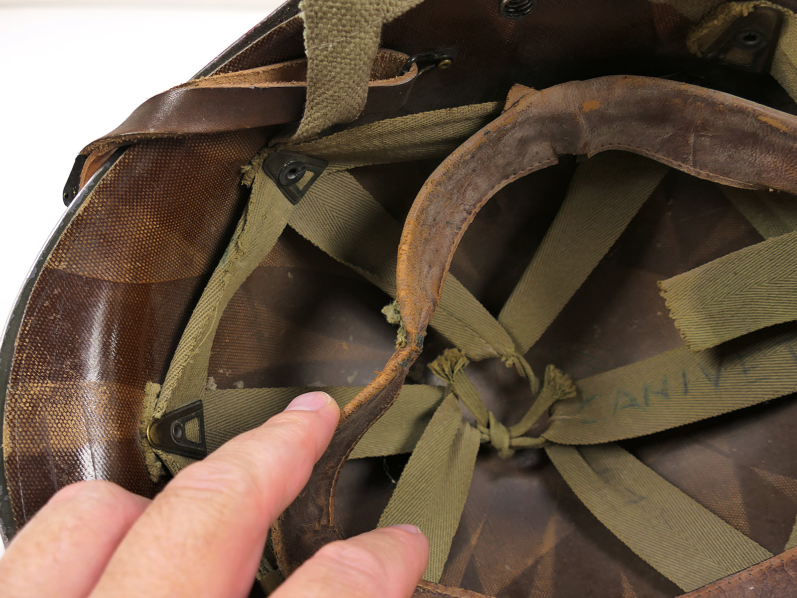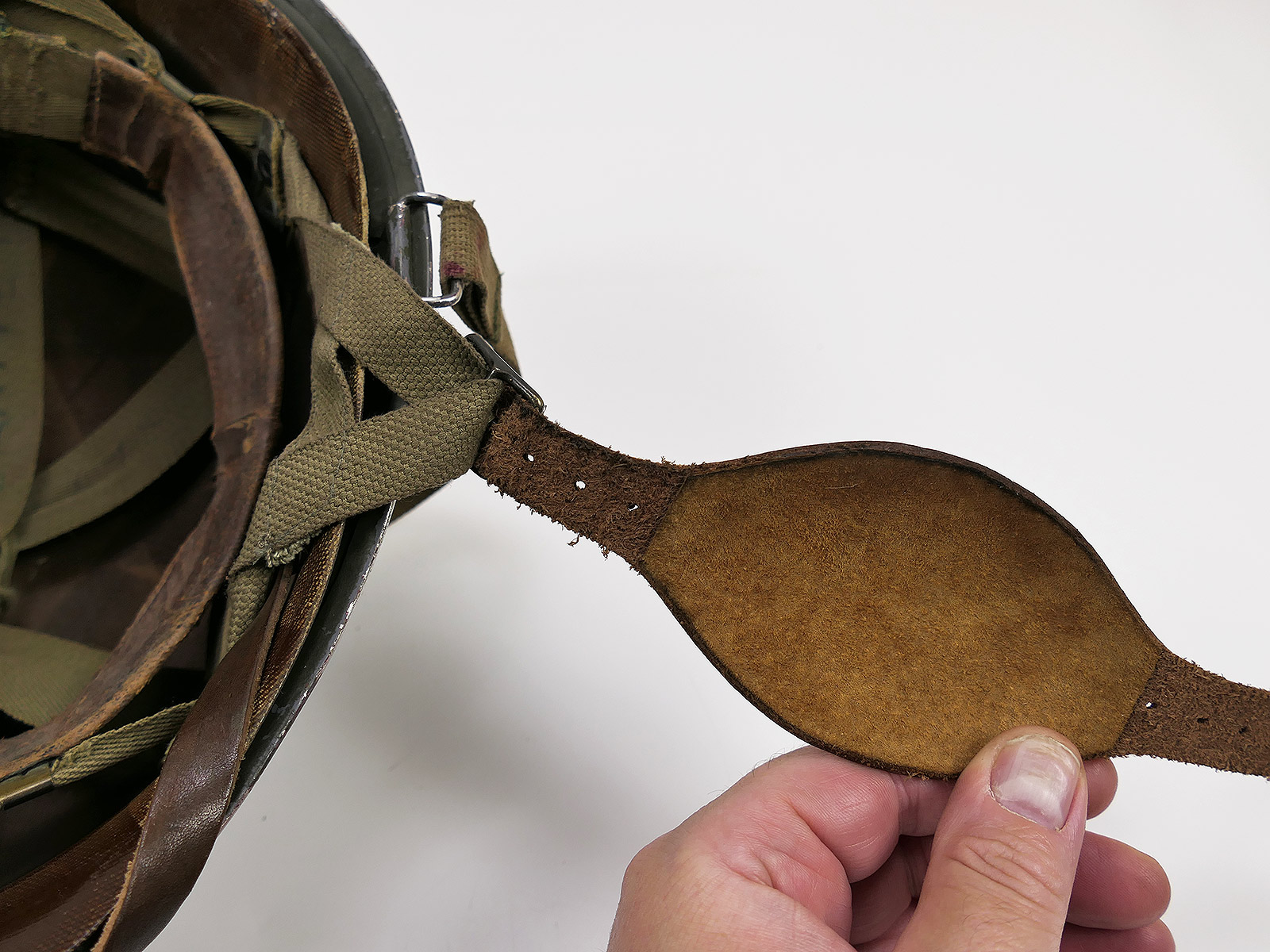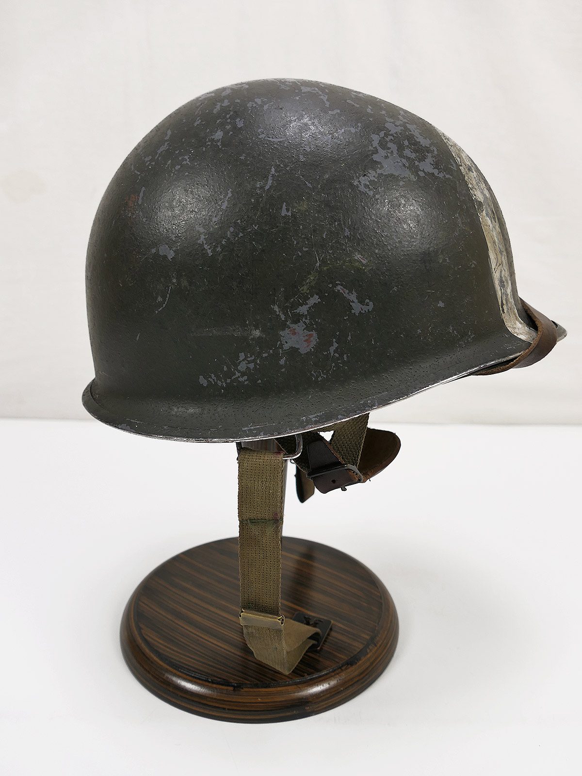US Paratrooper Stahlhelm "Special Engineer Unit", Nachkriegs Glocke, mit sehr schönem 50er Jahre Liner und den abgebildeten Kinnriemen.