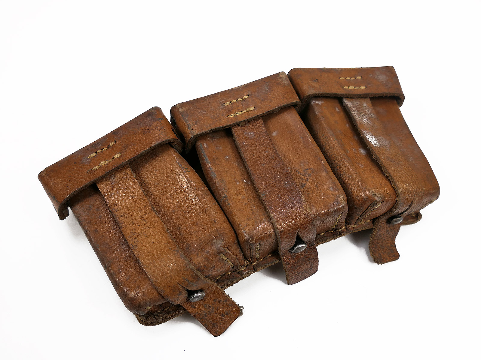 #E Karabiner K98 3er Patronentasche BRAUN ORIGINAL mit RBNR. Luftwaffe / Tropen / Afrikakorps