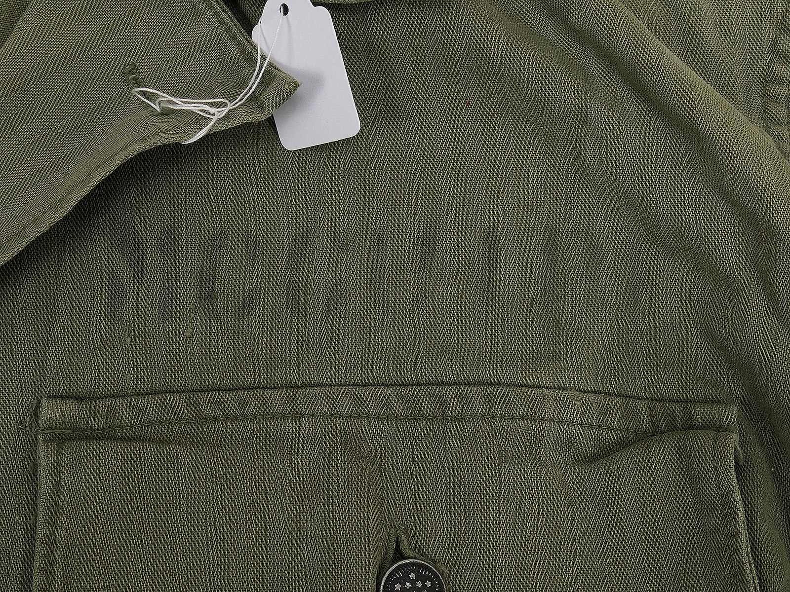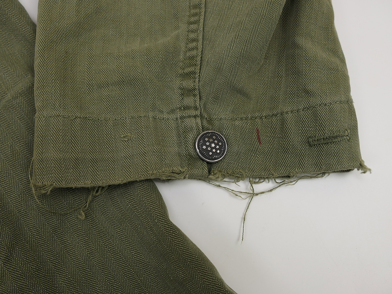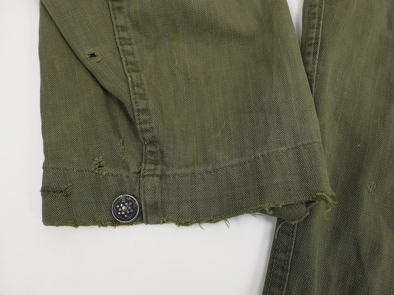 Einzelstück Original US ARMY WW2 HBT Herringbone Twill Jacket Small (US 34R) Collection BATTLE WORN