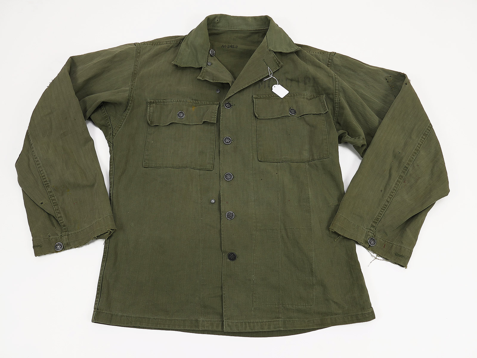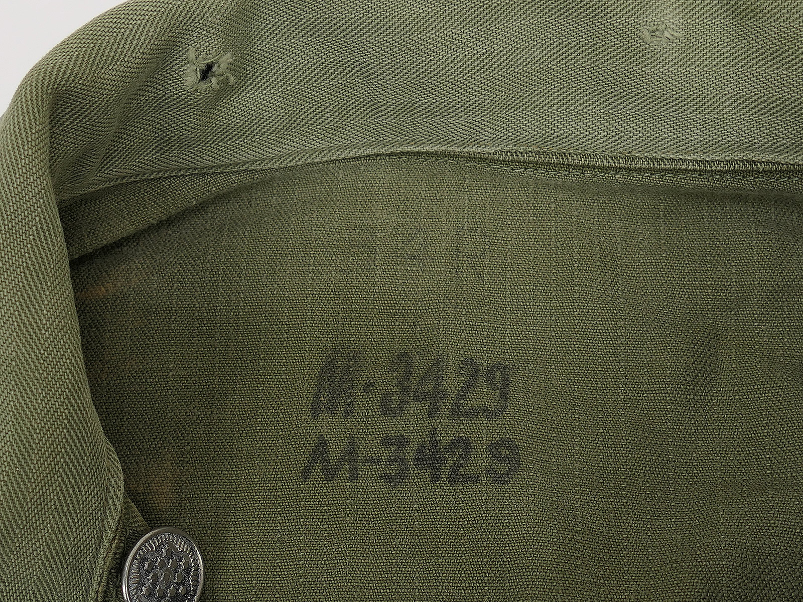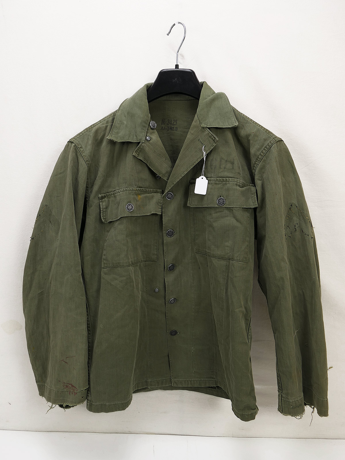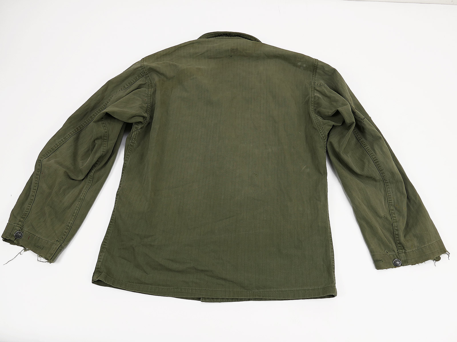 Einzelstück Original US ARMY WW2 HBT Herringbone Twill Jacket Small (US 34R) Collection BATTLE WORN