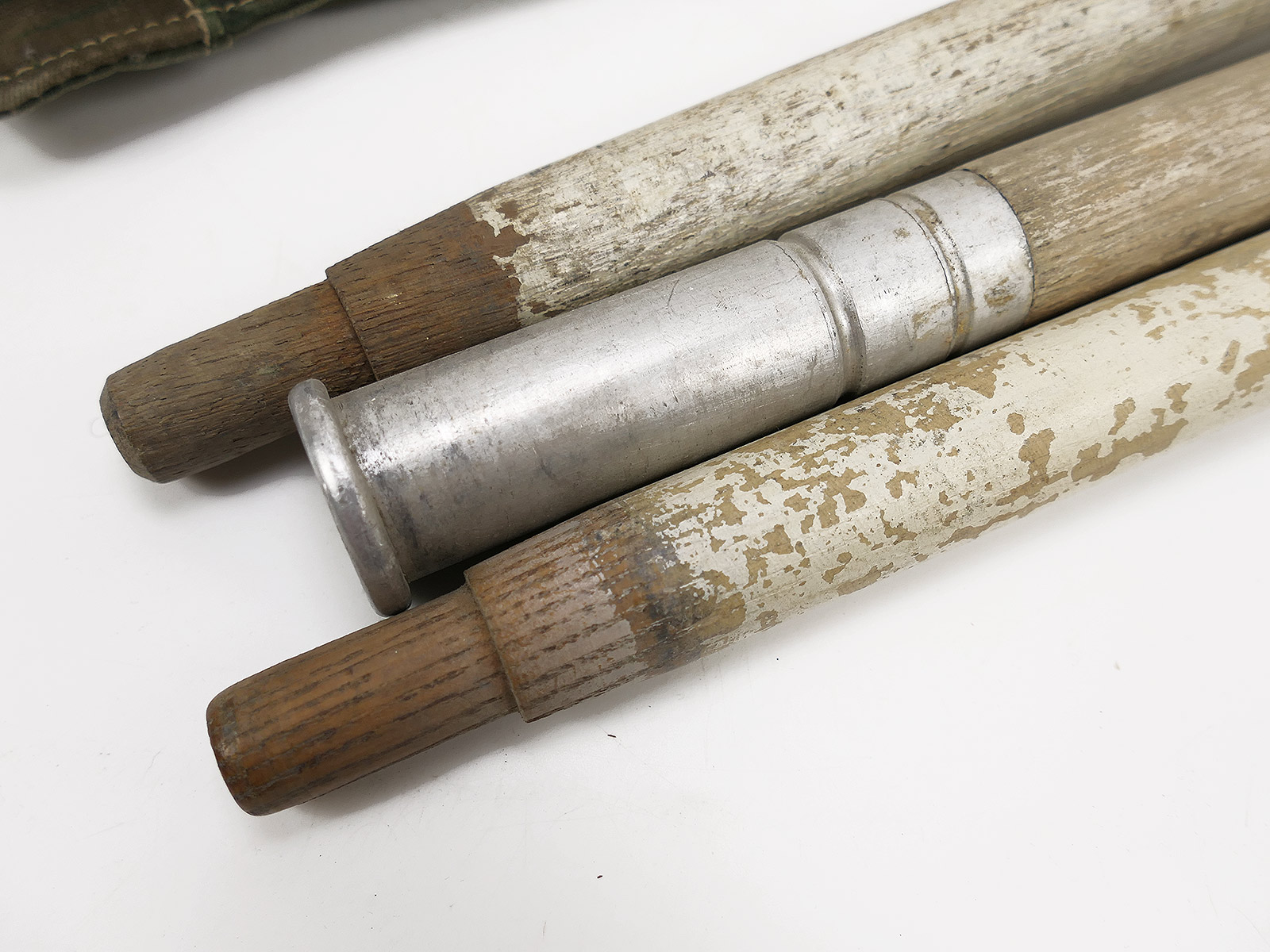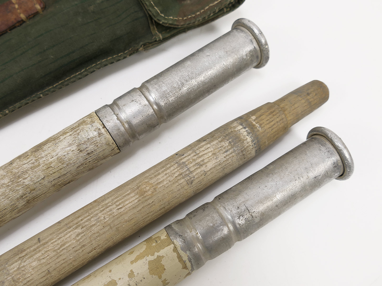 Einzelstück Typ Wehrmacht Splittertarn Zeltstangentasche 1941 mit 3 Zeltstangen und 3 Heringen