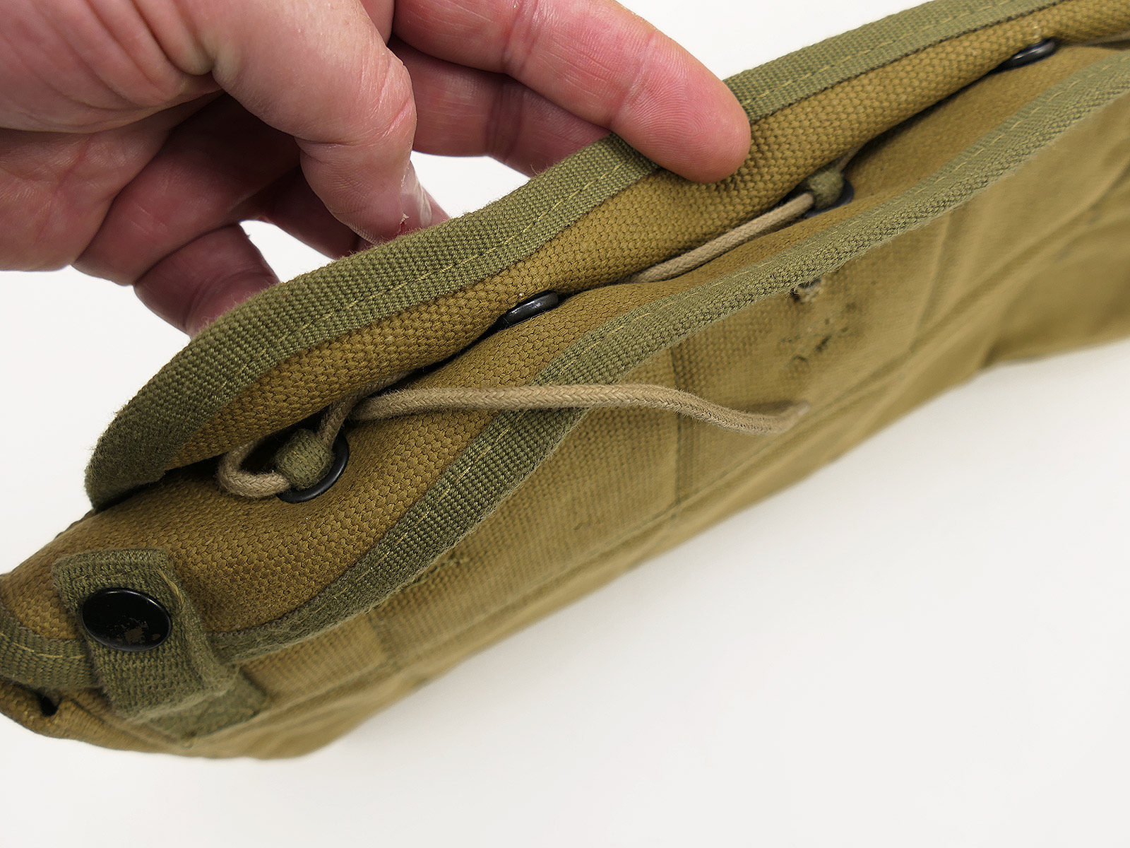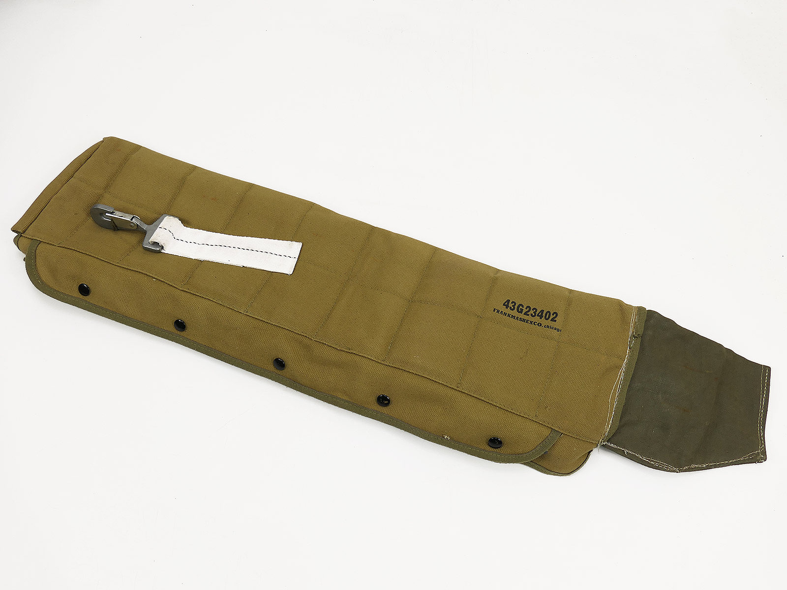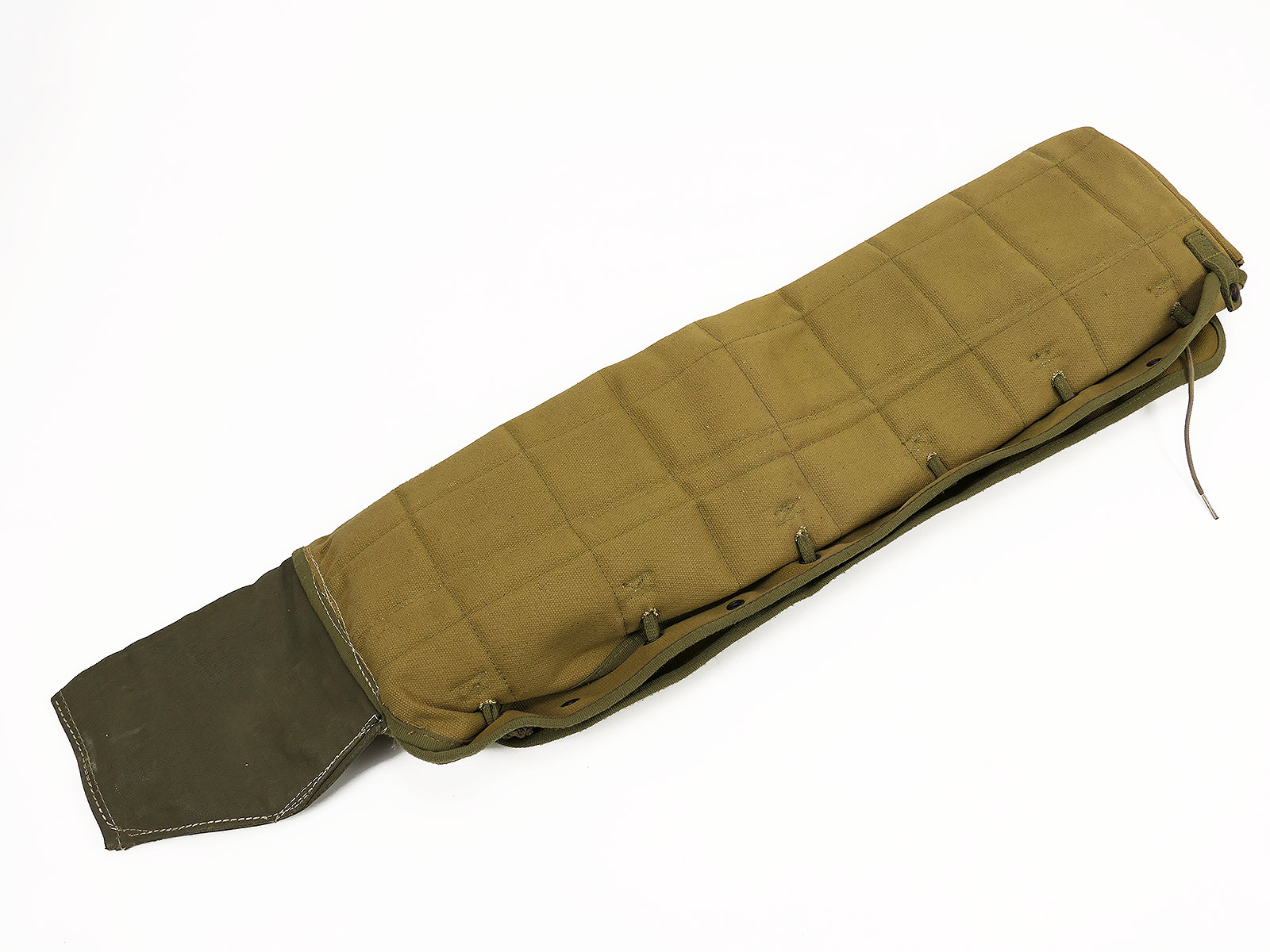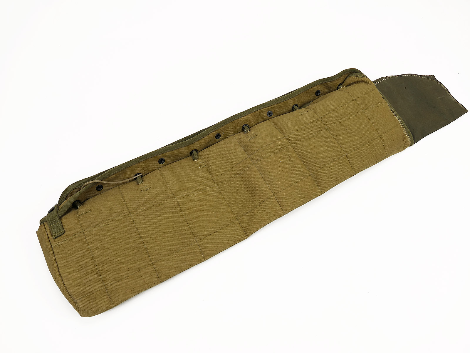 Ein gepolstertes Futteral mit Verschlusskordel und Druckknöpfen zum Verstauen des grob zerlegten ( 2 Teile, field stripped) US M1 Garand Gewehrs,