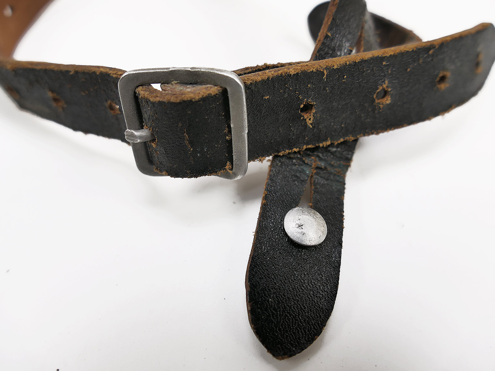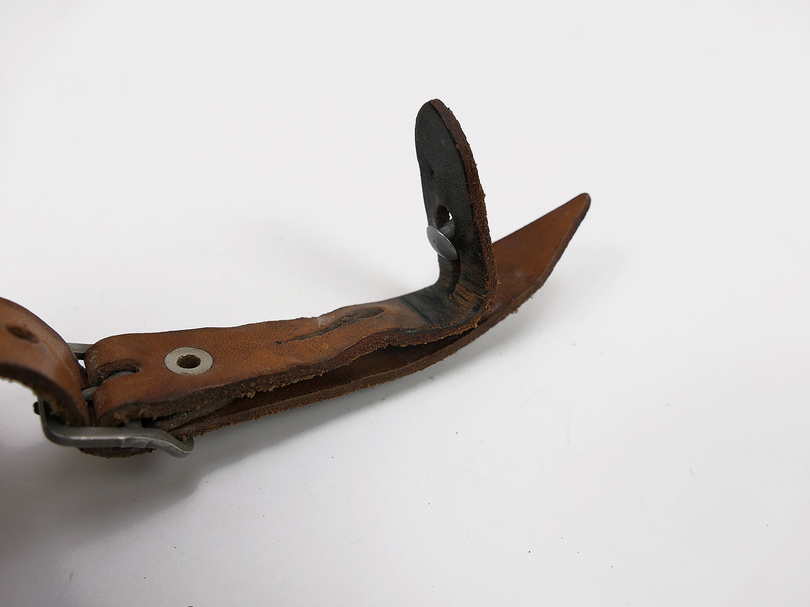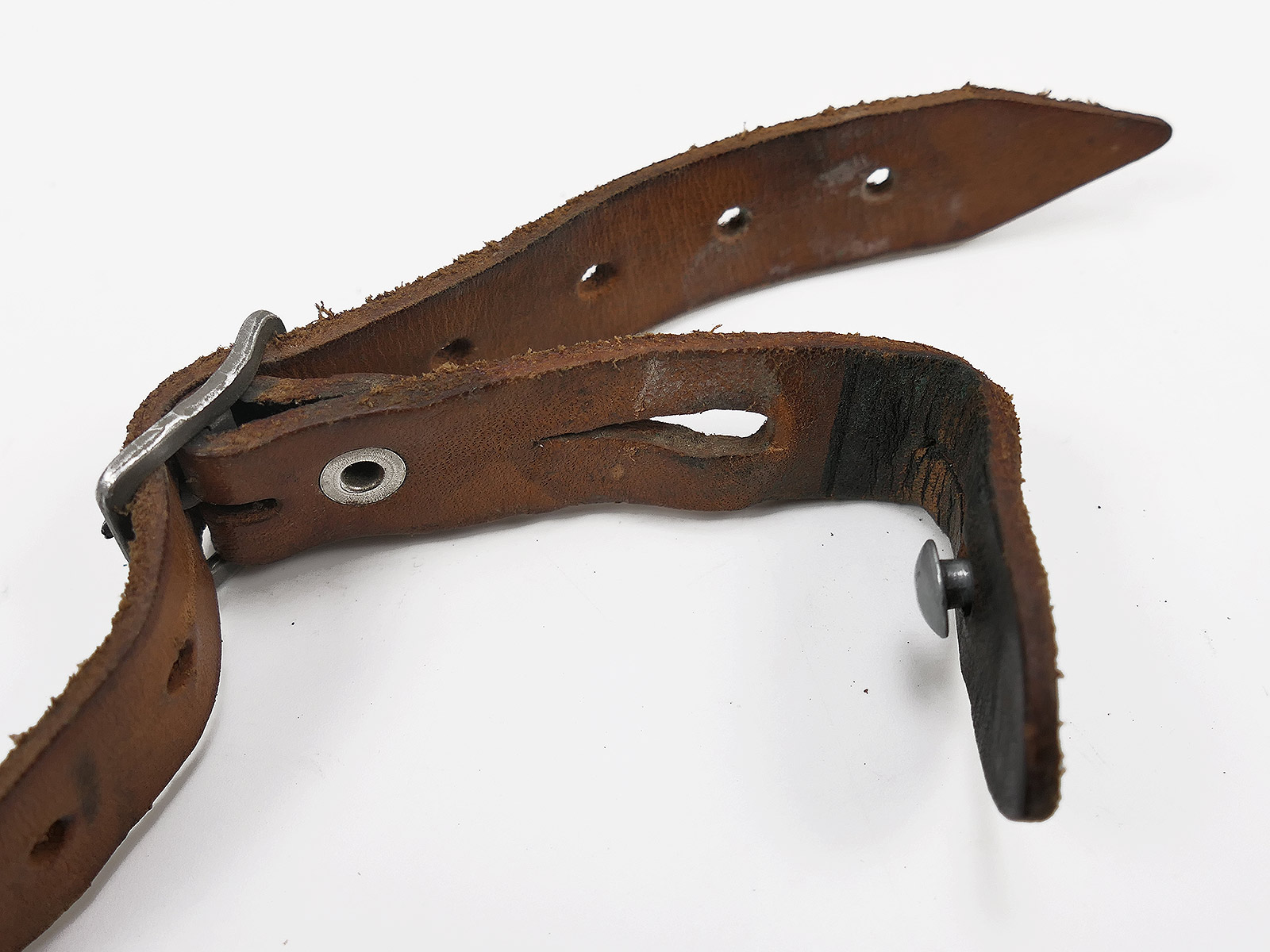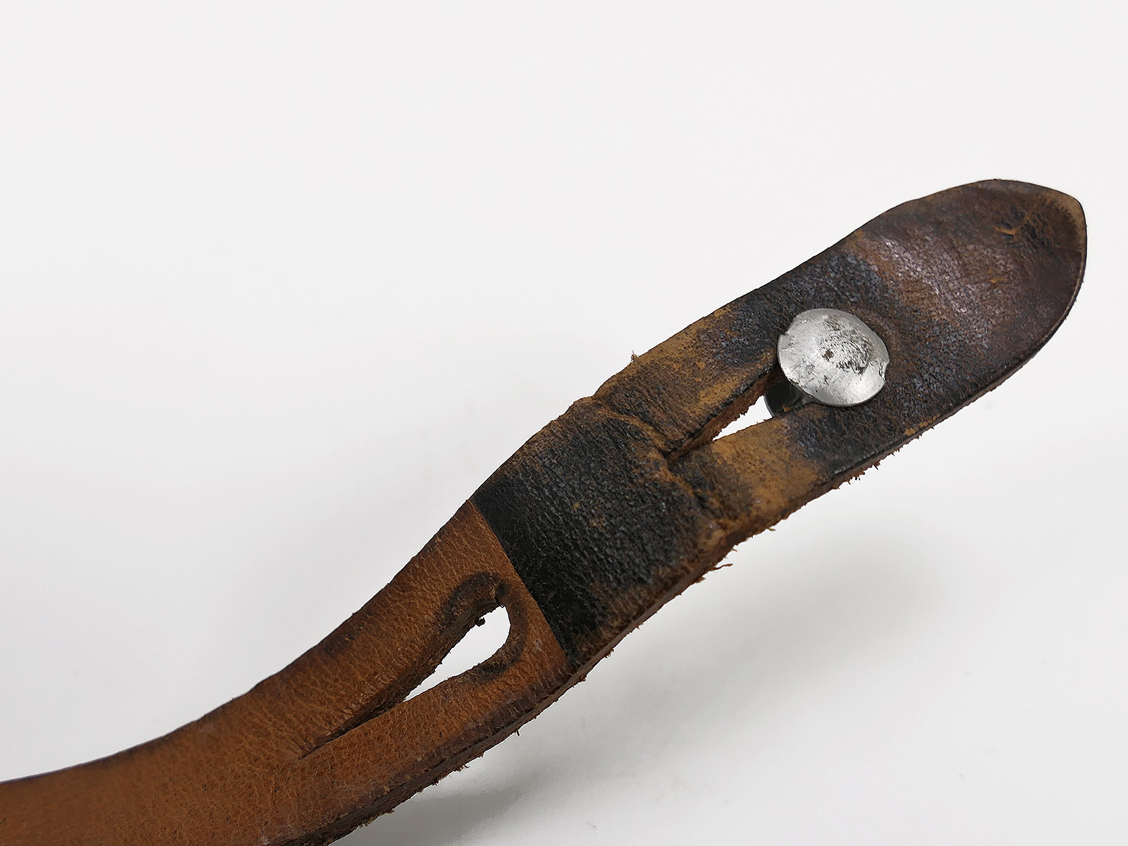 Originaler BGS Stahlhelm Kinnriemen mit sehr schöner Alterspatina,