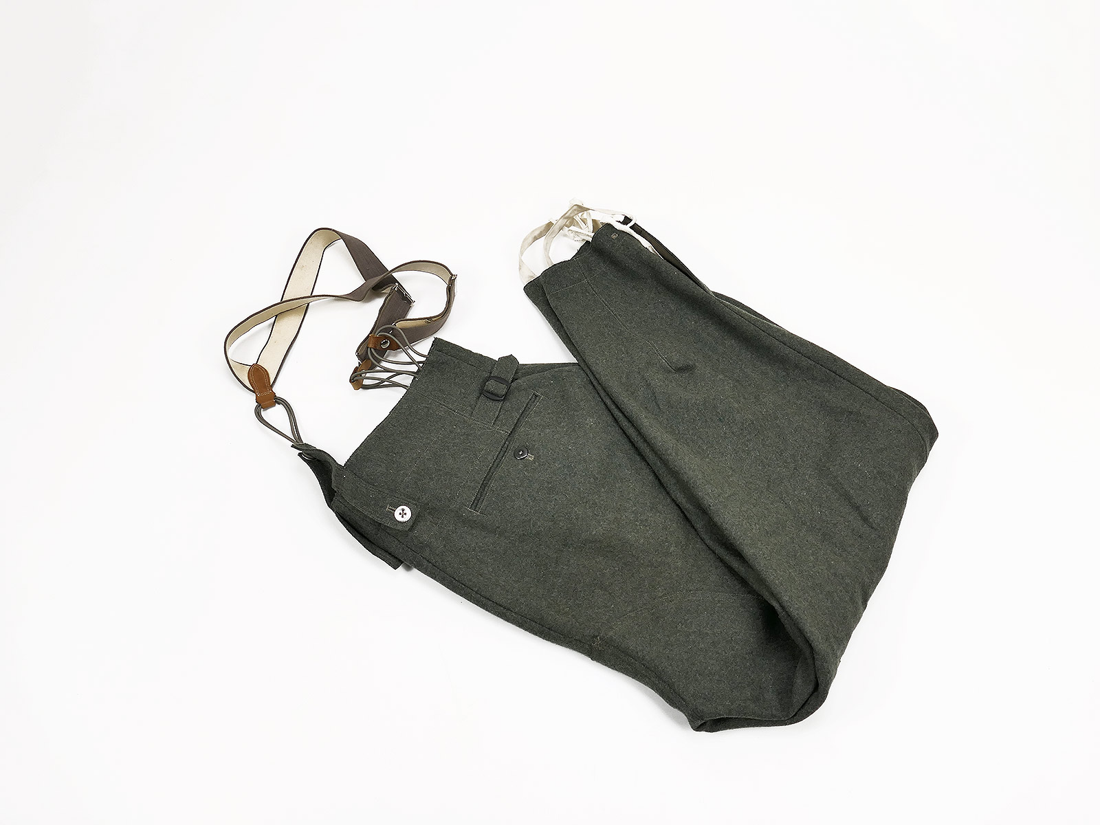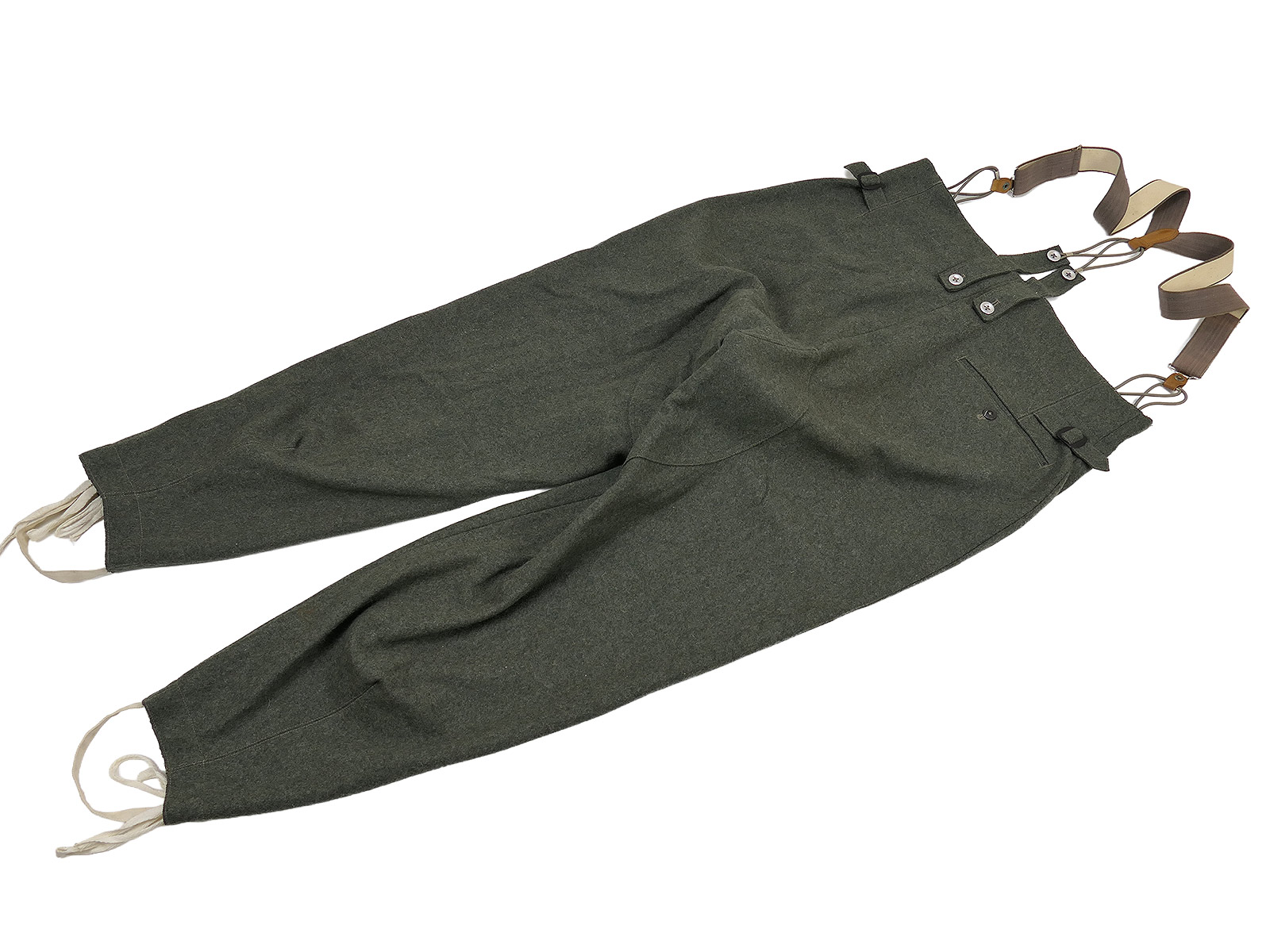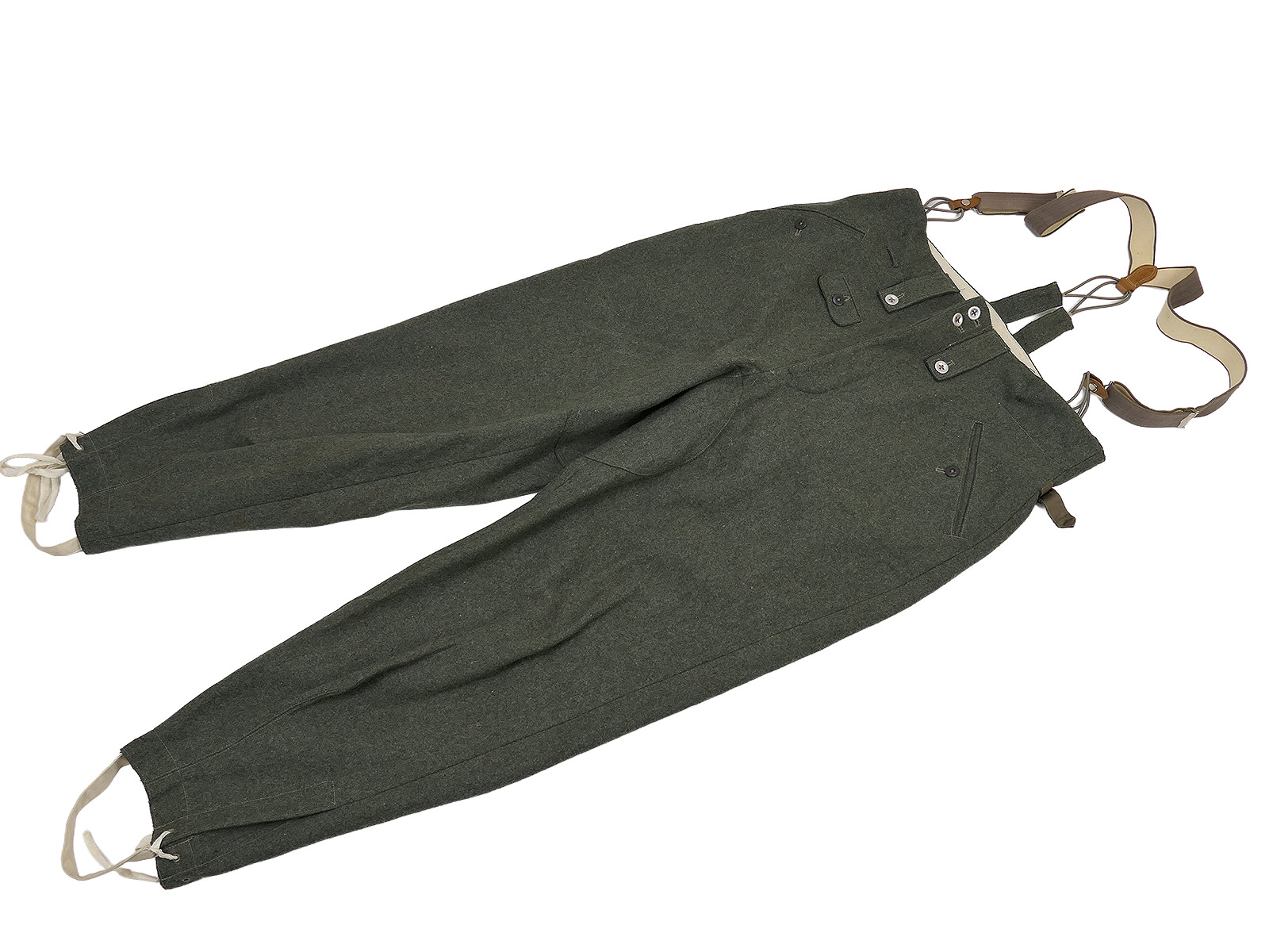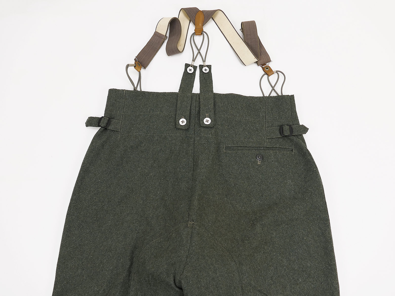 Einzelstück Wehrmacht M43 Keilhose Wollfilz Feldhose feldgrau Uniformhose Gr. 52 mit Hosenträgern BATTLE WORN