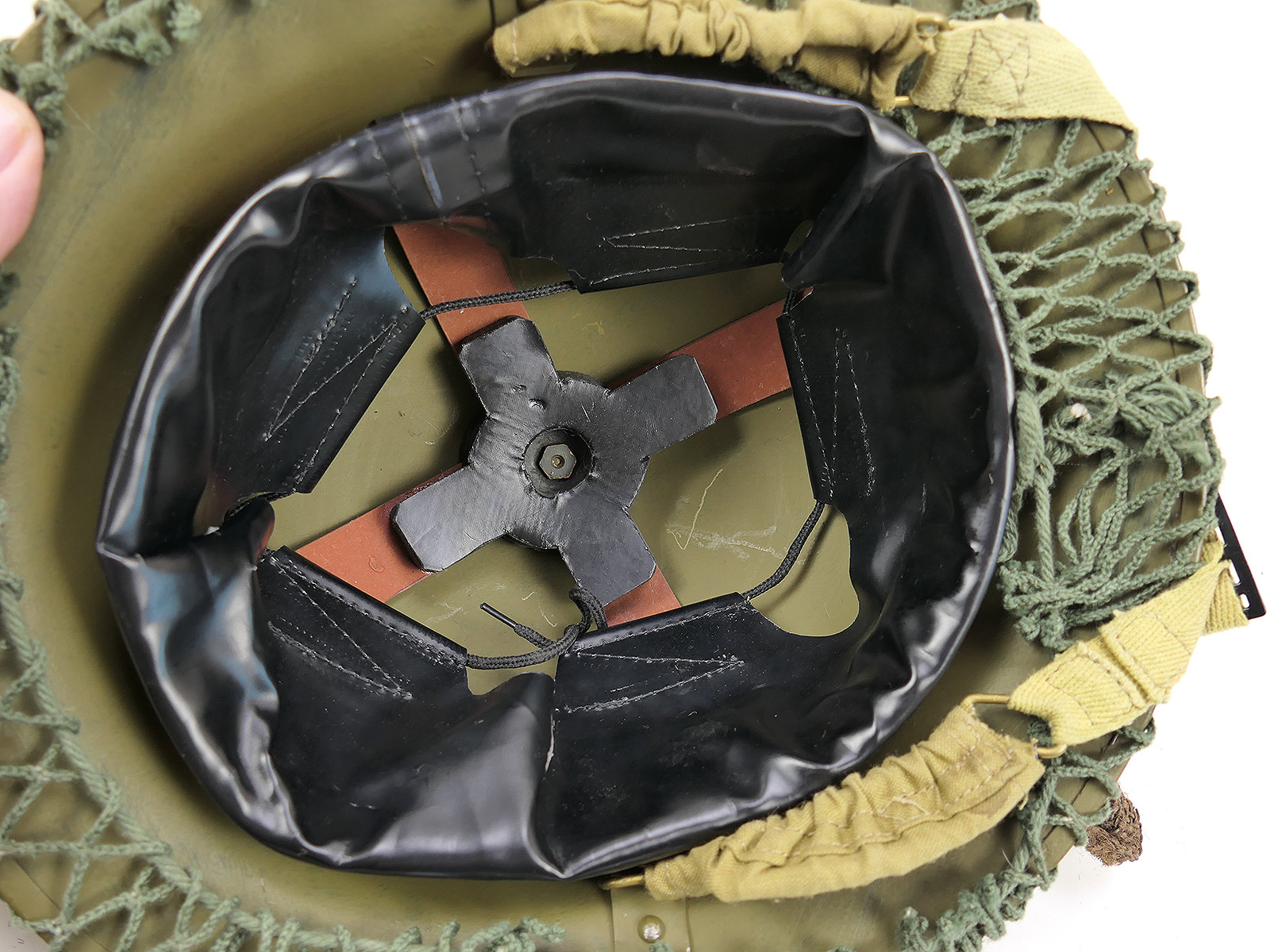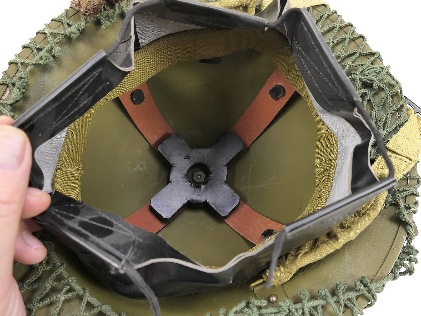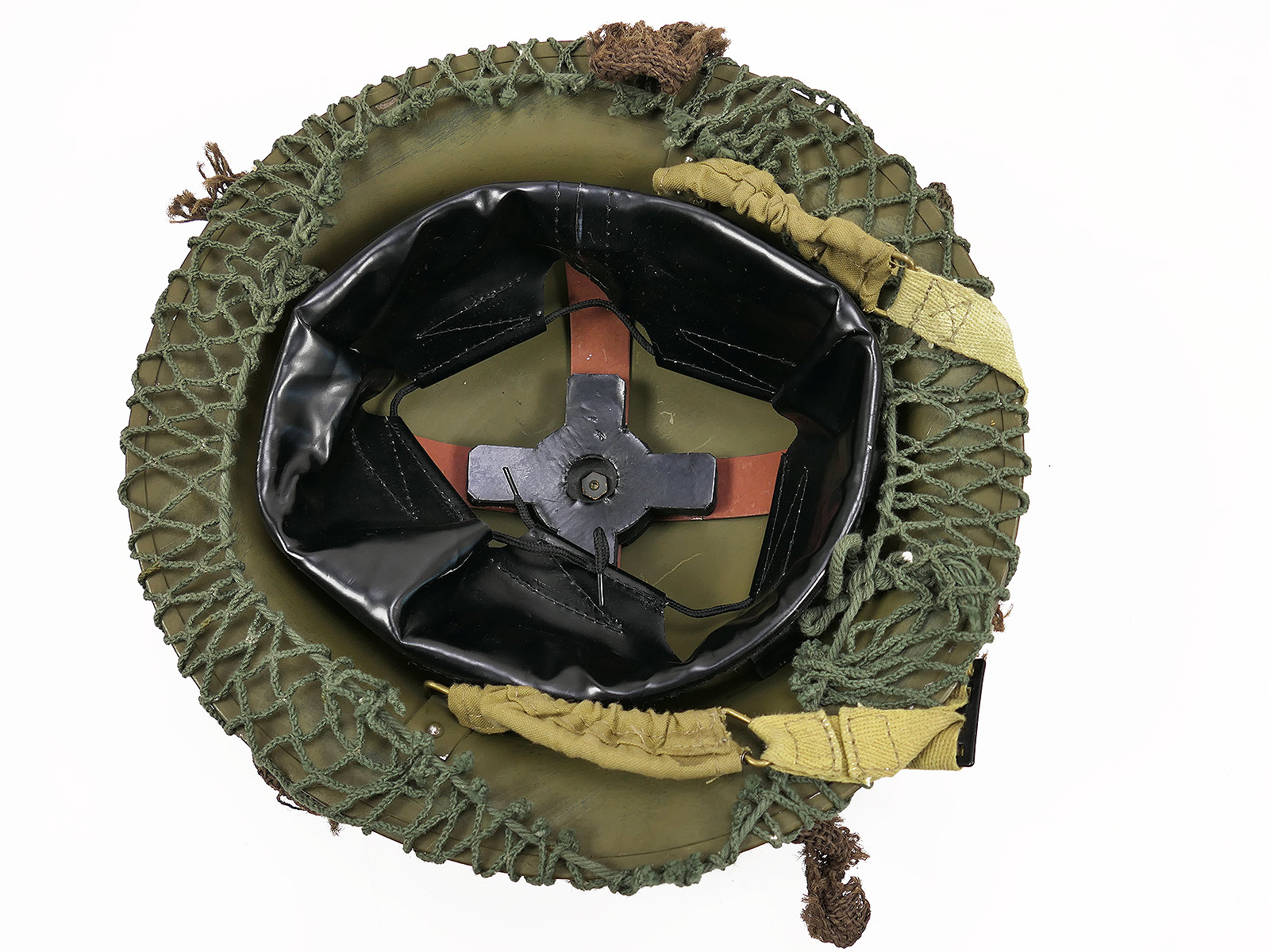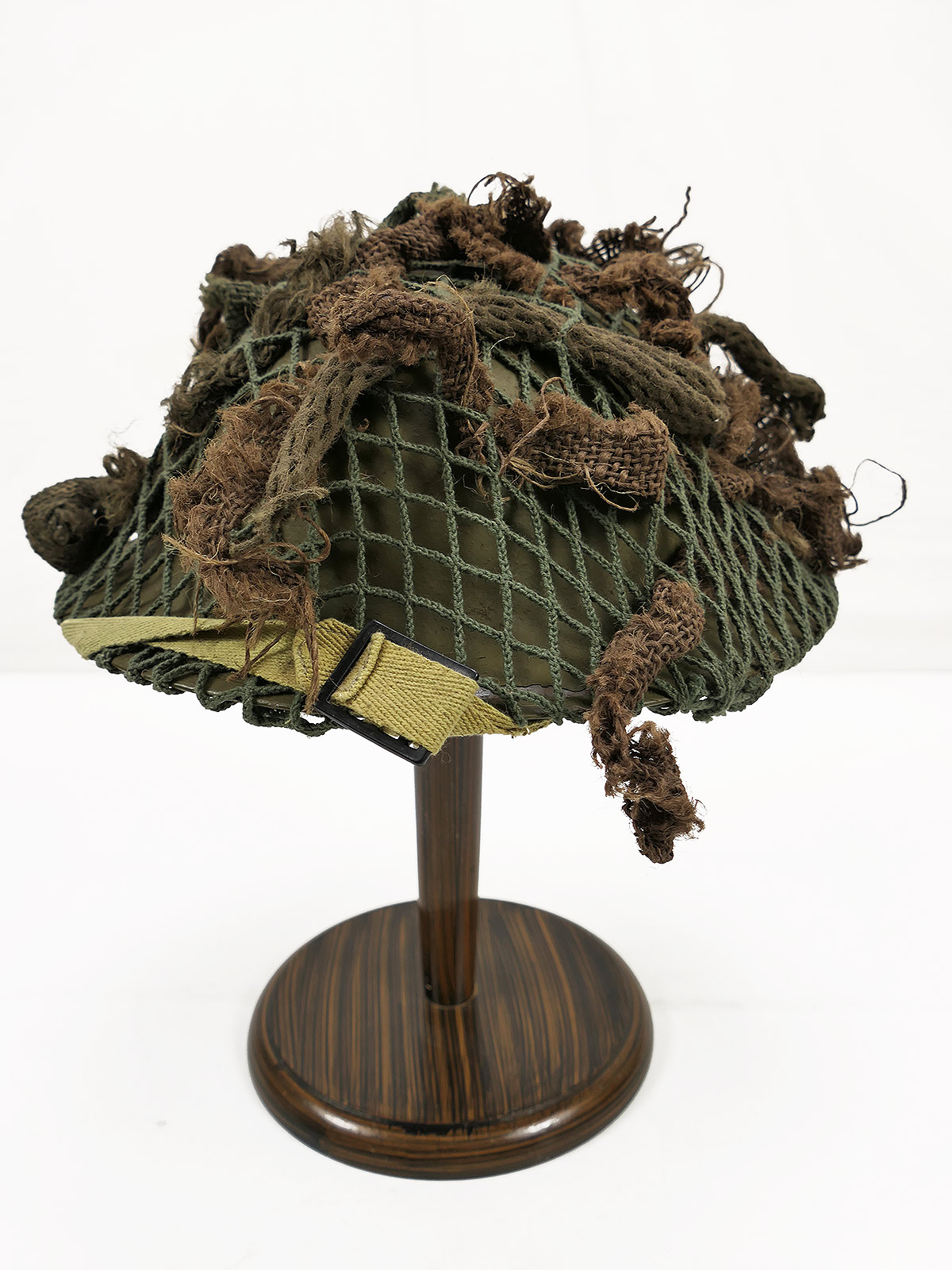 Einzelstück WW2 Tellerhelm Englisch Brodie Stahlhelm British Army mit Helmnetz Tarnmaterial COLLECTION