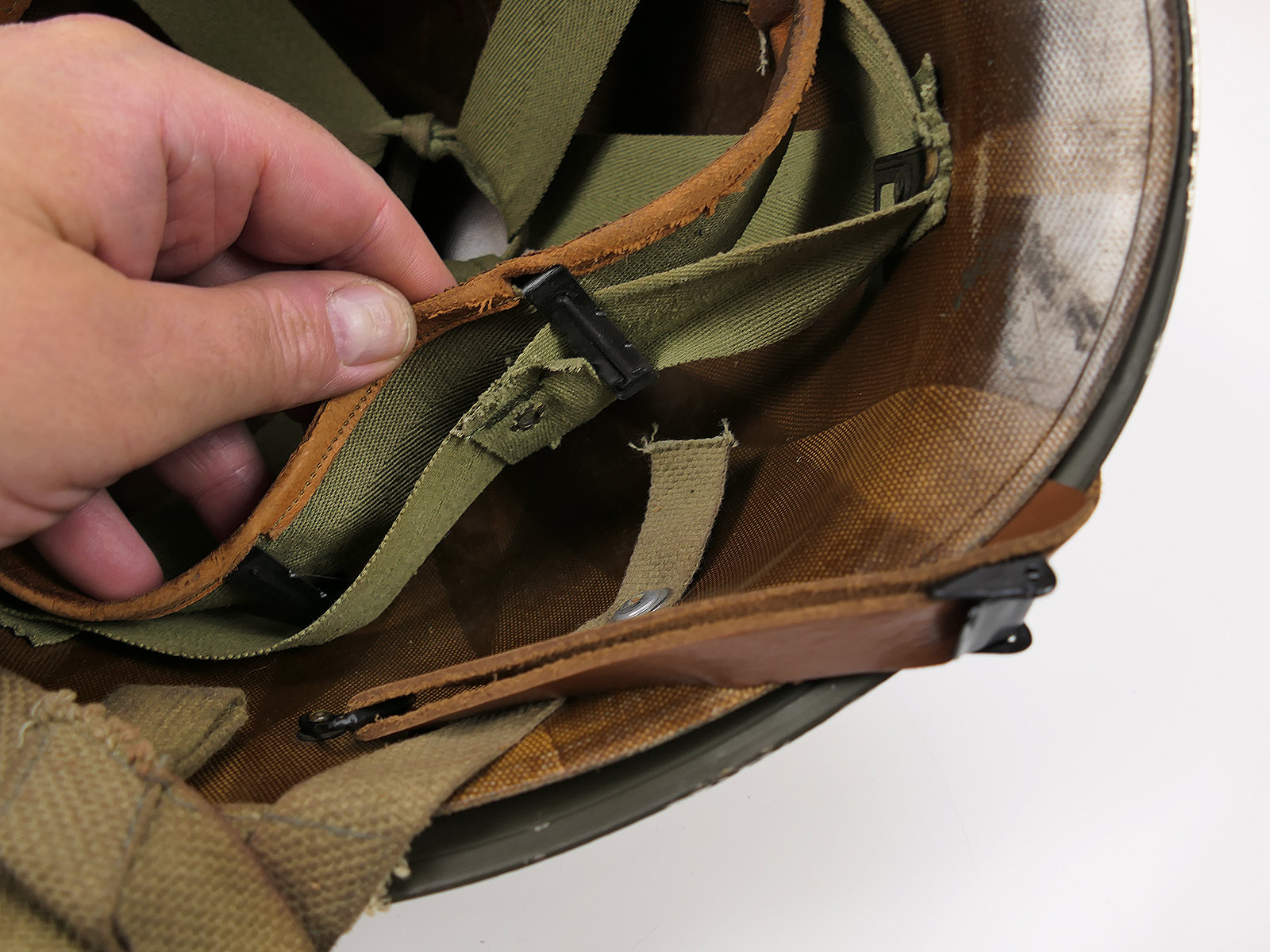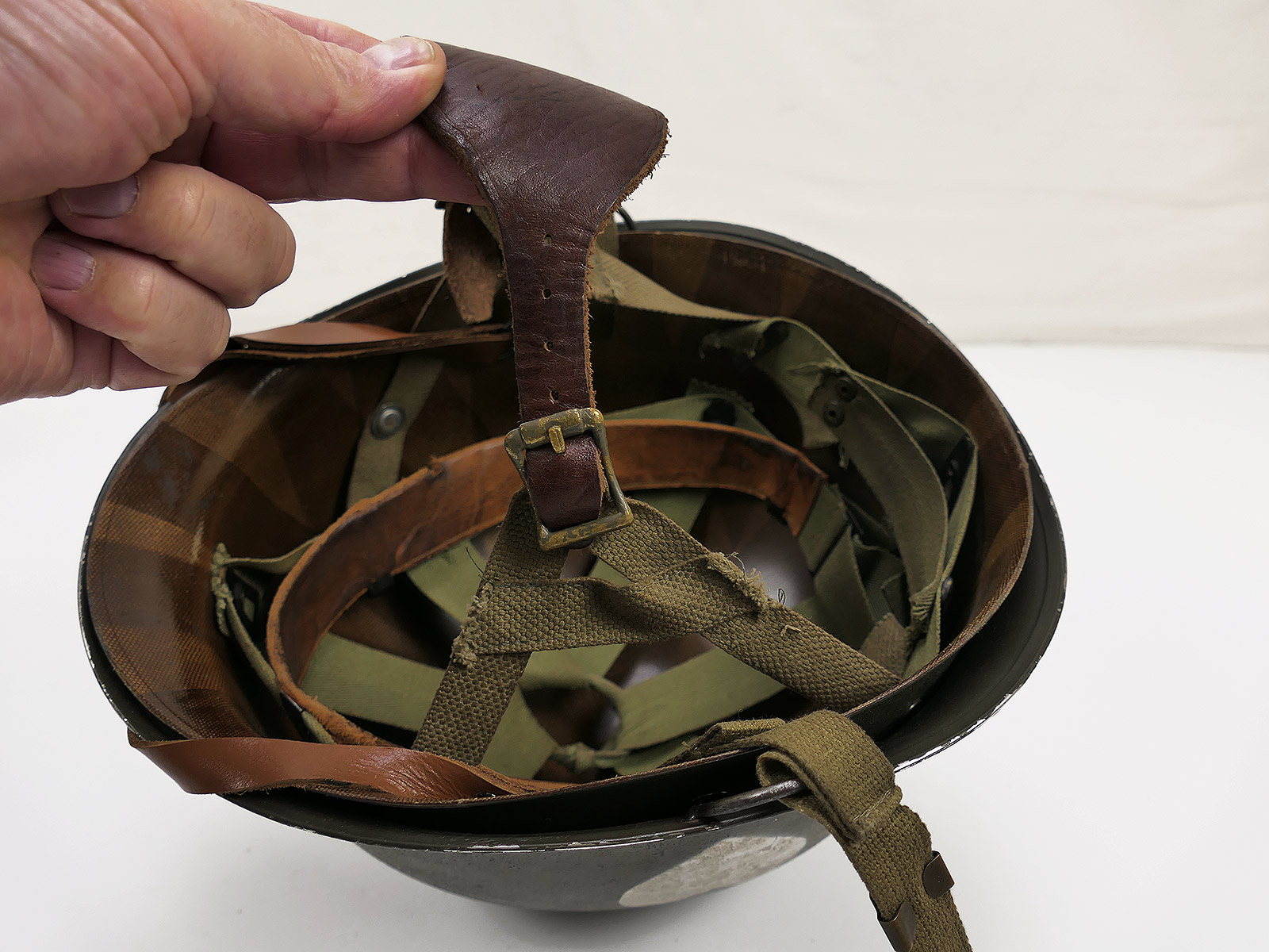 US Paratrooper Stahlhelm "502nd PIR", Nachkriegs Glocke, mit sehr schönem 50er Jahre Liner und den abgebildeten Kinnriemen.
