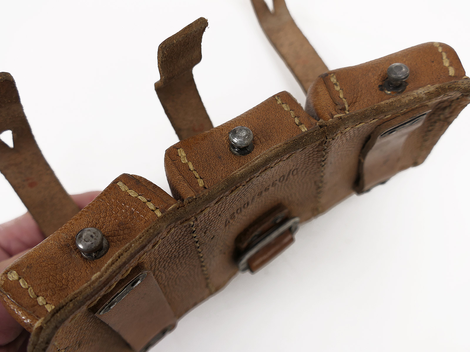 #F Karabiner K98 3er Patronentasche BRAUN ORIGINAL mit RBNR. Luftwaffe / Tropen / Afrikakorps