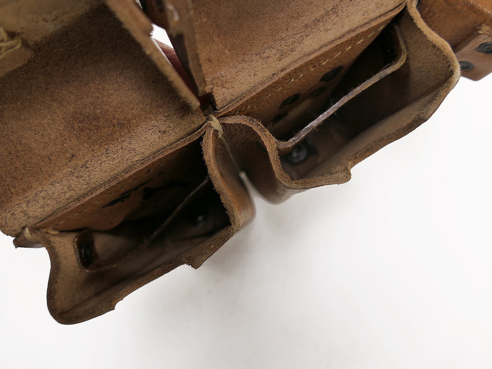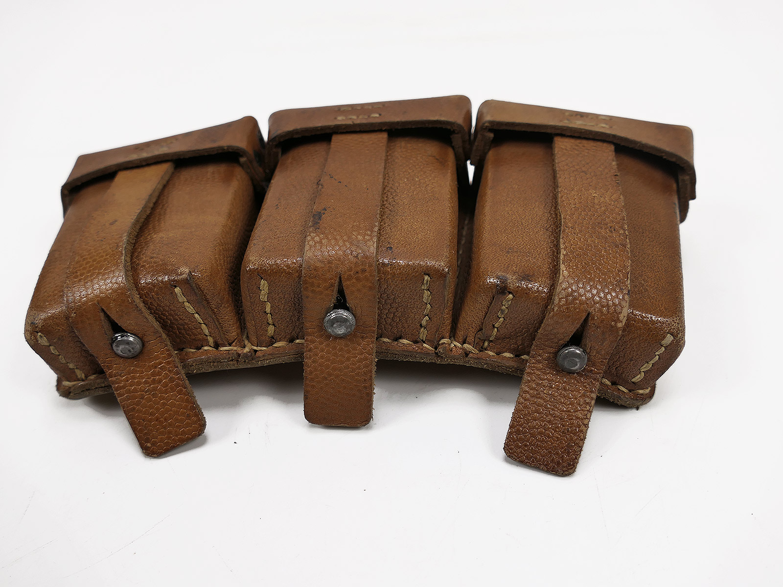 Original 3er K98 Patronentasche Wehrmacht, Braun, MIT den Innenunterteilungen, mit Reichsbetriebsnummer gestempelt.