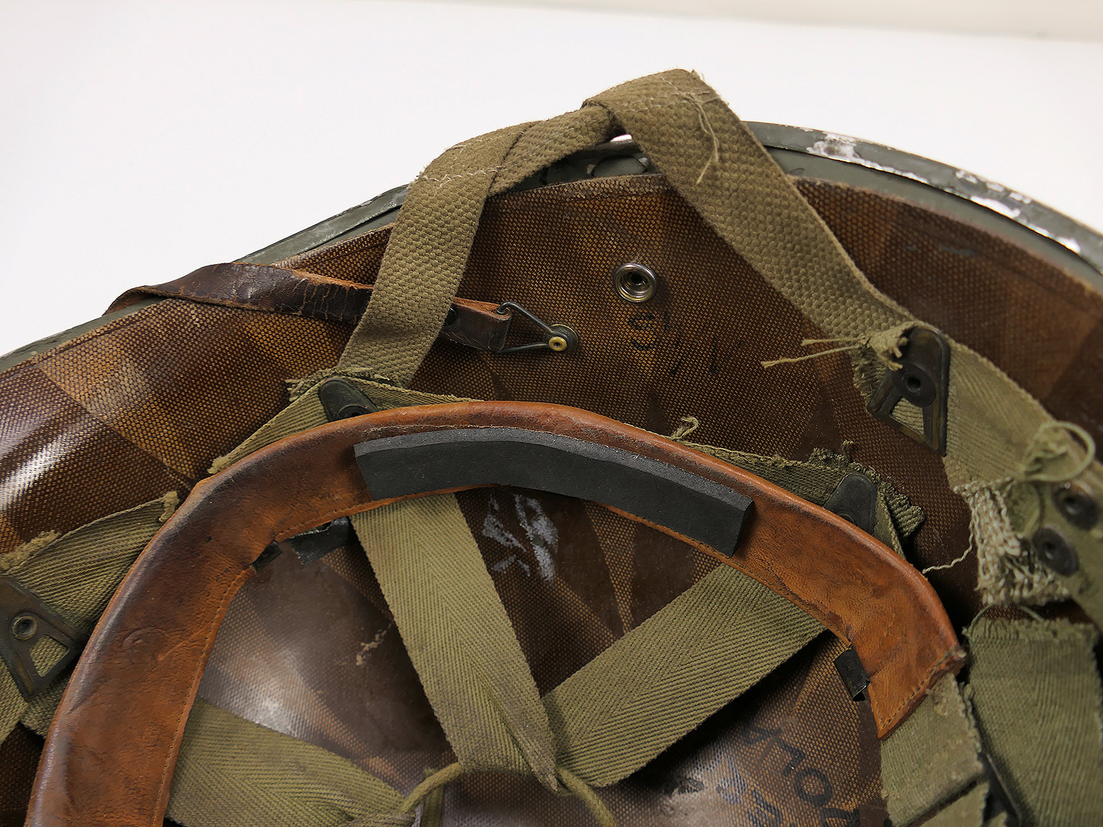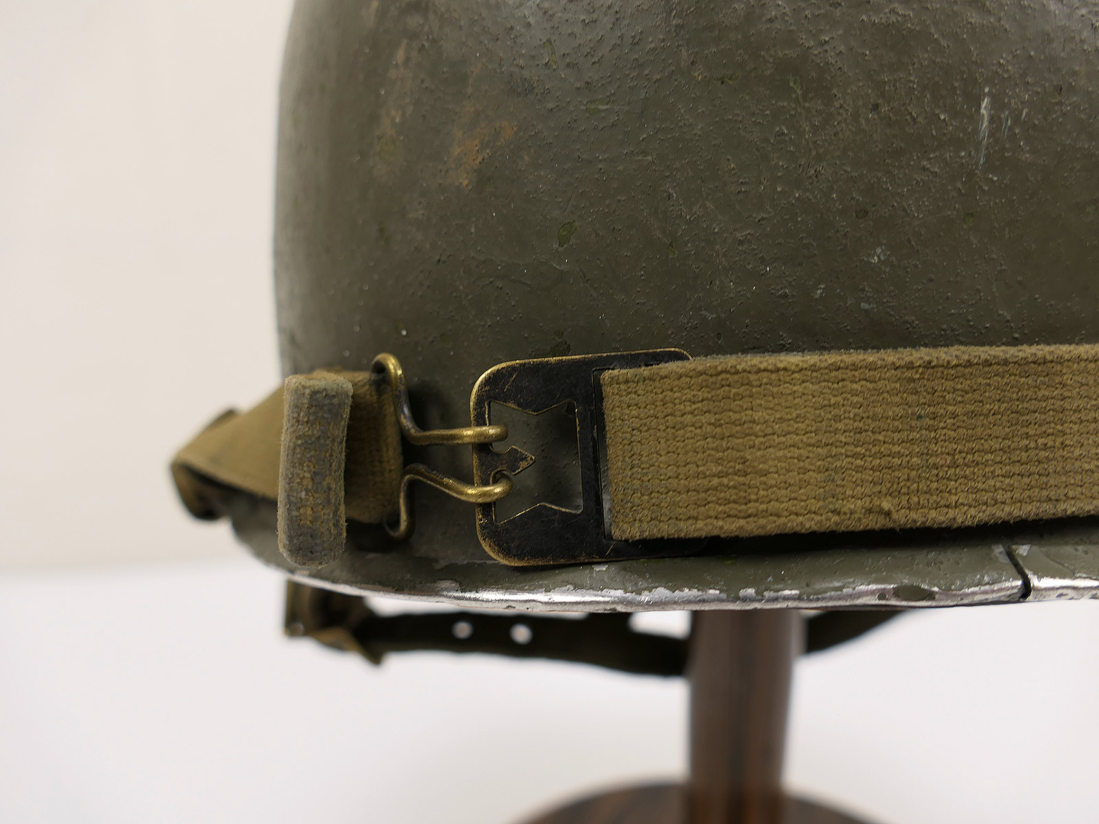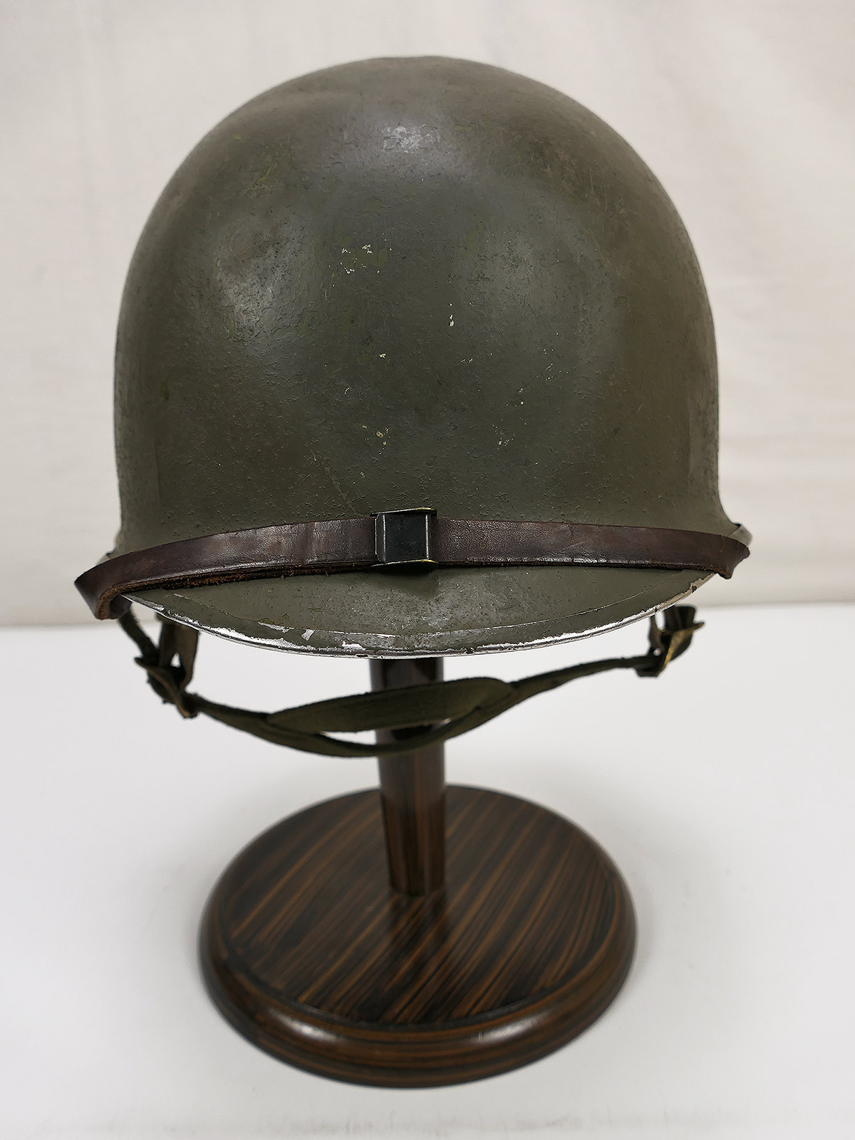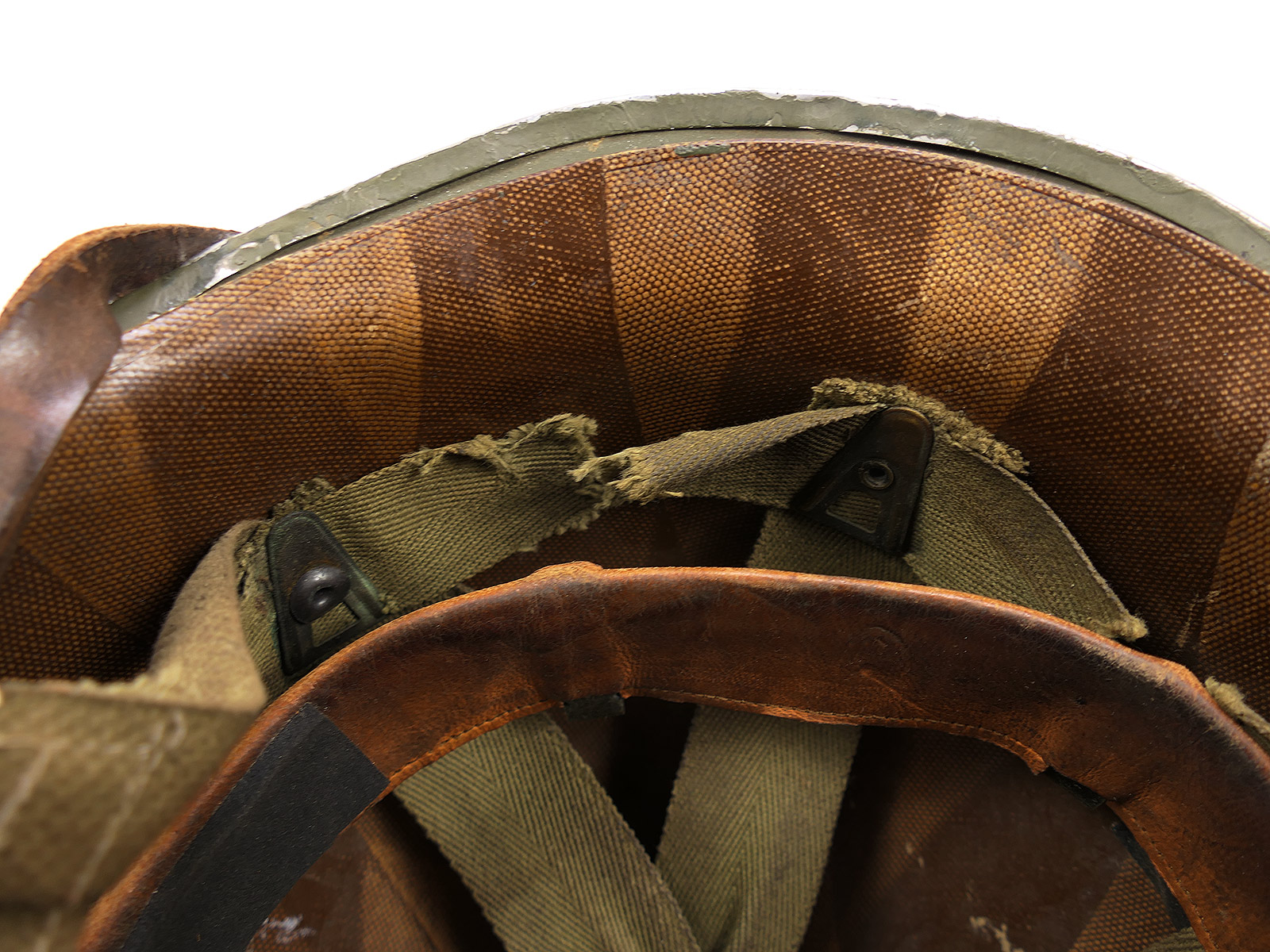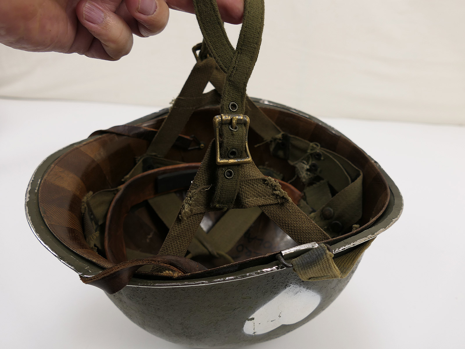 US Paratrooper Stahlhelm "502nd PIR", Nachkriegs Glocke, mit sehr schönem 50er Jahre Liner und den abgebildeten Kinnriemen.