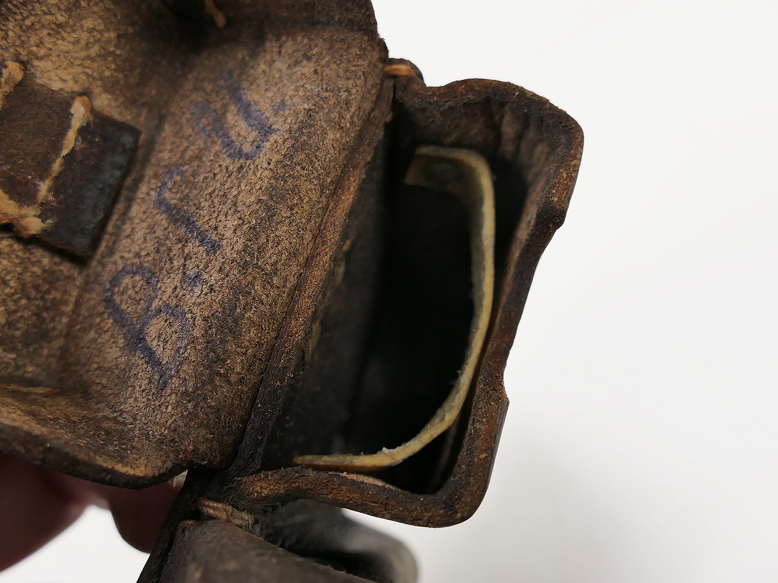 Original 3er K98 Patronentasche Wehrmacht, Braun, MIT den Innenunterteilungen, mit Hersteller gestempelt.