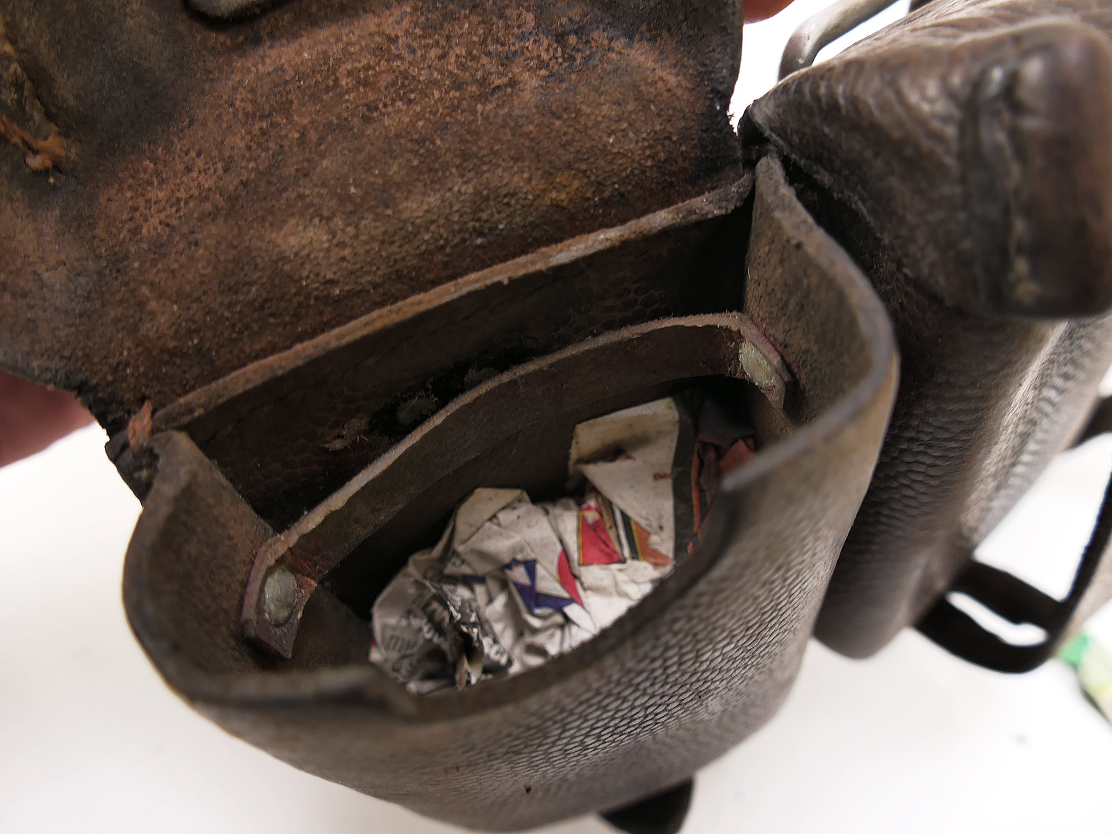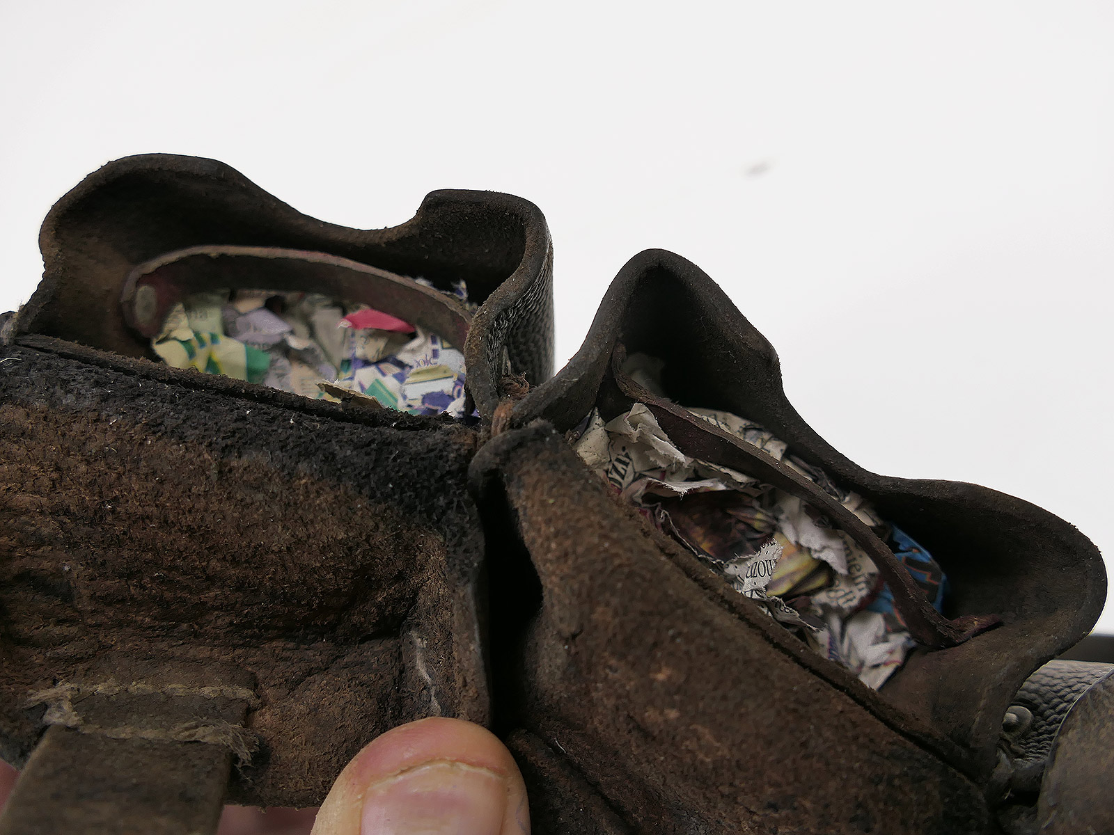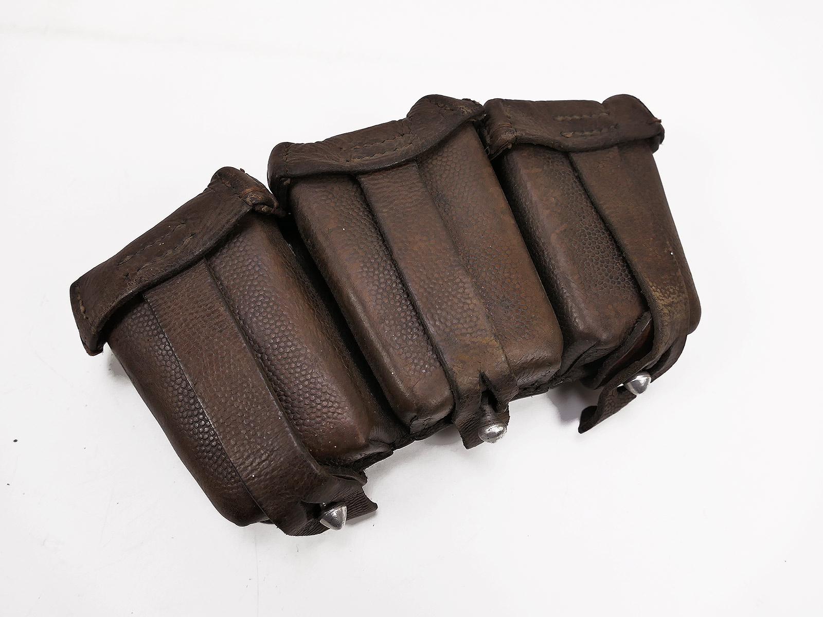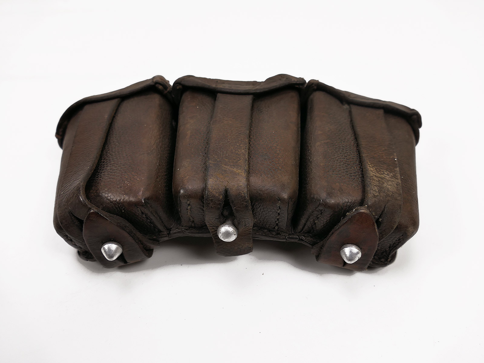 Original 3er K98 Patronentasche Wehrmacht, Braun, MIT den Innenunterteilungen, mit Hersteller gestempelt.
