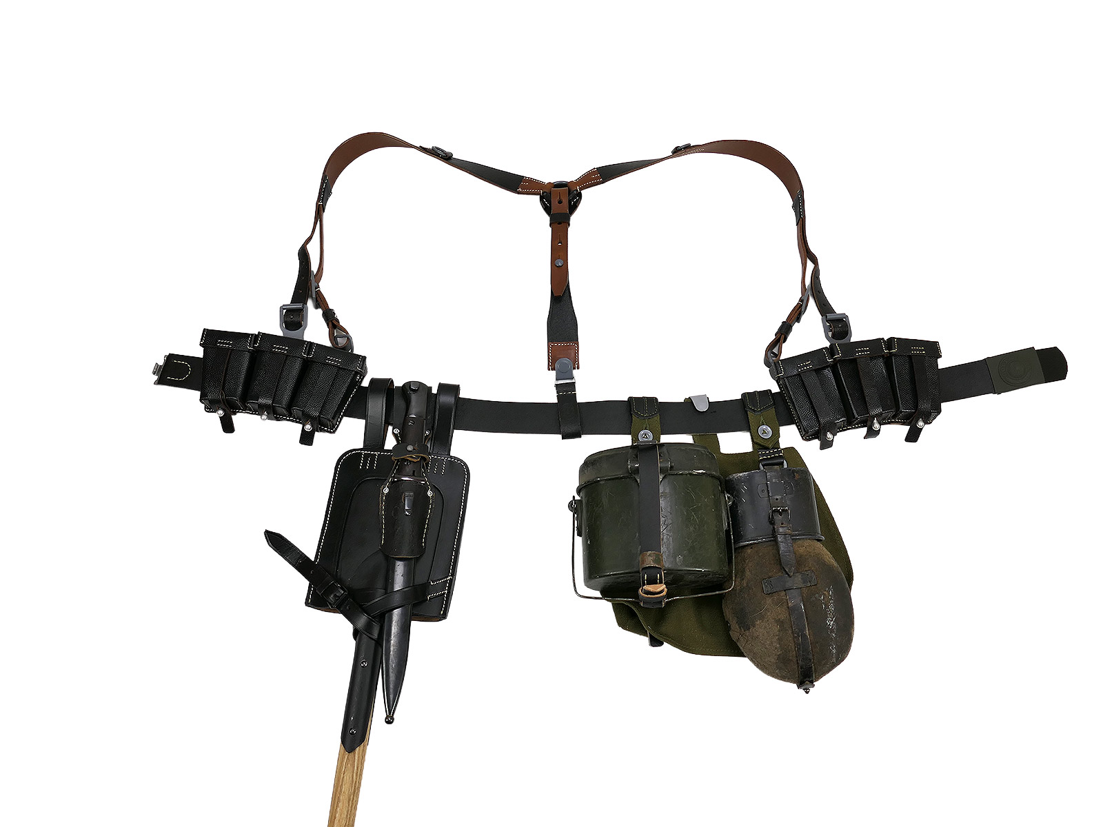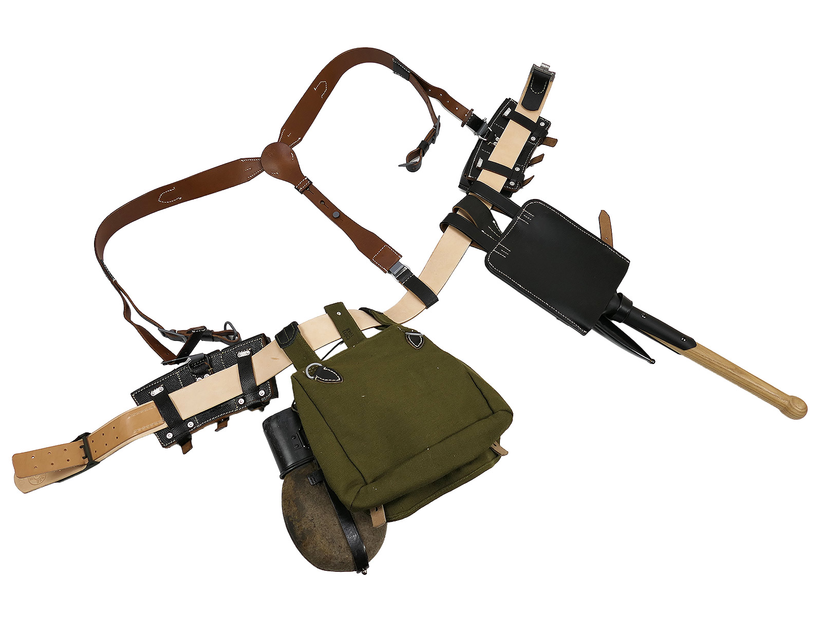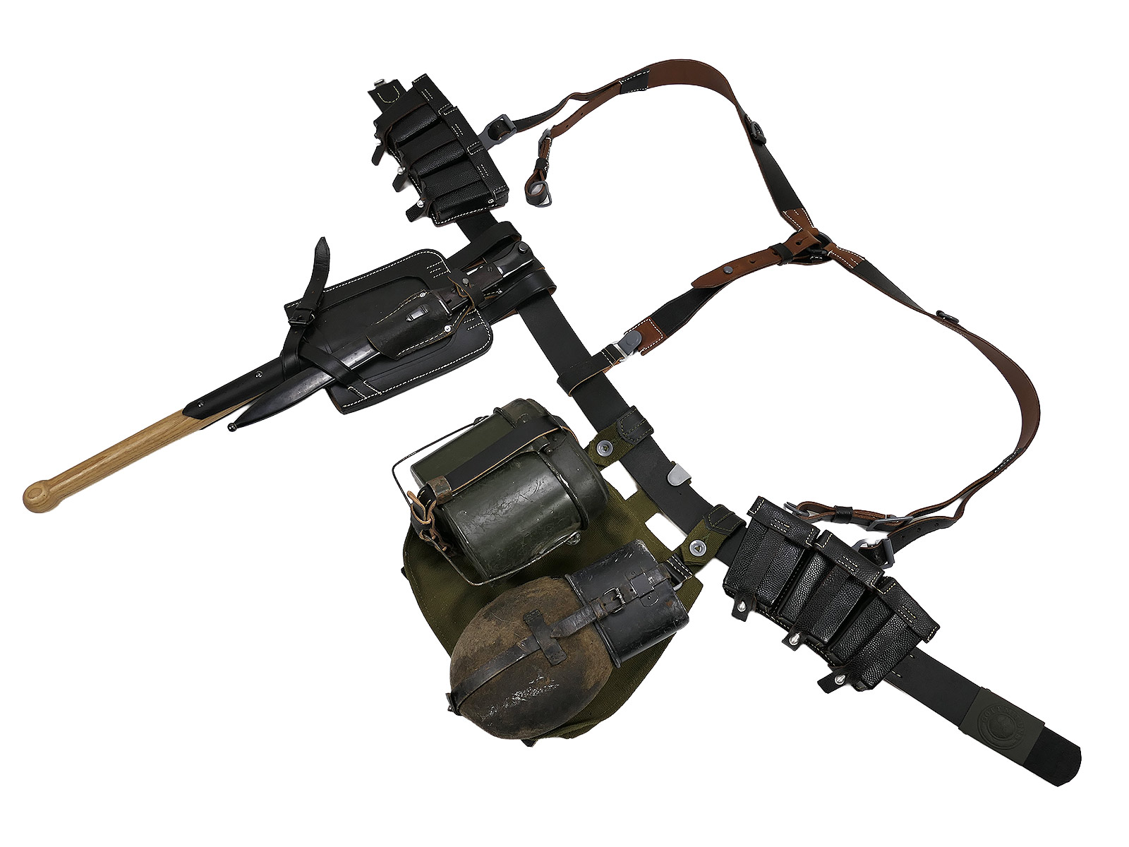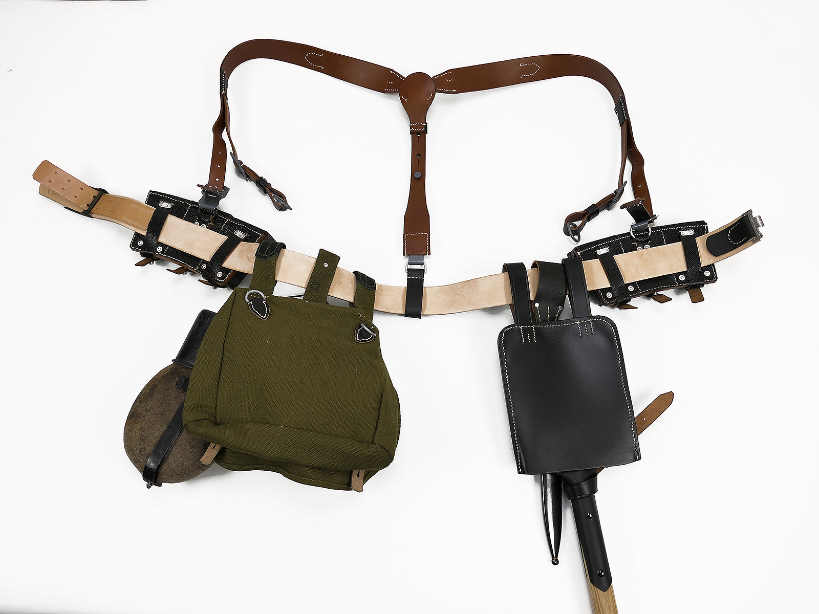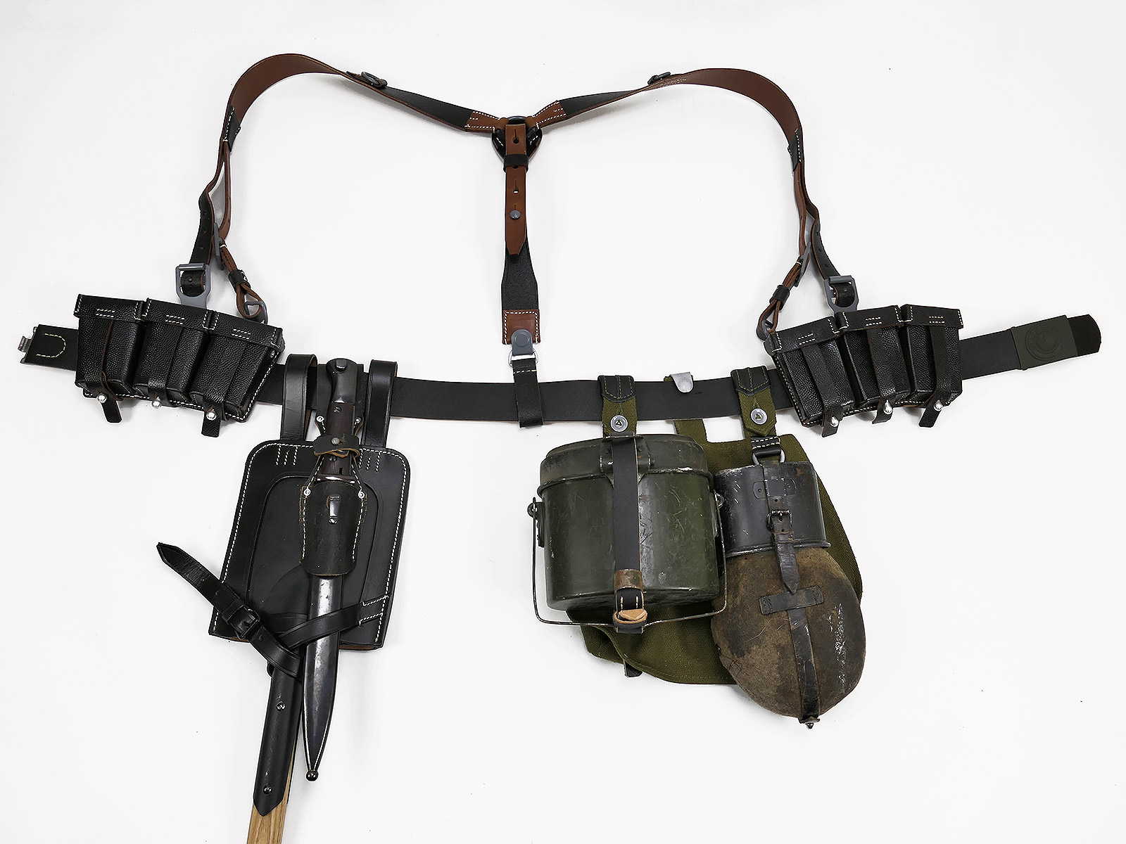 K98 Koppelzeug Set - Y-Riemen Brotbeutel Patronentaschen Lederkoppel Koppelschloss Feldspaten Bajonett