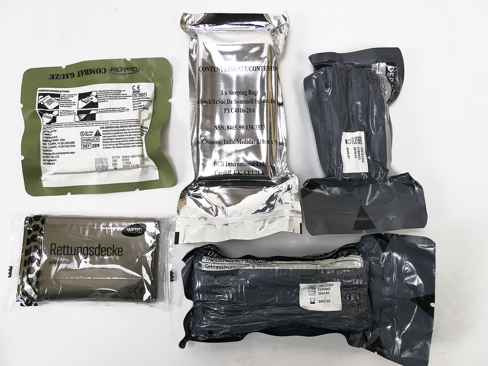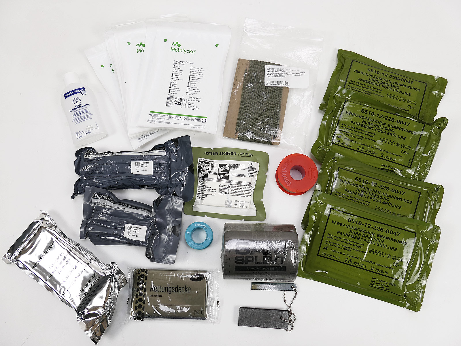 Konvolut FIRST AID KIT MEDIC Emergency Combat Gauze Fire Starter Verbandpäckchen Brandwunden ANSEHEN