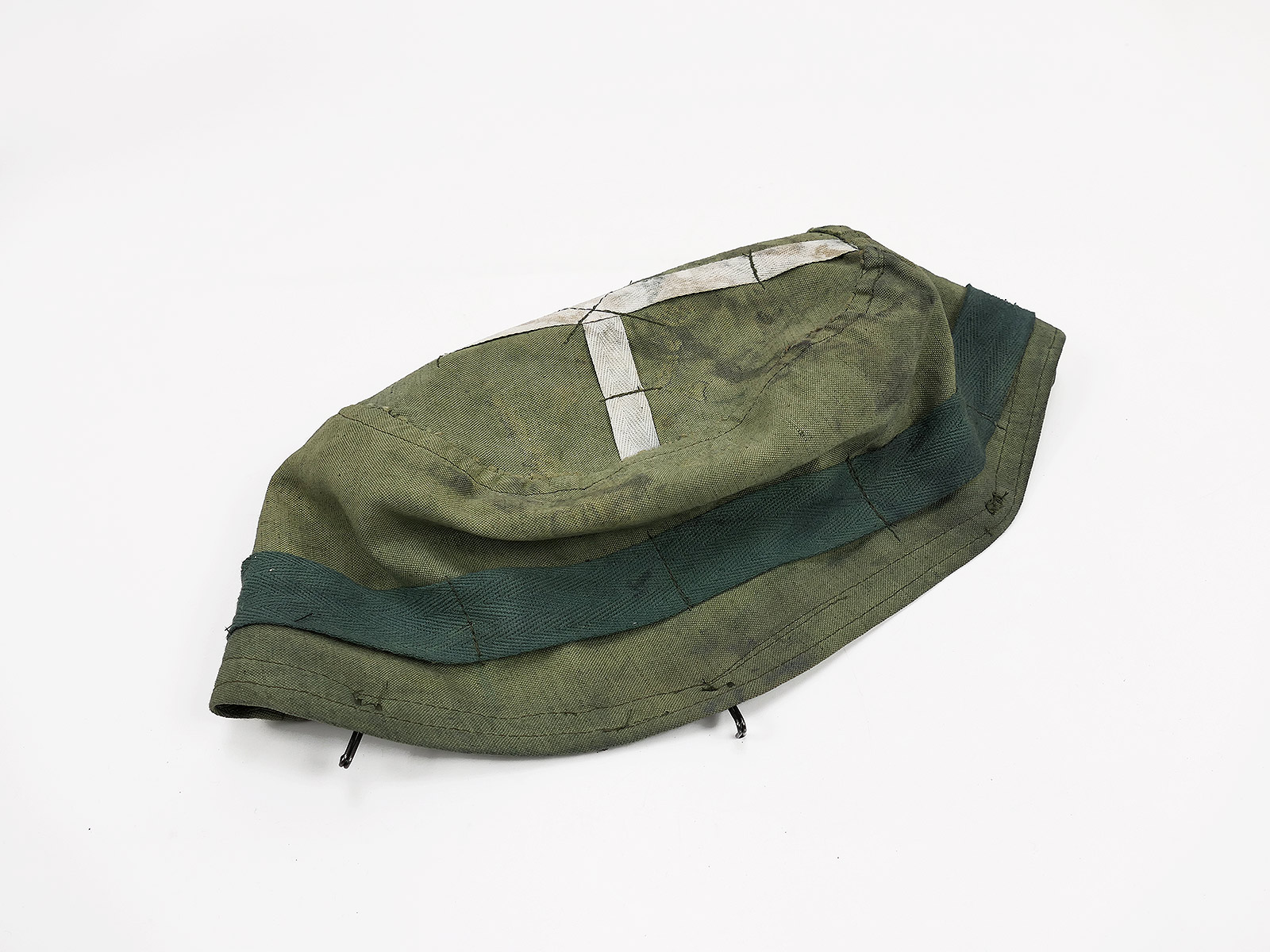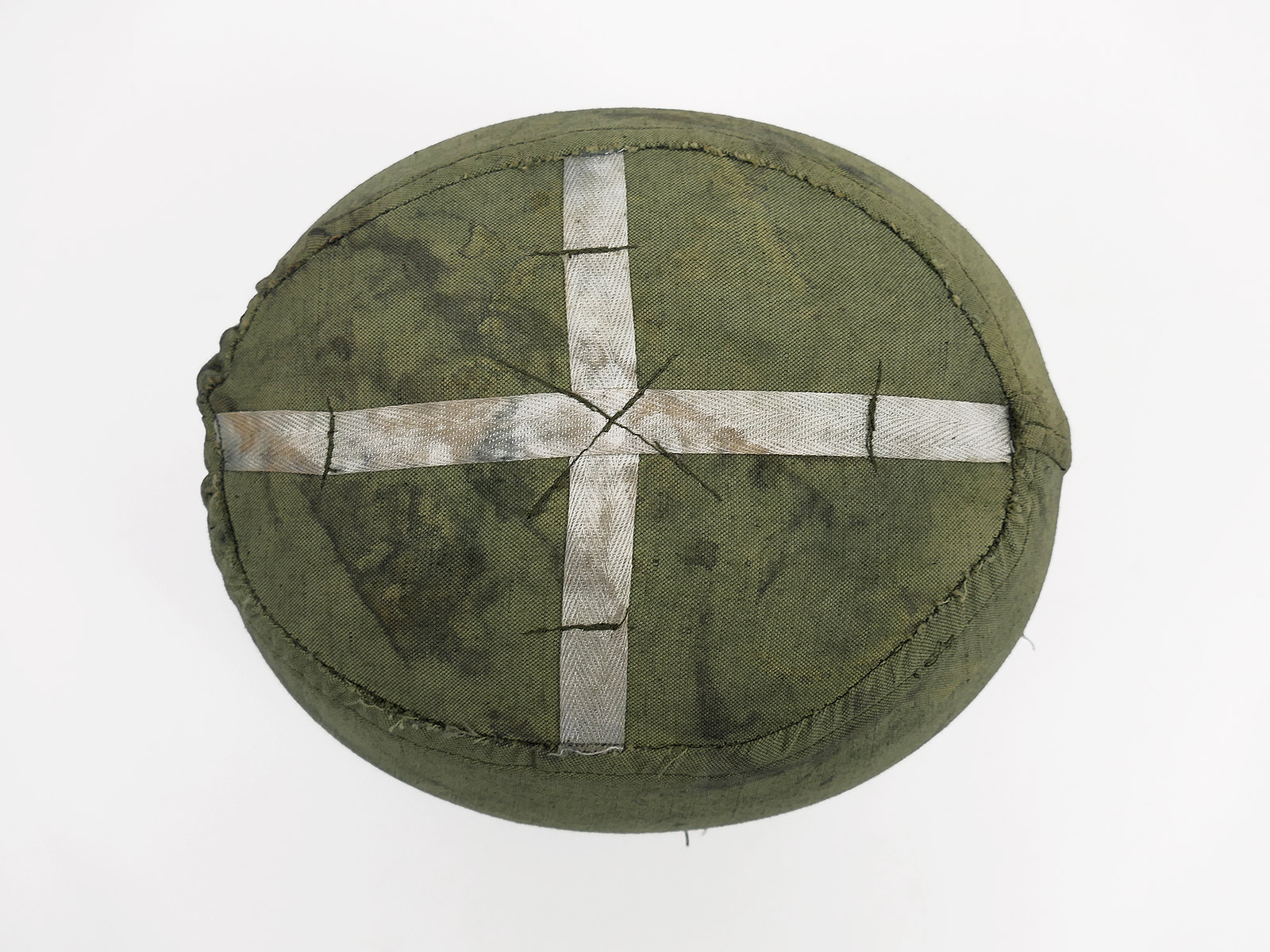 Fallschirmjägerhelm Tarnbezug aus altem Vintage Material, helloliv,