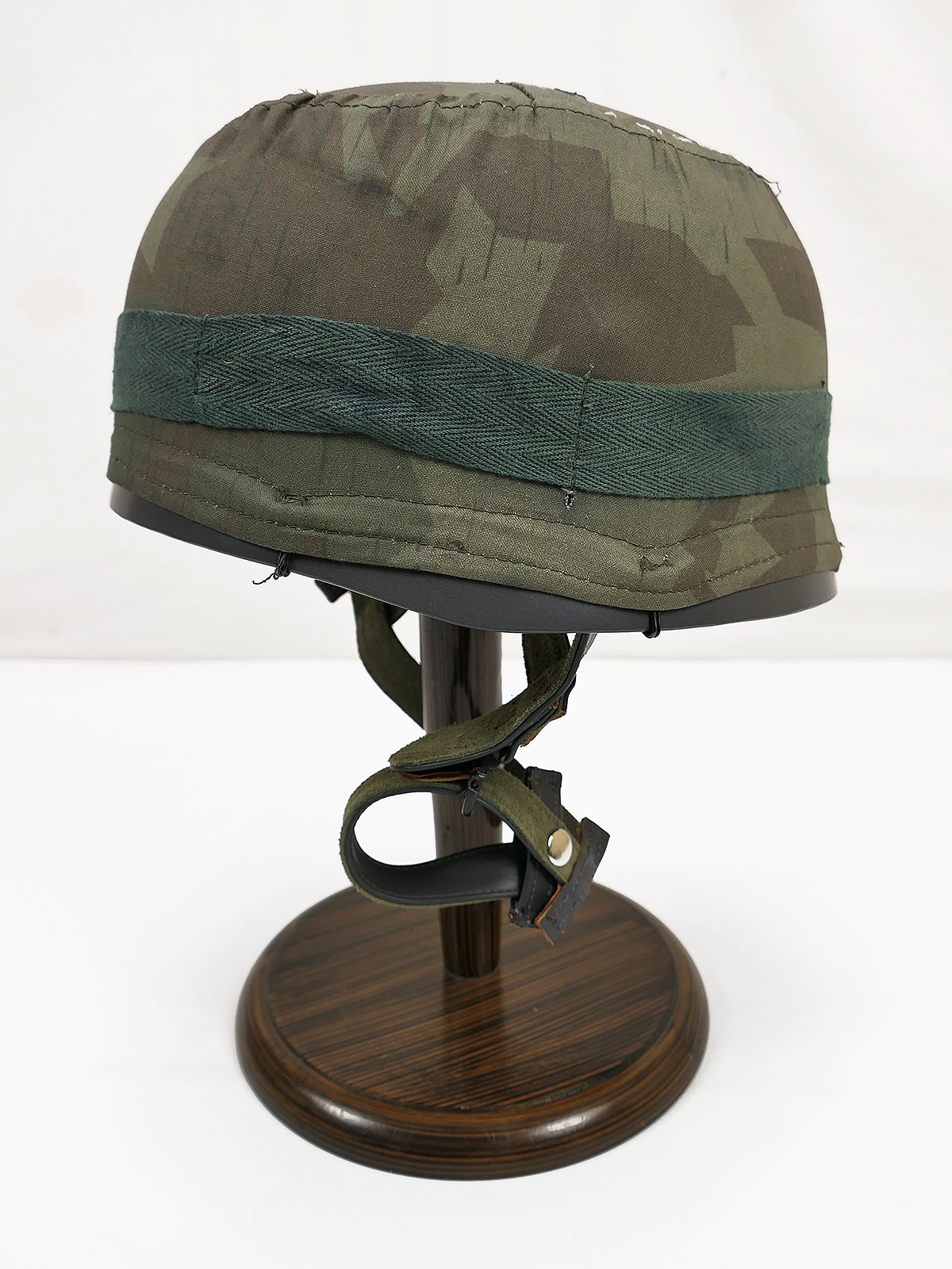 Fallschirmjägerhelm Tarnbezug aus altem Vintage Material, splittertarn,