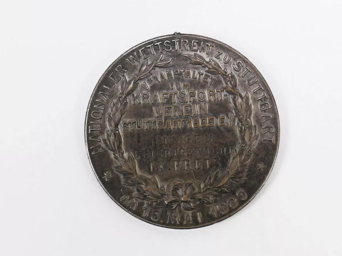 Medaille für den 9. Platz im Ringen d. Nationalen Wettstreits in Stuttgart 1920 Kraftsportverein