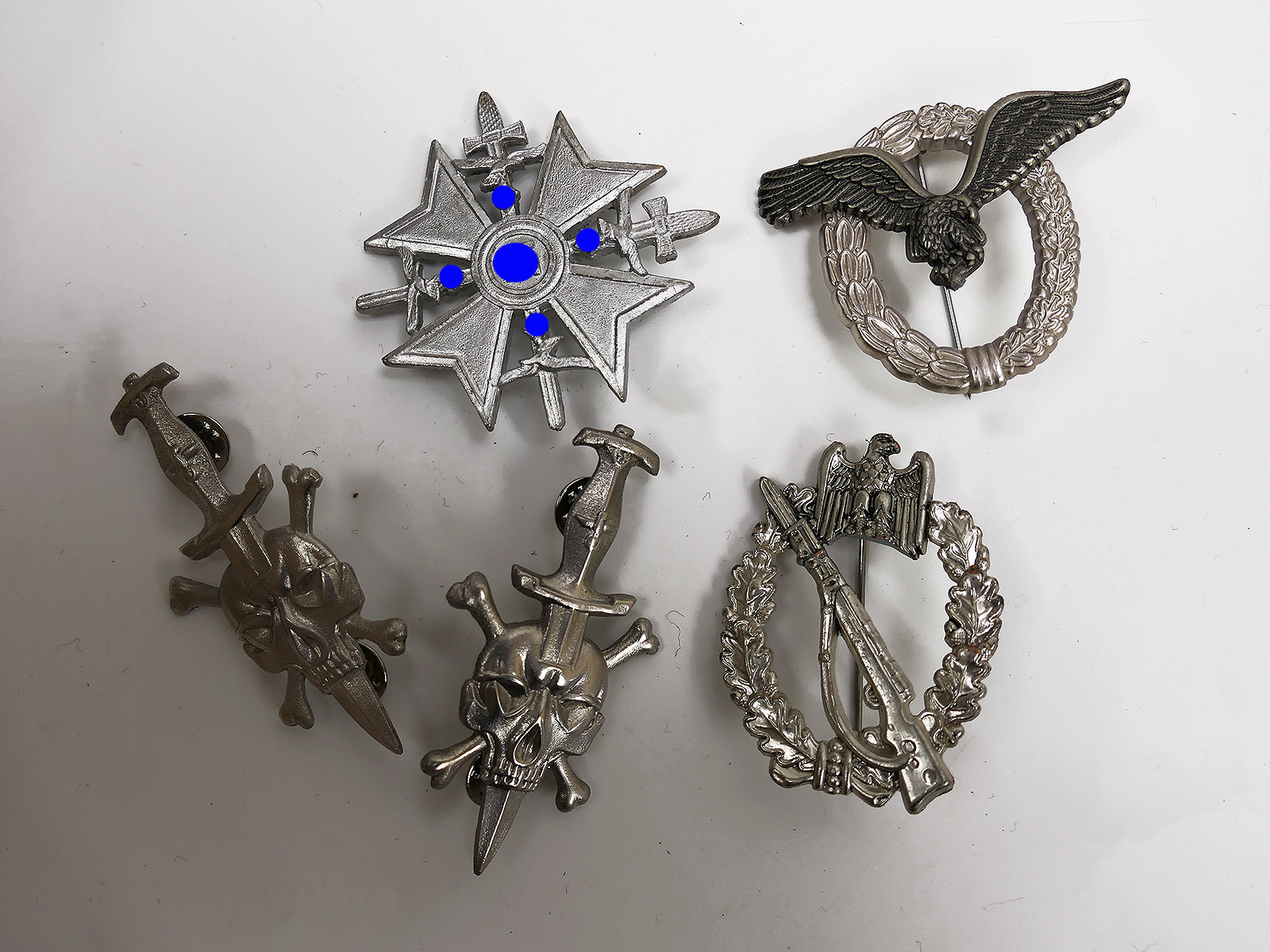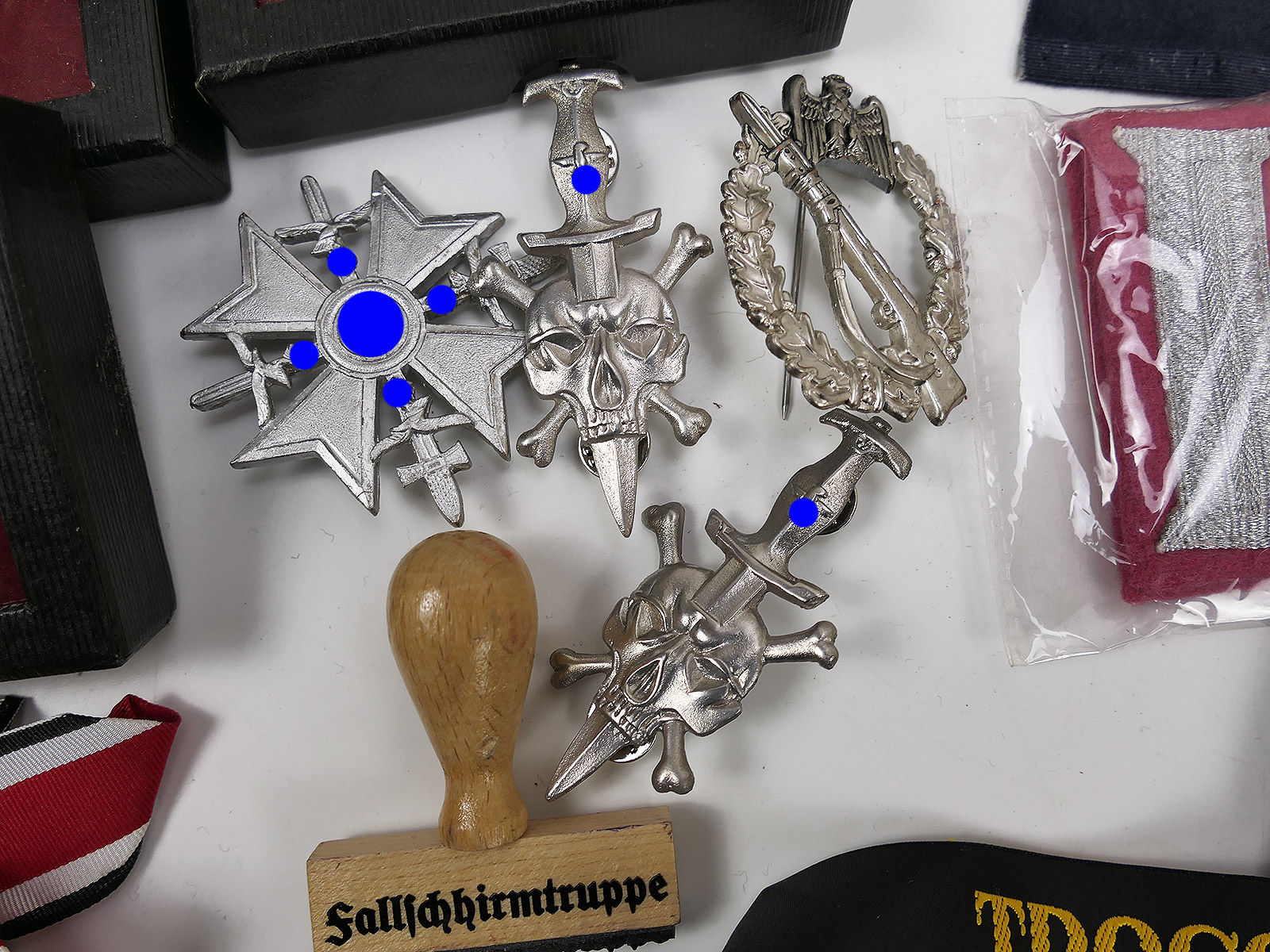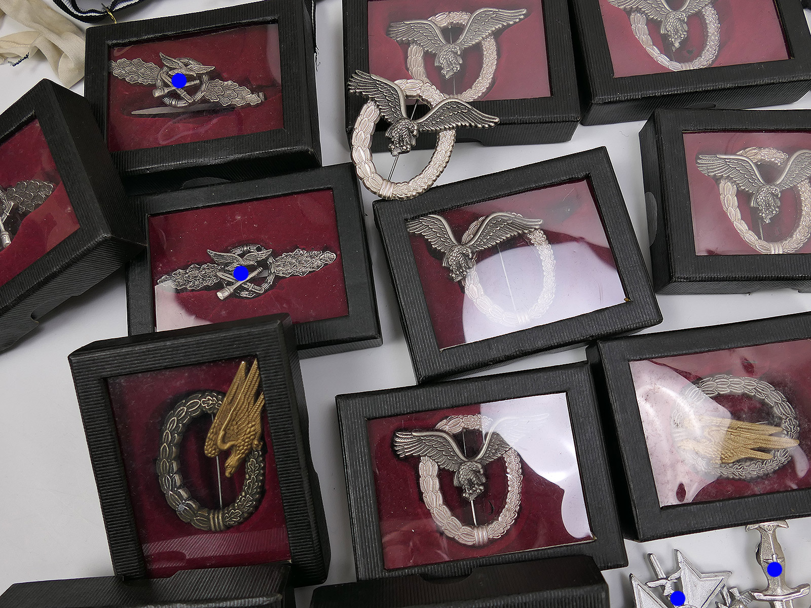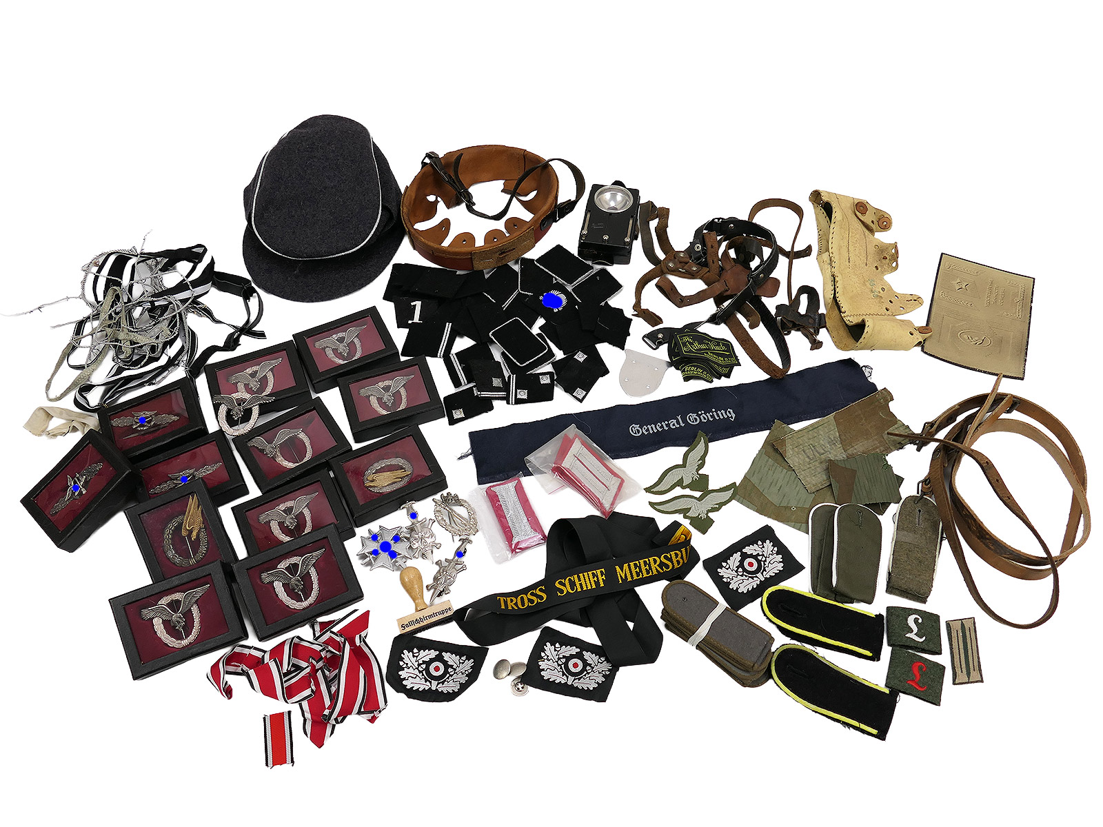 Militaria Konvolut Effekten Abzeichen Kragenspiegel Orden LW Feldmütze ANSEHEN