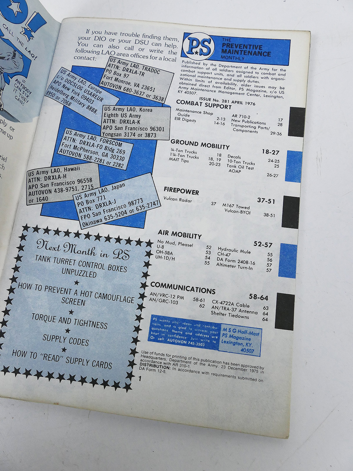 PS: The Preventive Maintenance Monthly ist eine Reihe von technischen Bulletins der US-Armee, die seit Juni 1951 als monatliches Magazin mit Grafiken im Comic-Stil veröffentlicht werden,