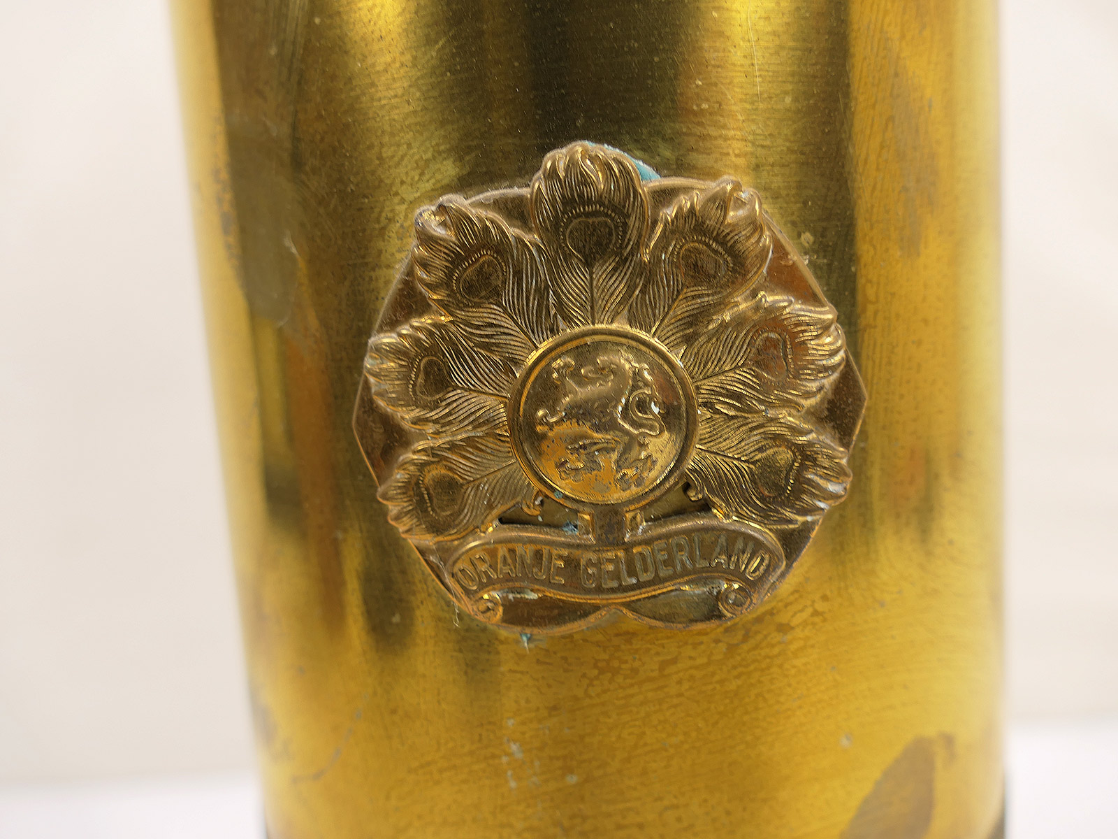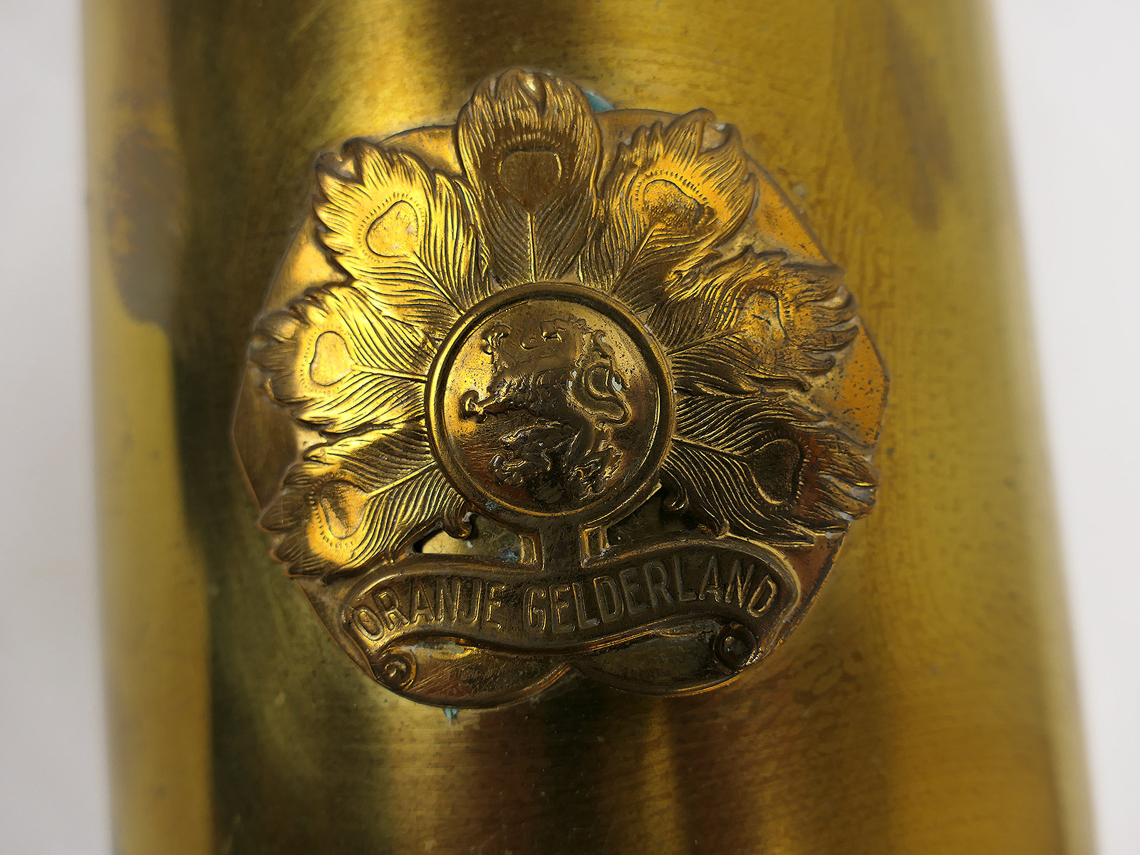 Niederlande Original Munitionshülse 105mm Messing Hülse Kartusche Reservisten Geschenk INF. RGT. GELDERLAND ORANJE