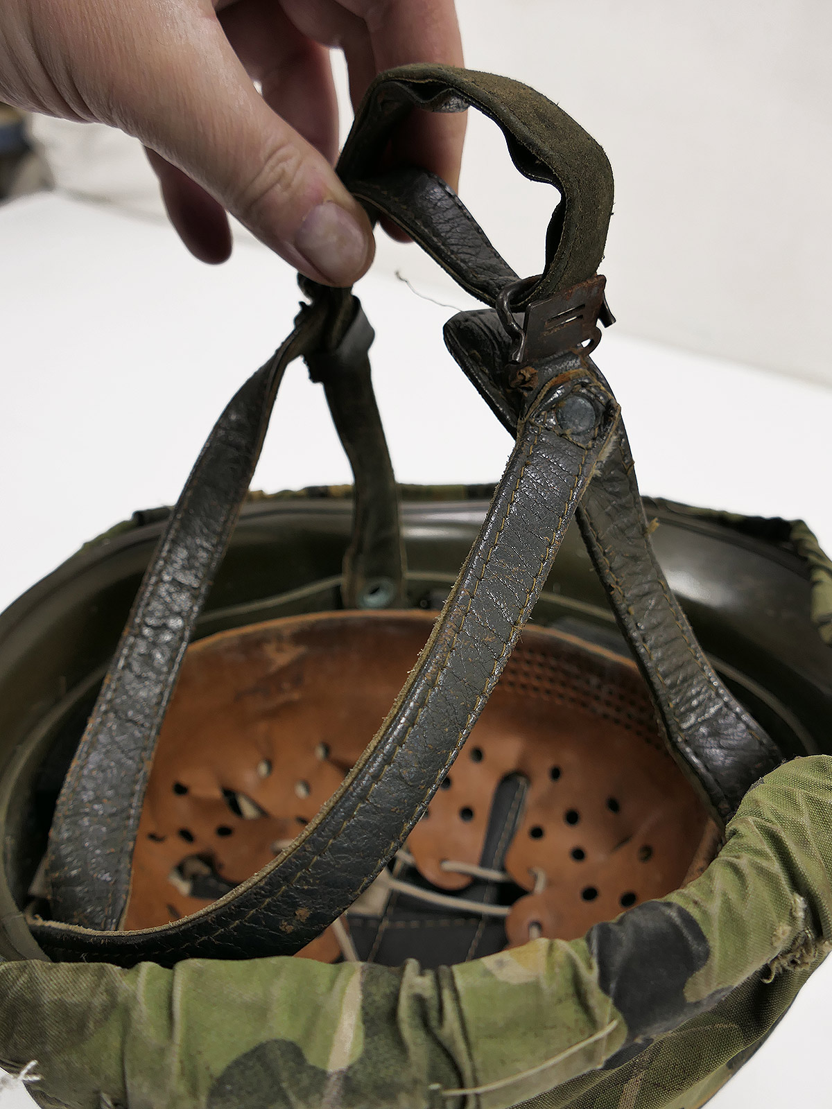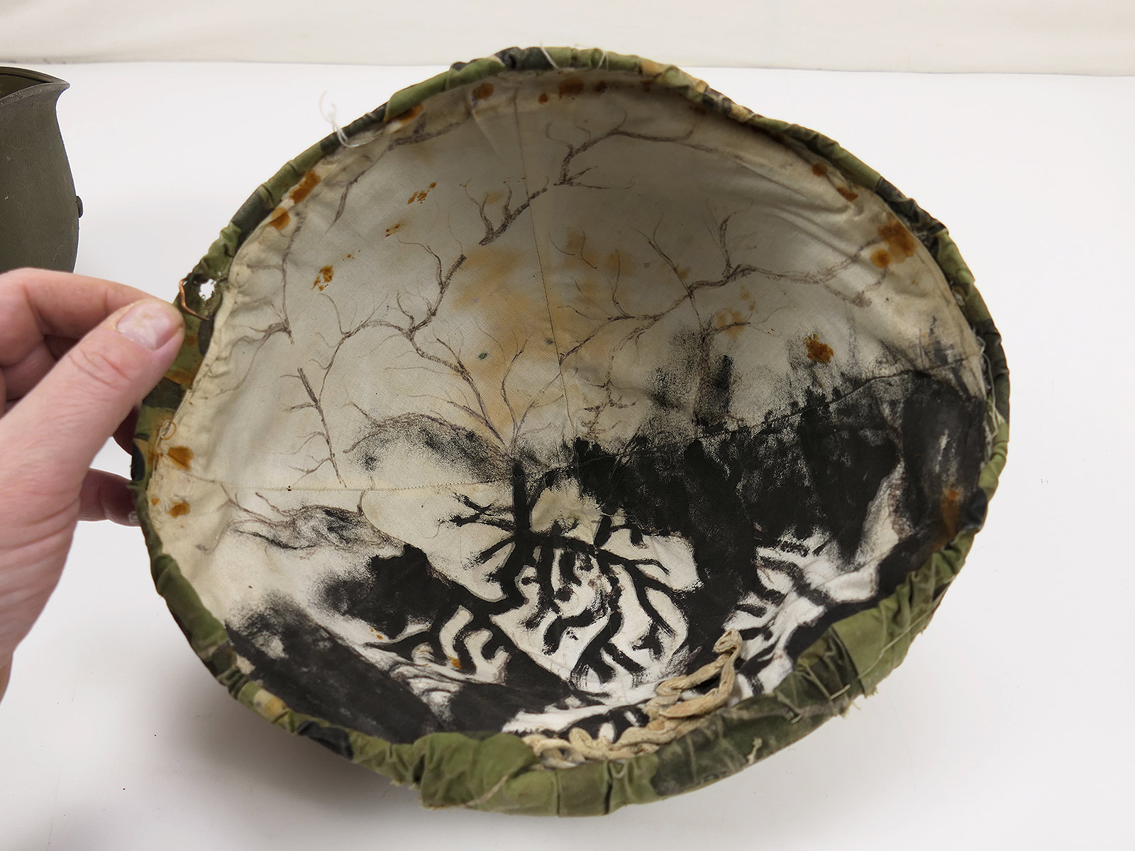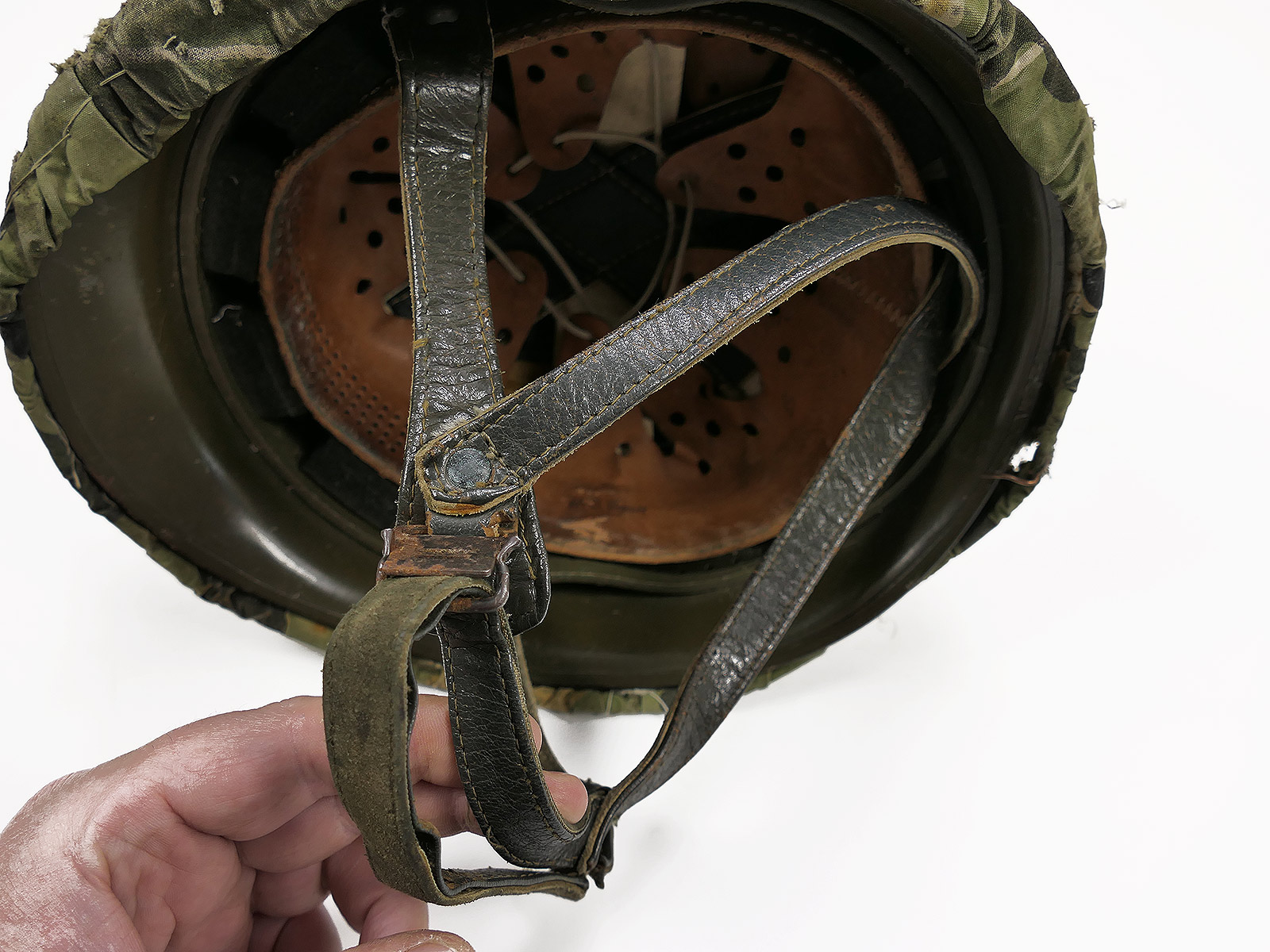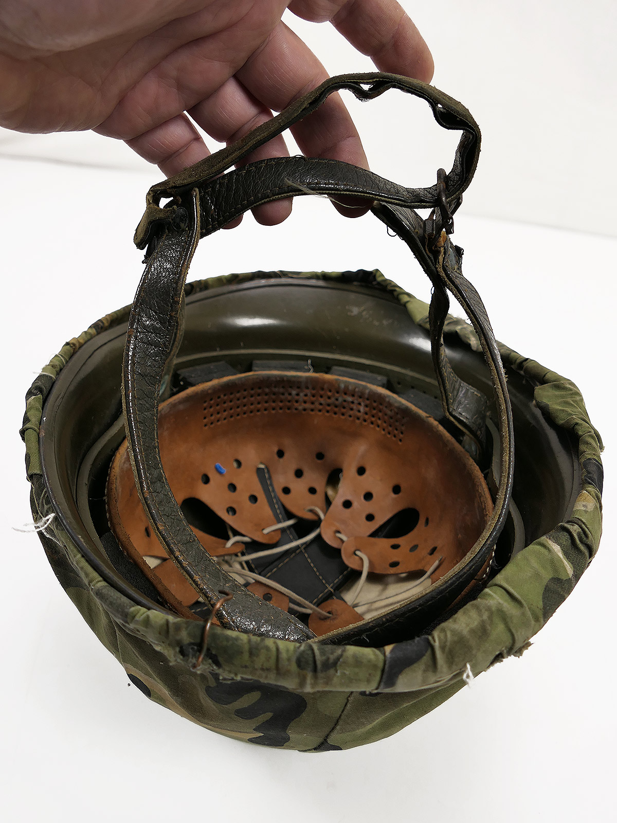 Original BW Fallschirmjägerhelm Bundeswehr Fallschirmspringer Helm Stahlhelm M71 mit Tarnbezug AMÖBENTARN