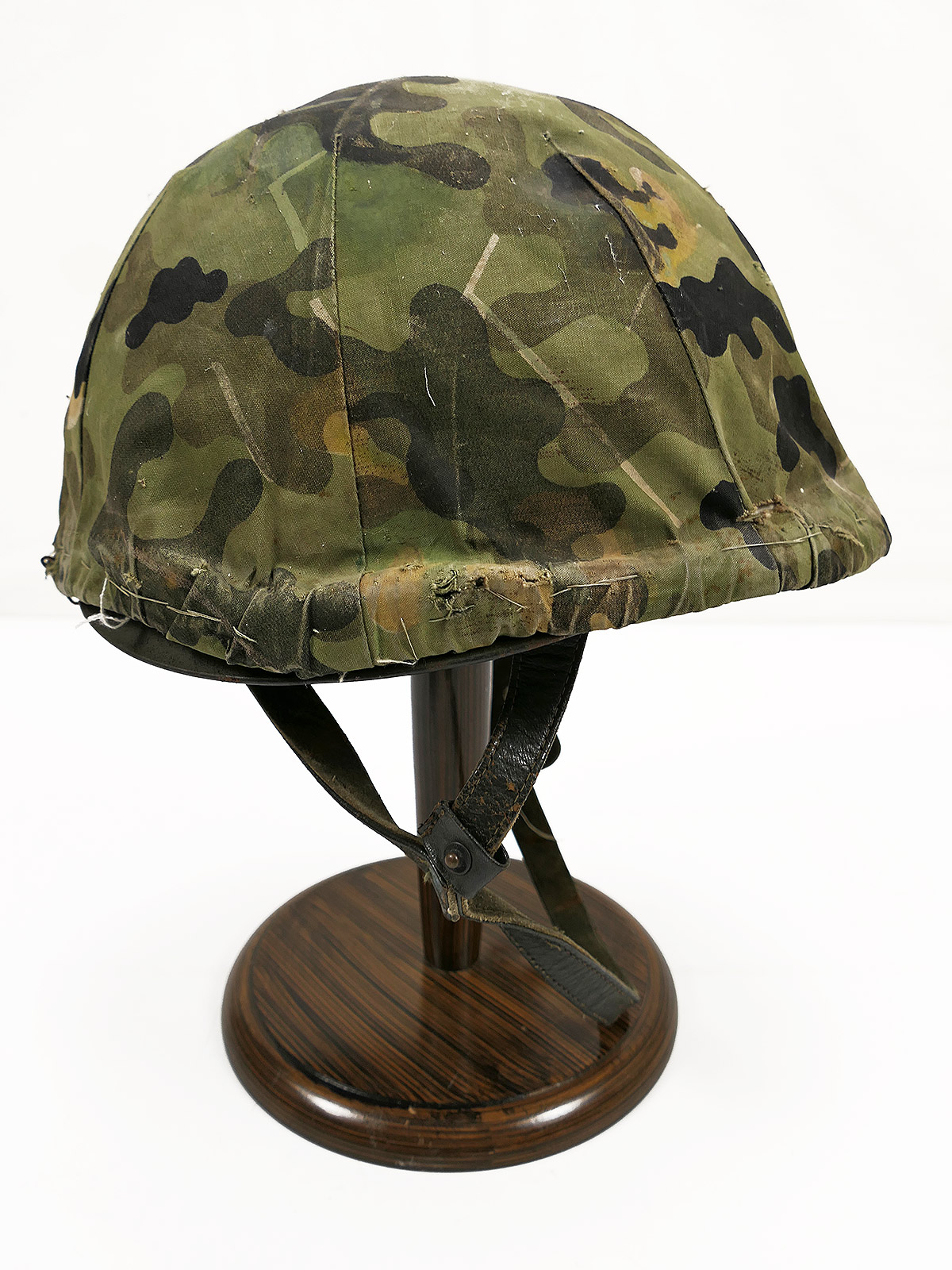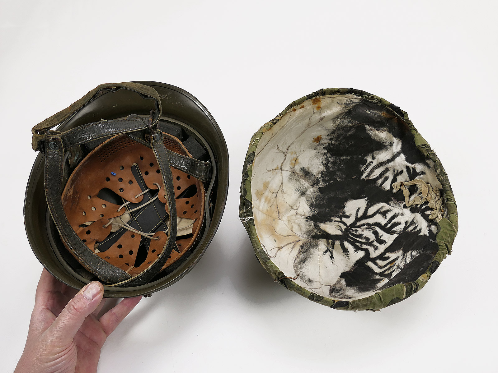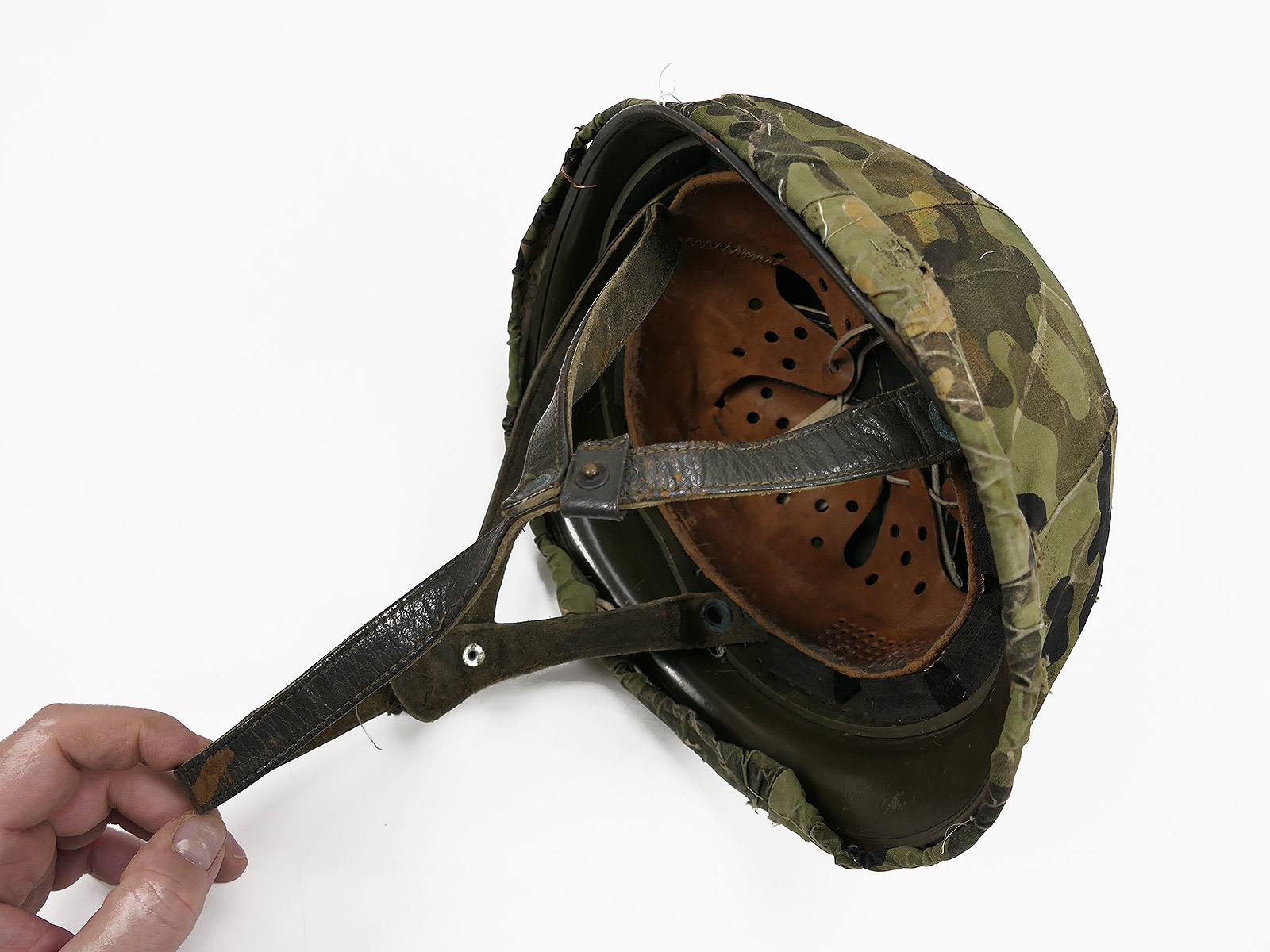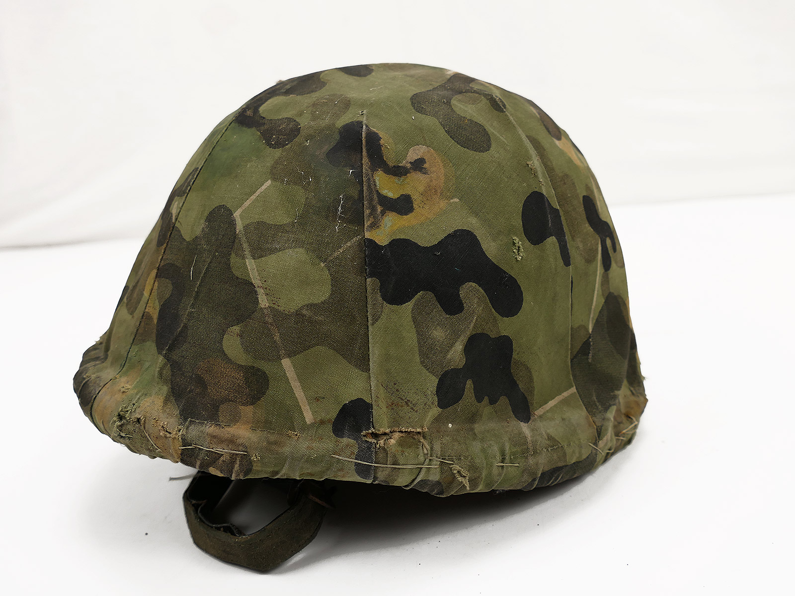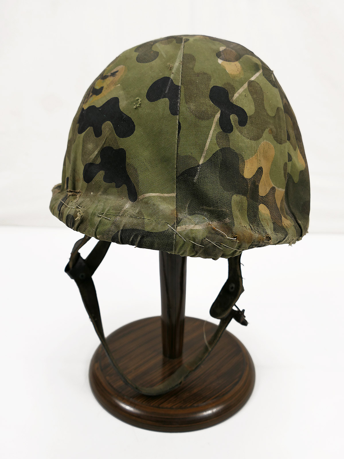Original BW Fallschirmjägerhelm Bundeswehr Fallschirmspringer Helm Stahlhelm M71 mit Tarnbezug AMÖBENTARN